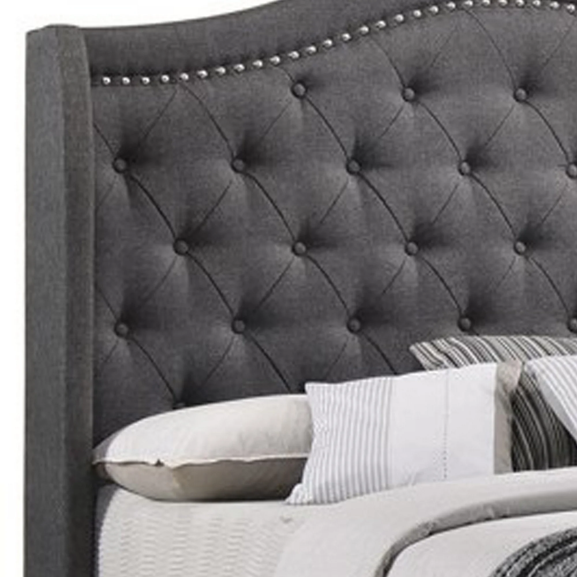 Fabric Upholstered Demi Wing Eastern King Bed with Camelback Headboard,Gray