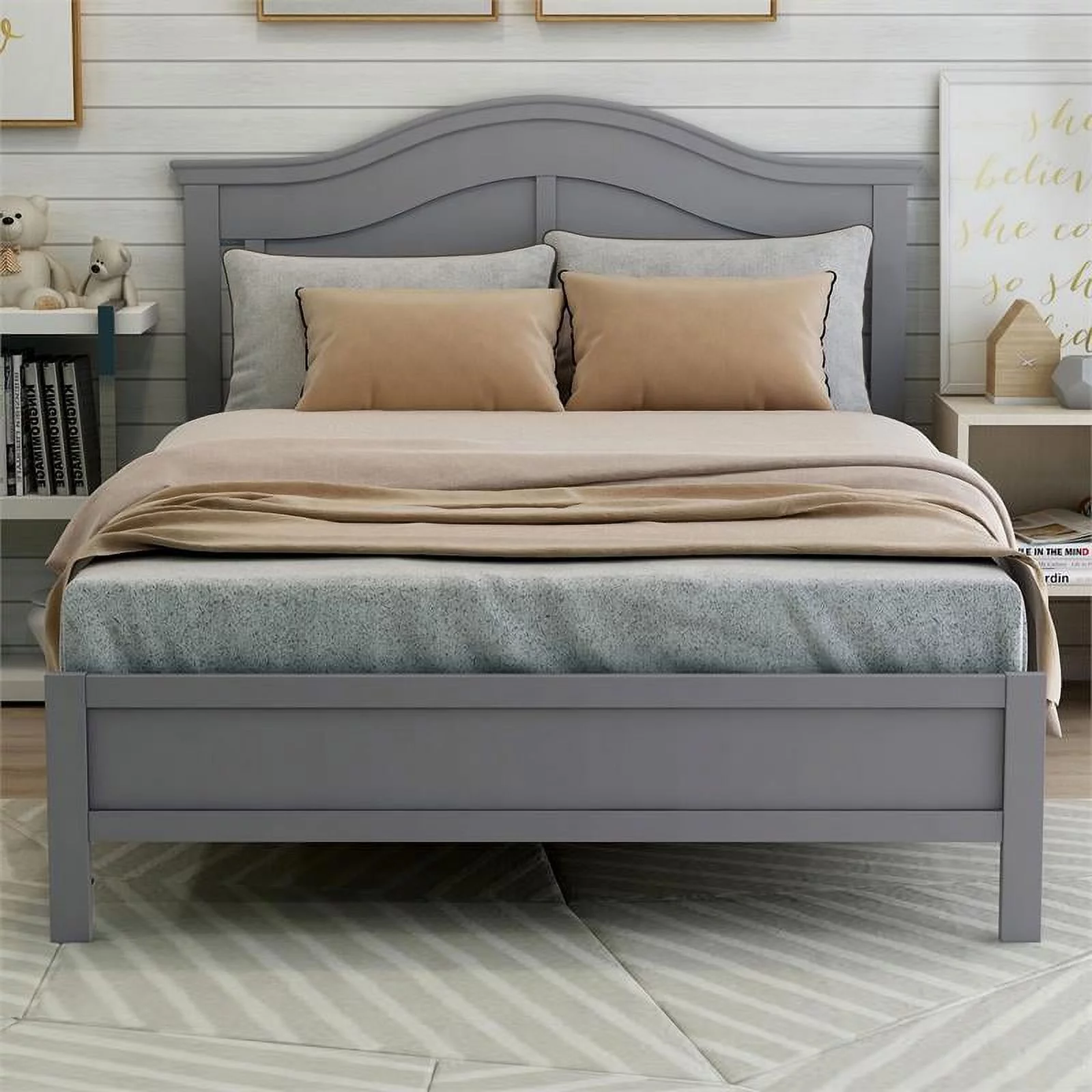 Furniture of America Elburd Solid Wood Camelback Platform Full Bed in Gray