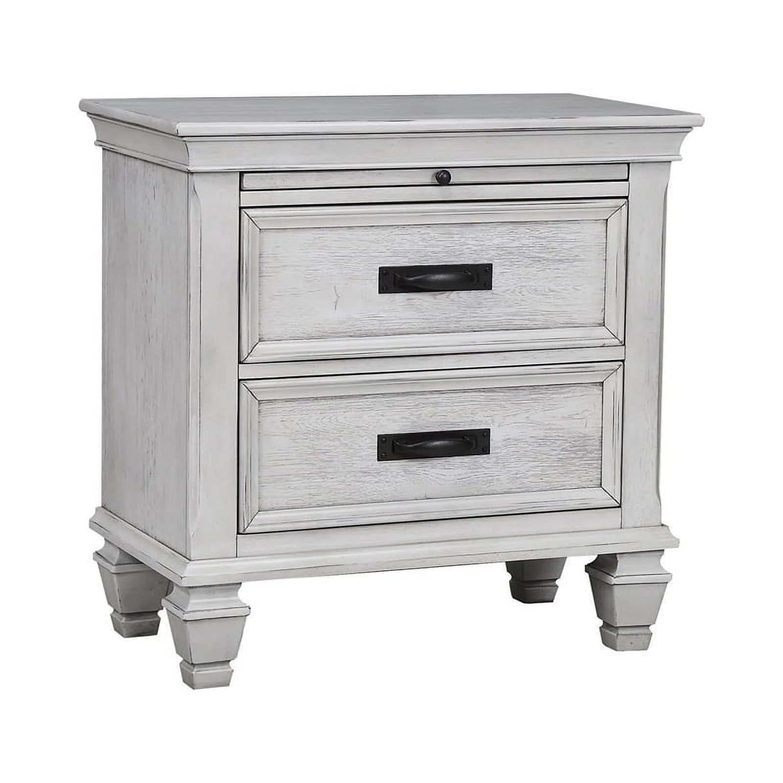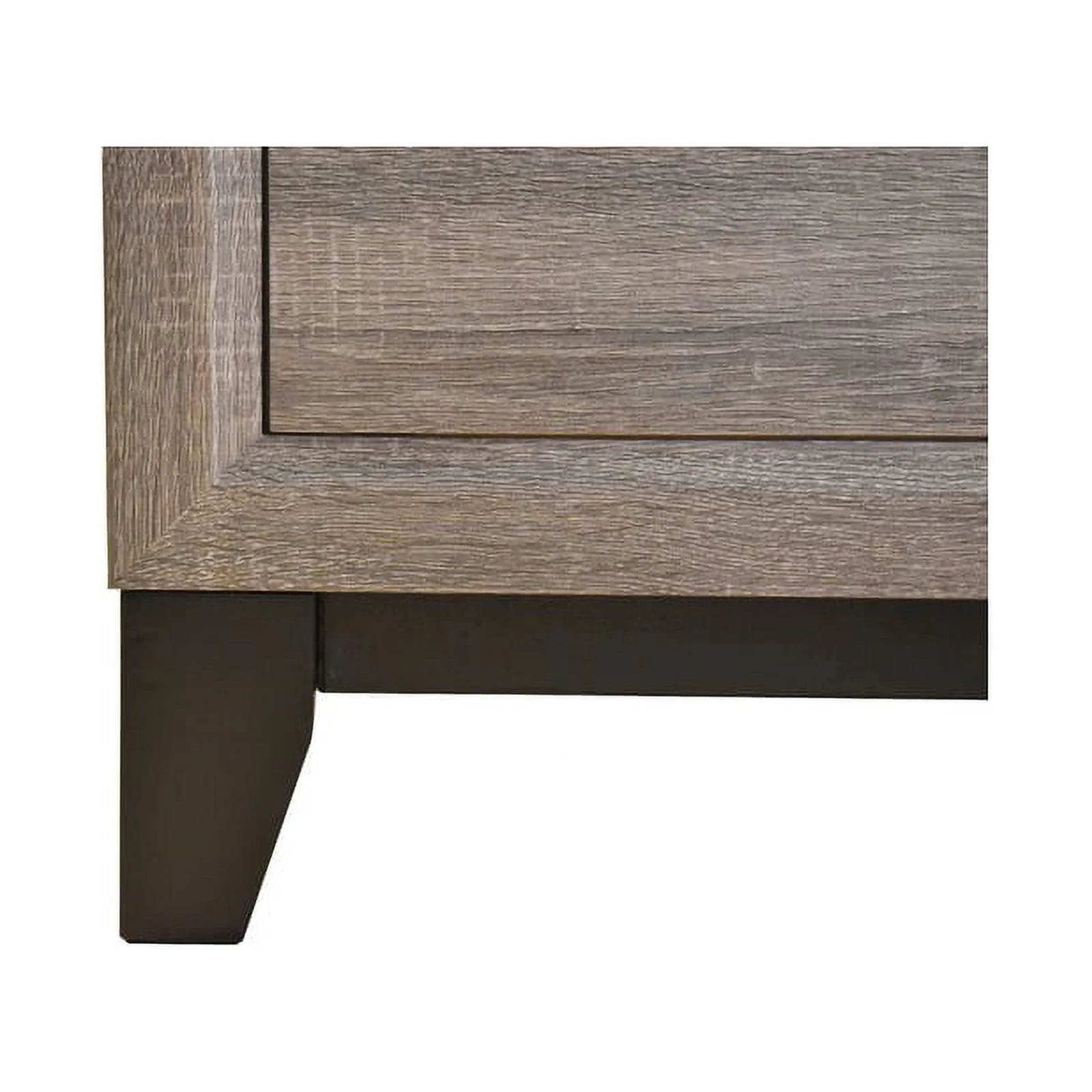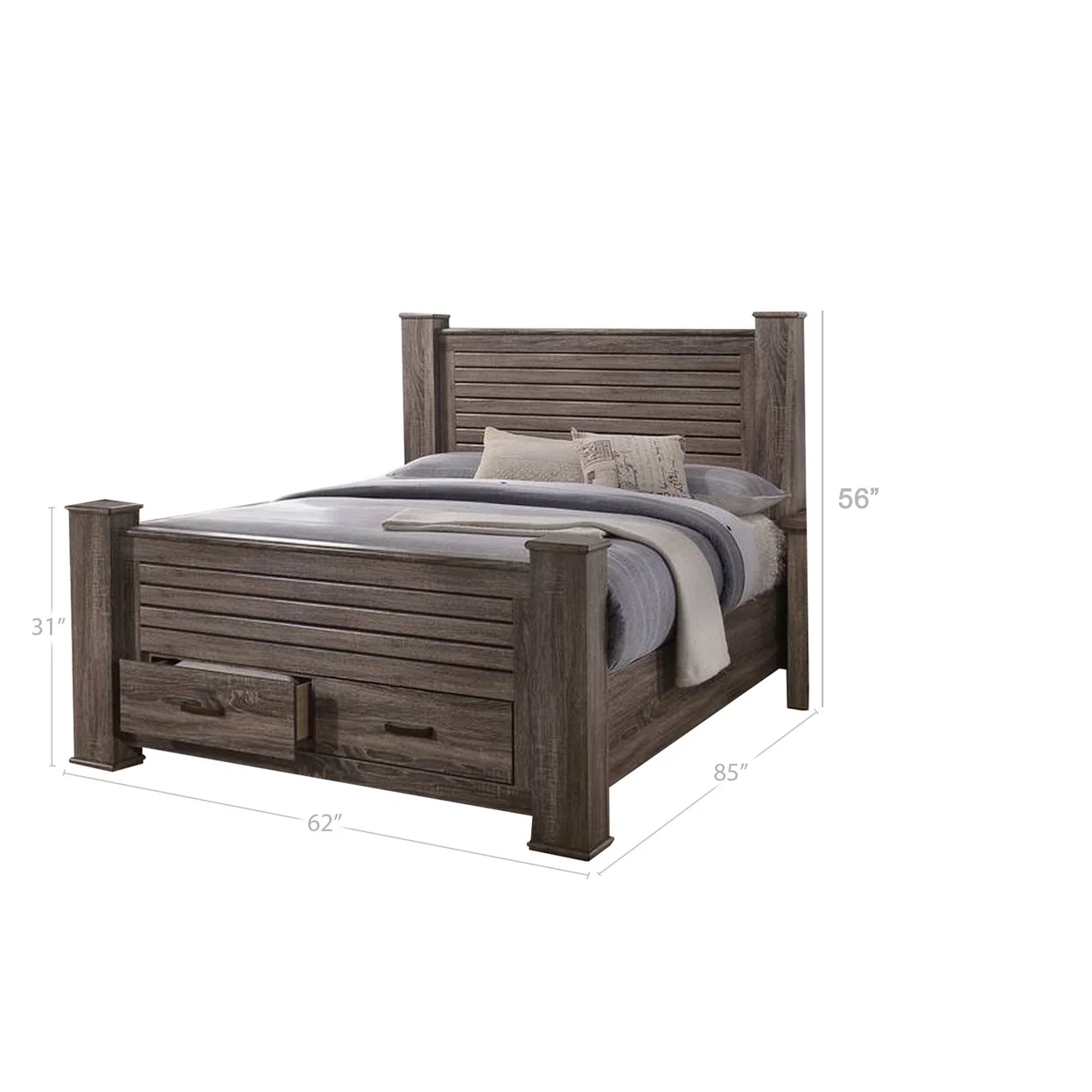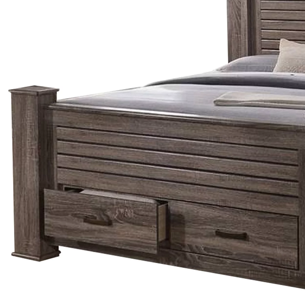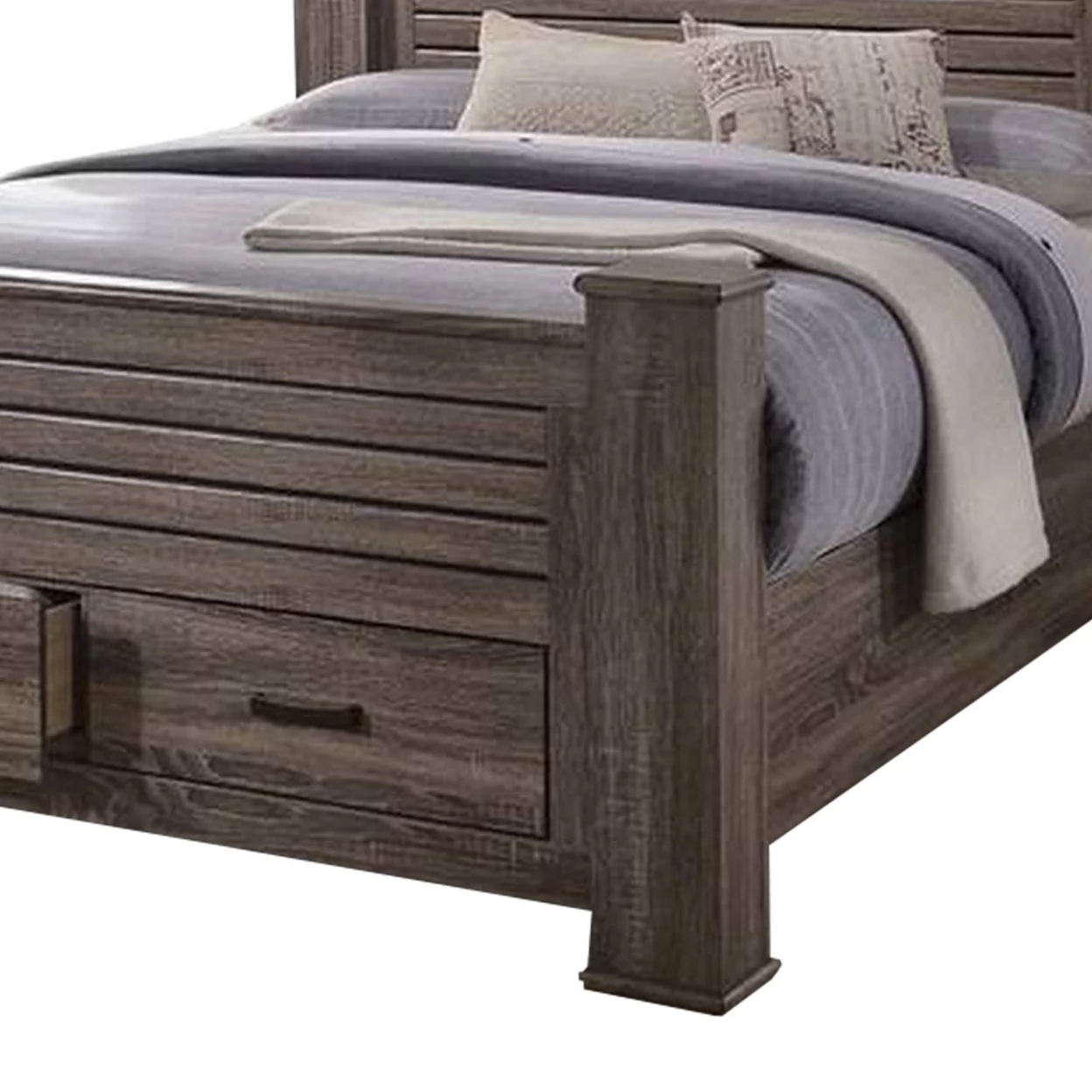 Soma Queen Sized Bed with 2 Gliding Drawers Metal Bar Handles Oak Gray- Saltoro Sherpi