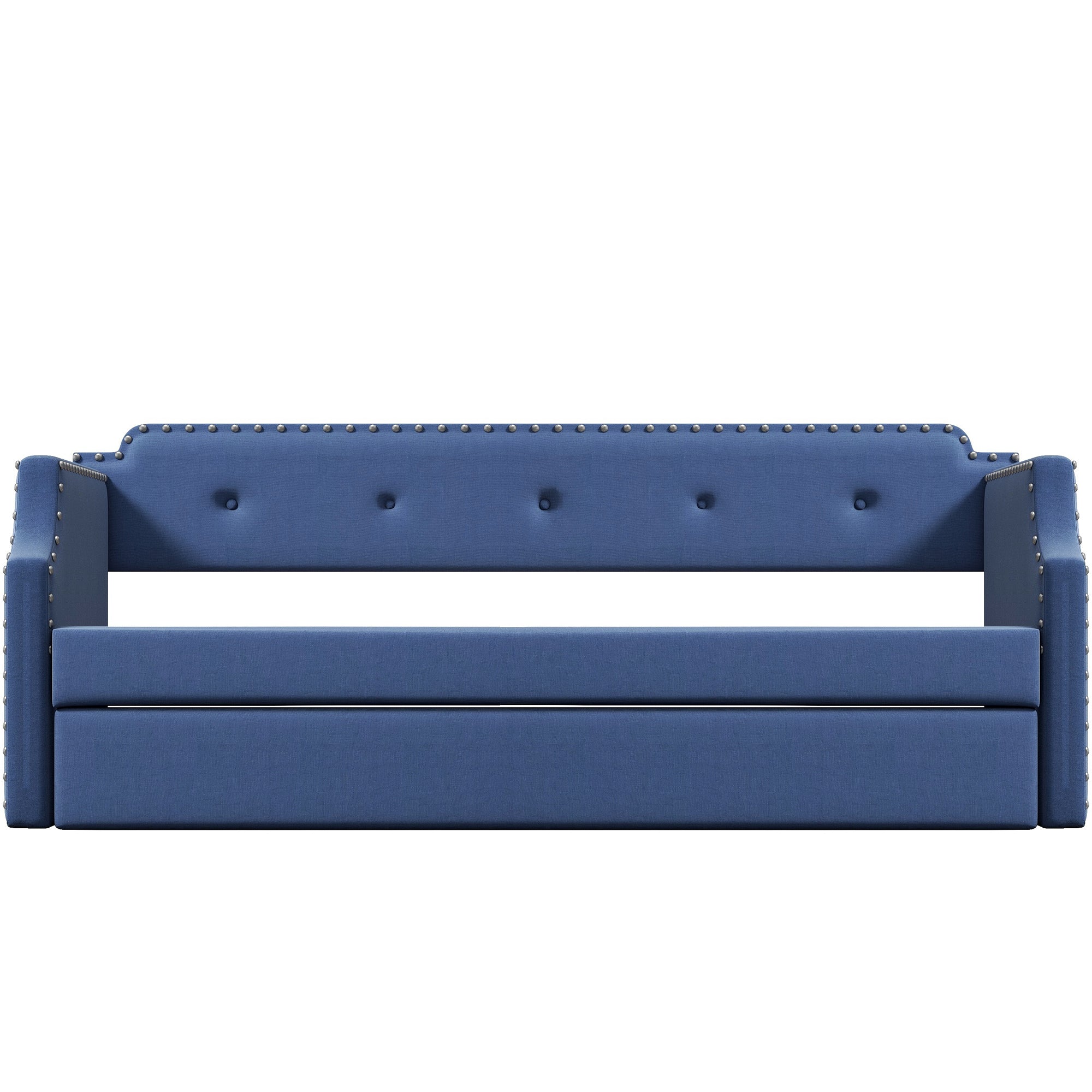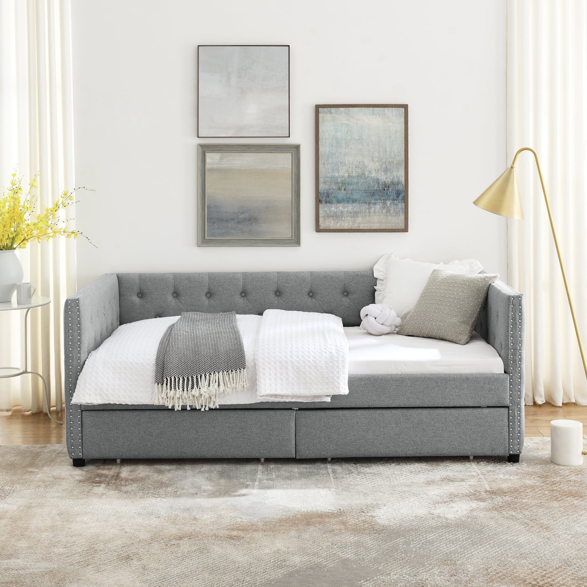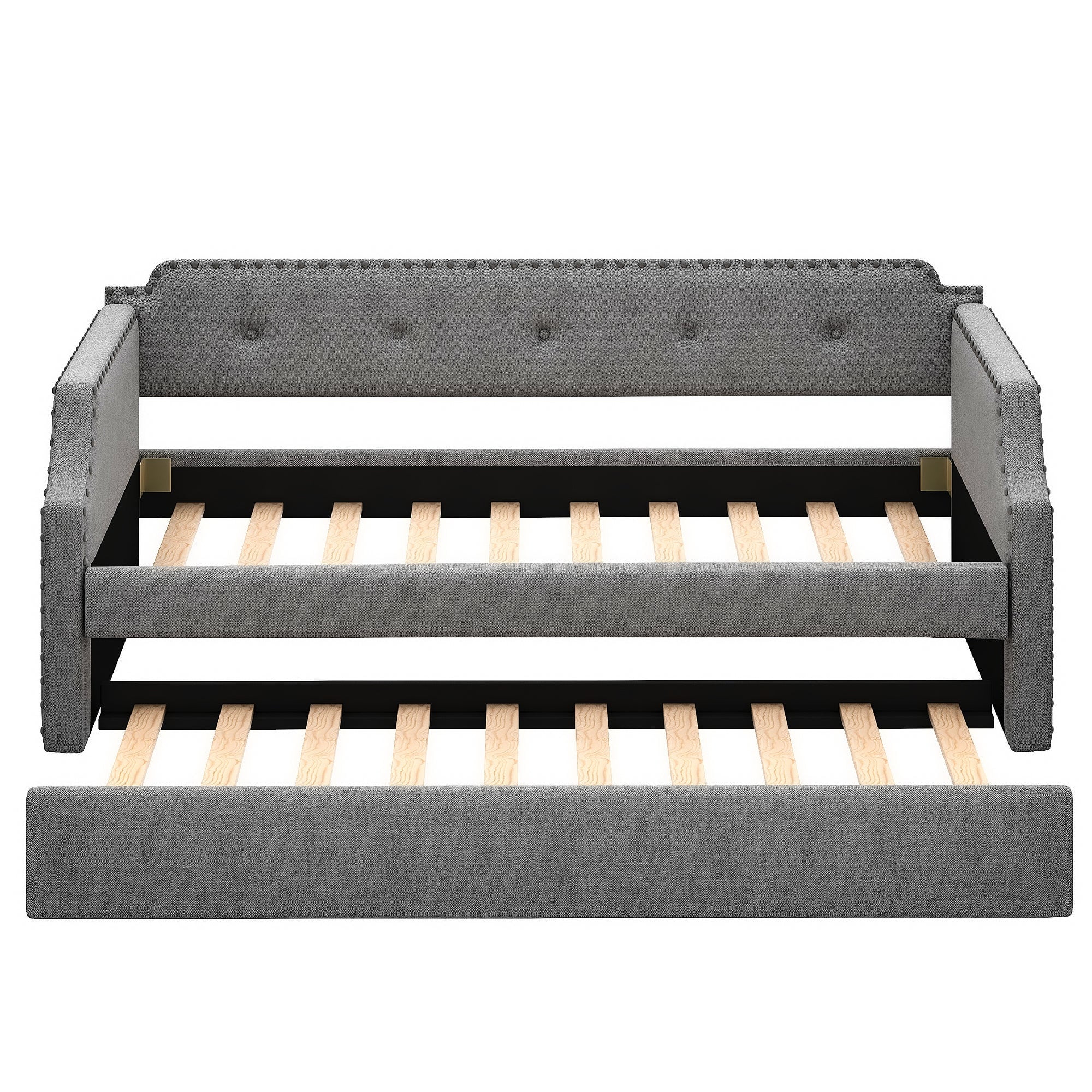 Upholstered Twin Size Daybed with Two Drawers, with Button and Copper Nail on Square Arms, Grey (82.75''x43''x30.75'')