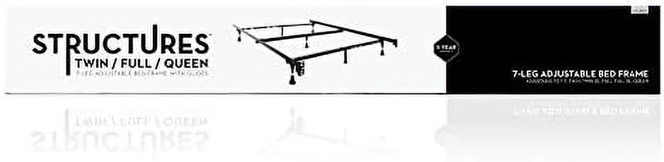STRUCTURES Heavy Duty Adjustable Metal Bed Frame With 7 Legs, Center Support And Glides - Queen, Full XL, Full, XL,