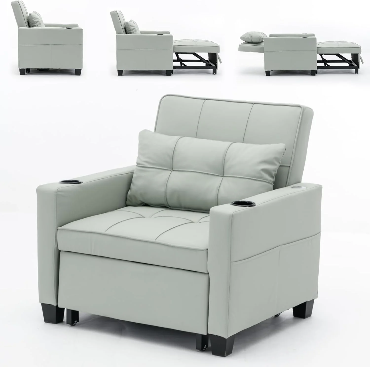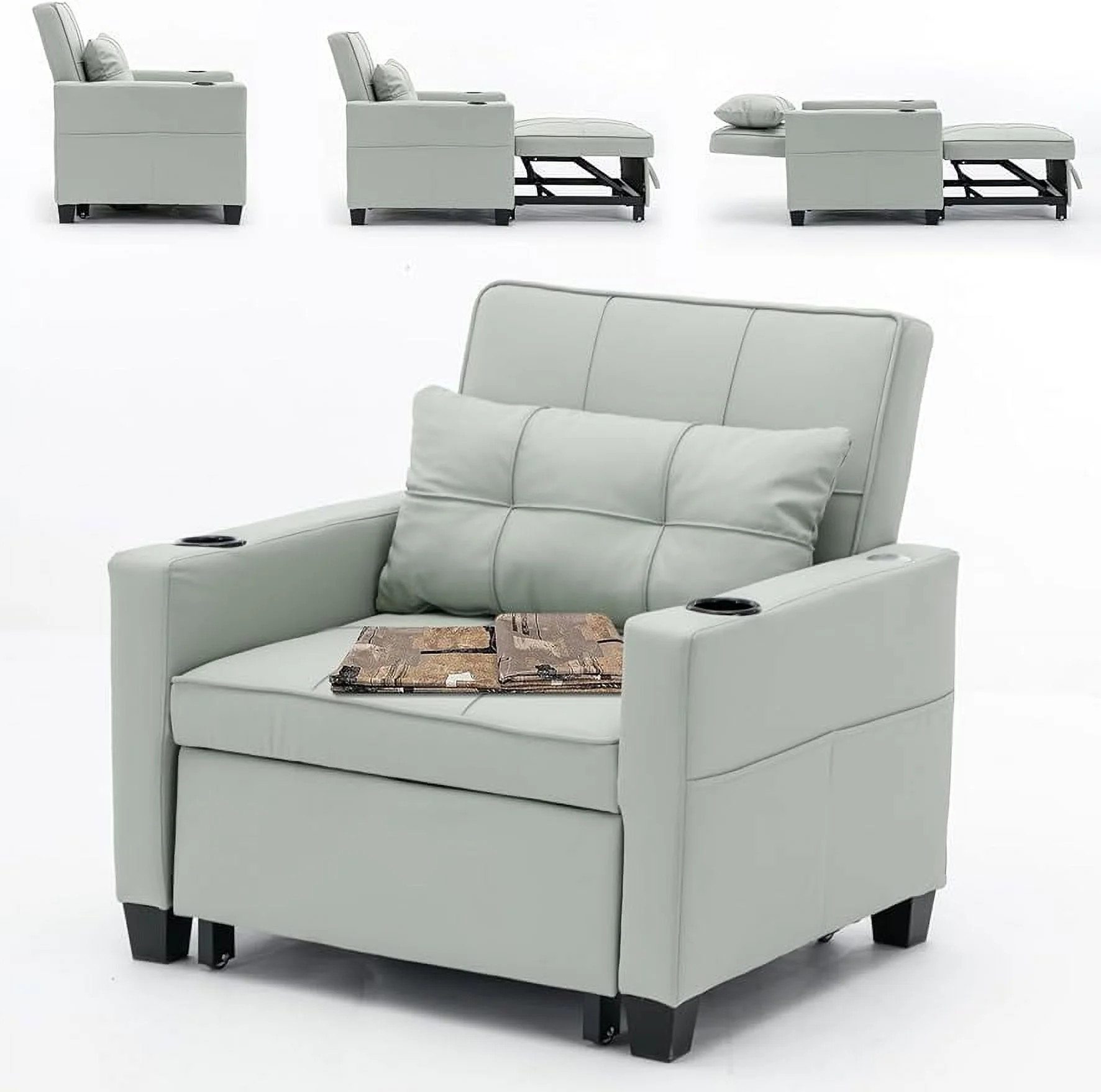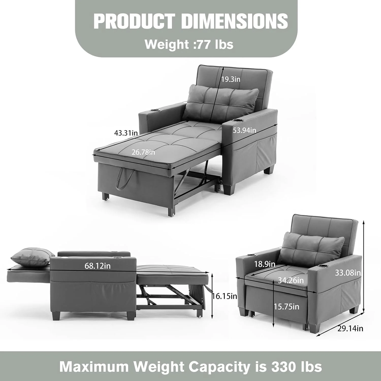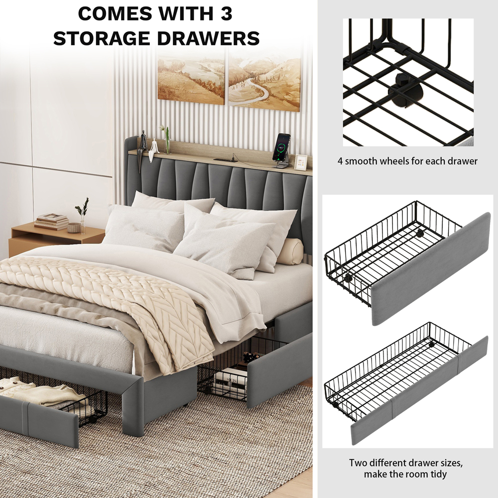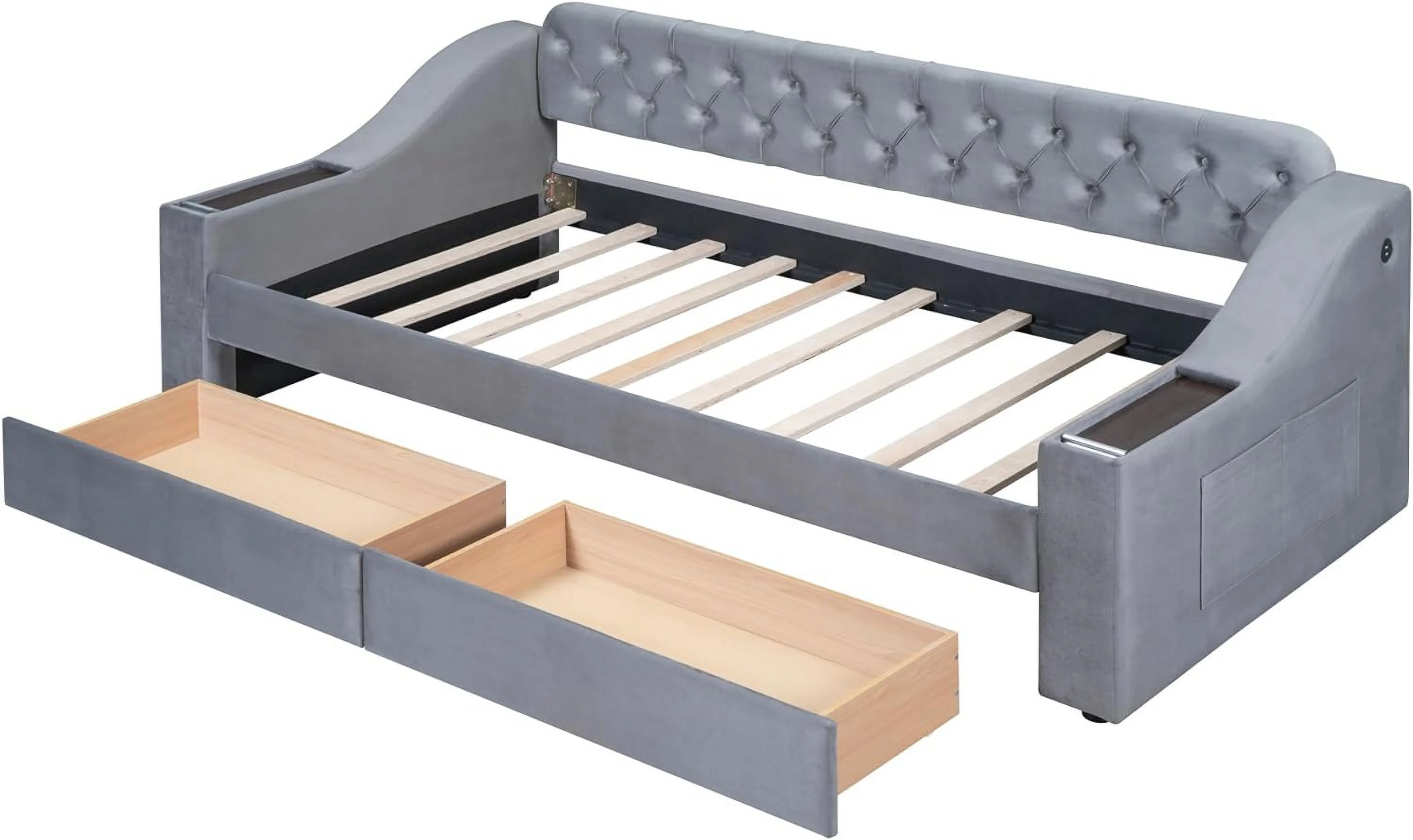 Size Daybed With Drawers, Upholstered Daybed Frame With Storage Armrests Ad USB Port, Gray