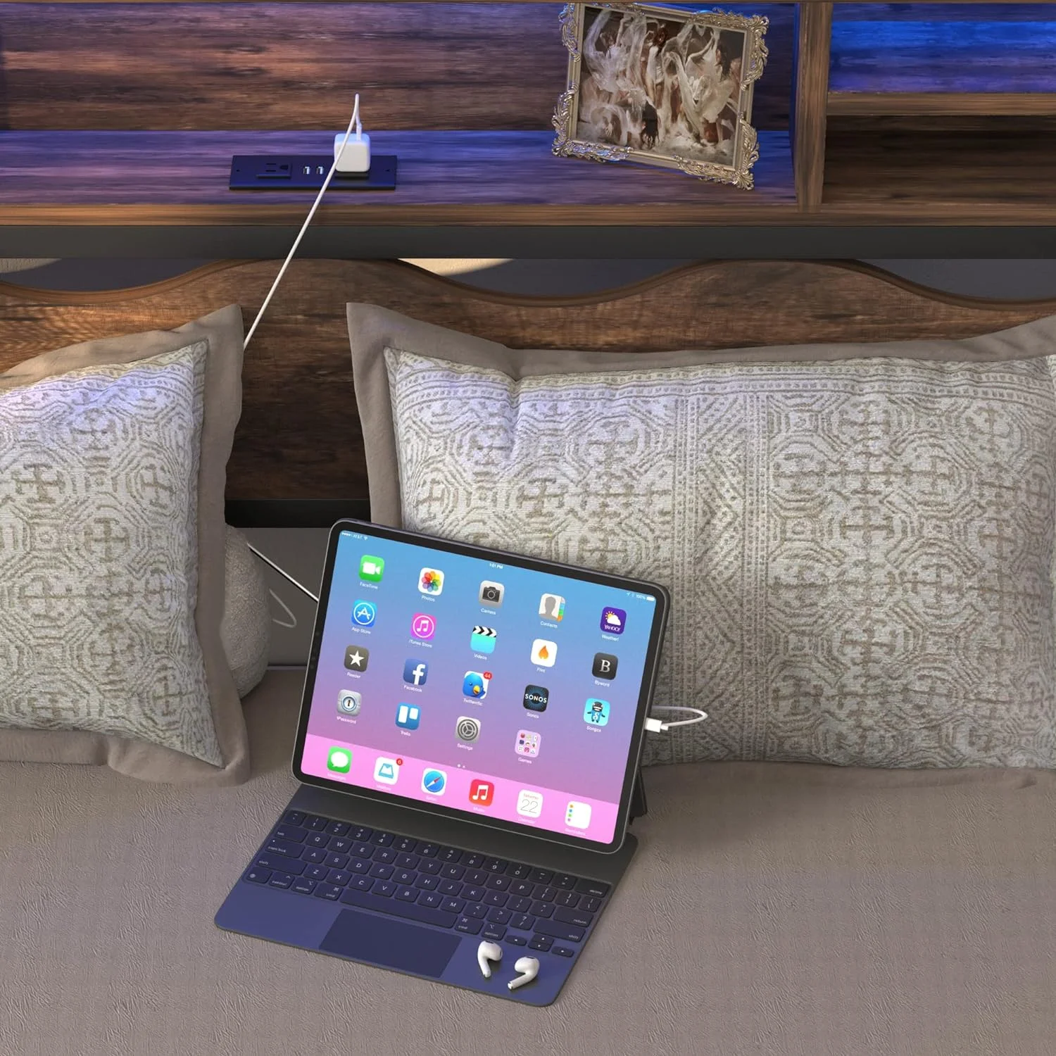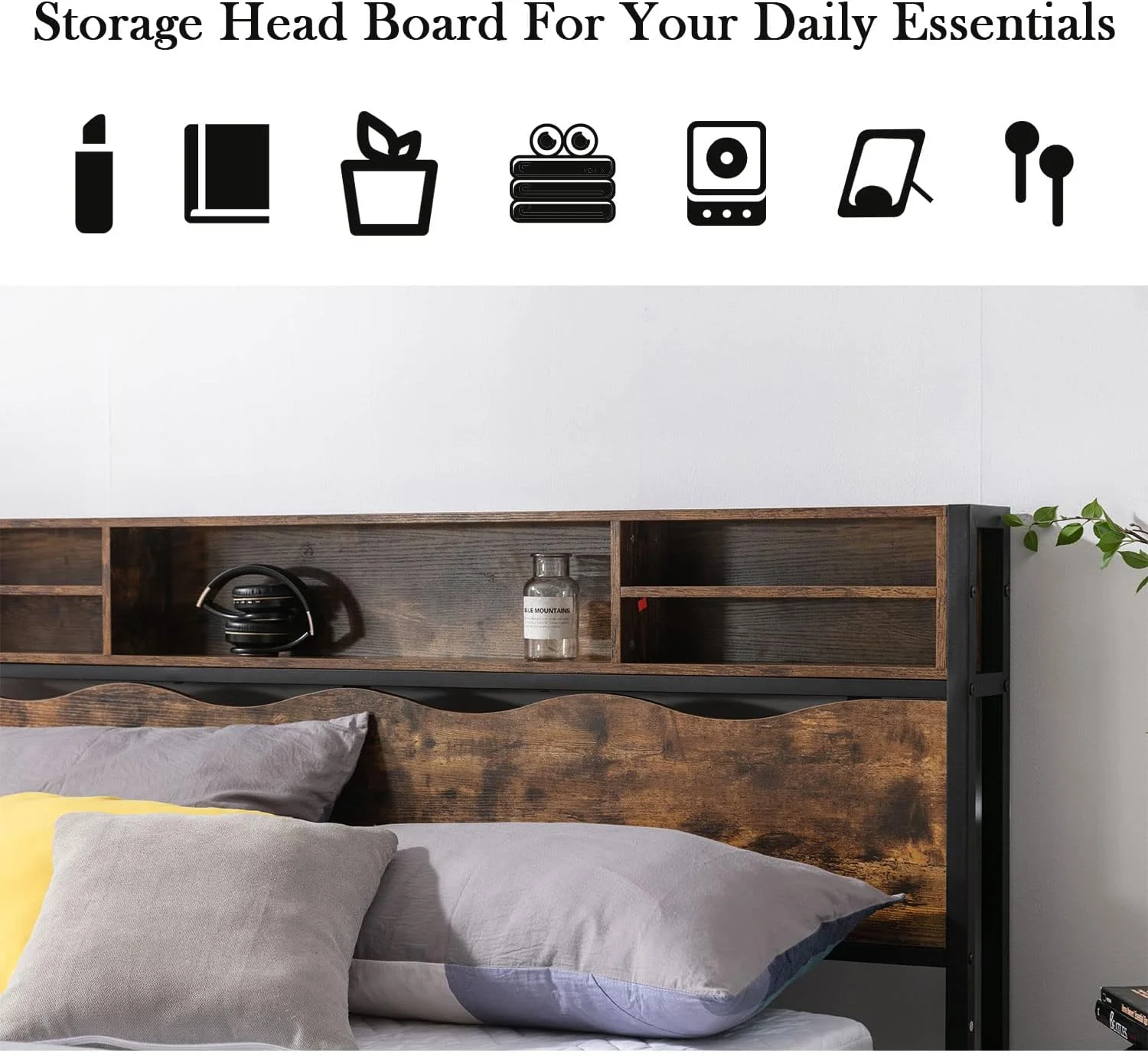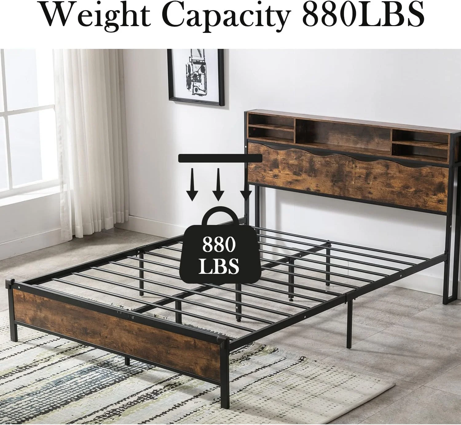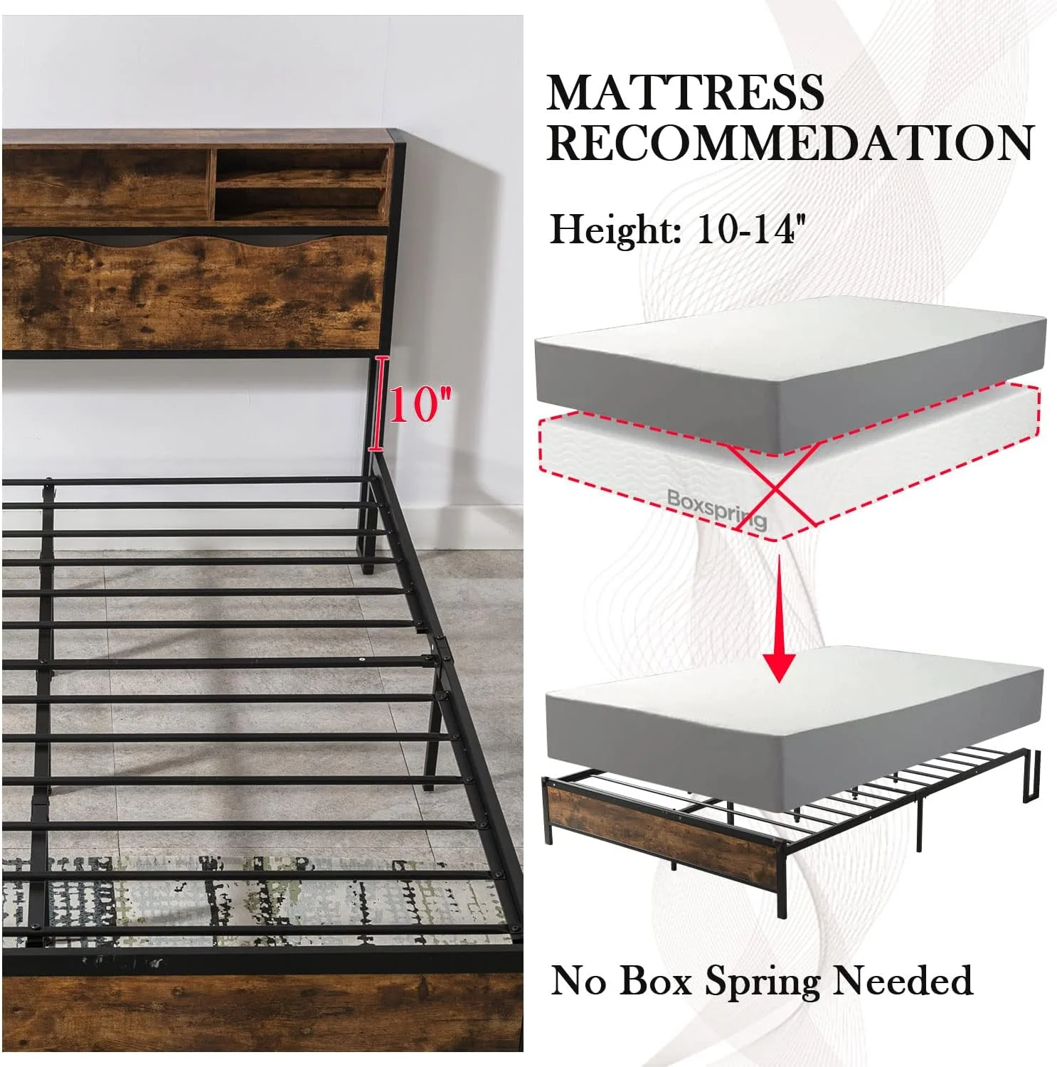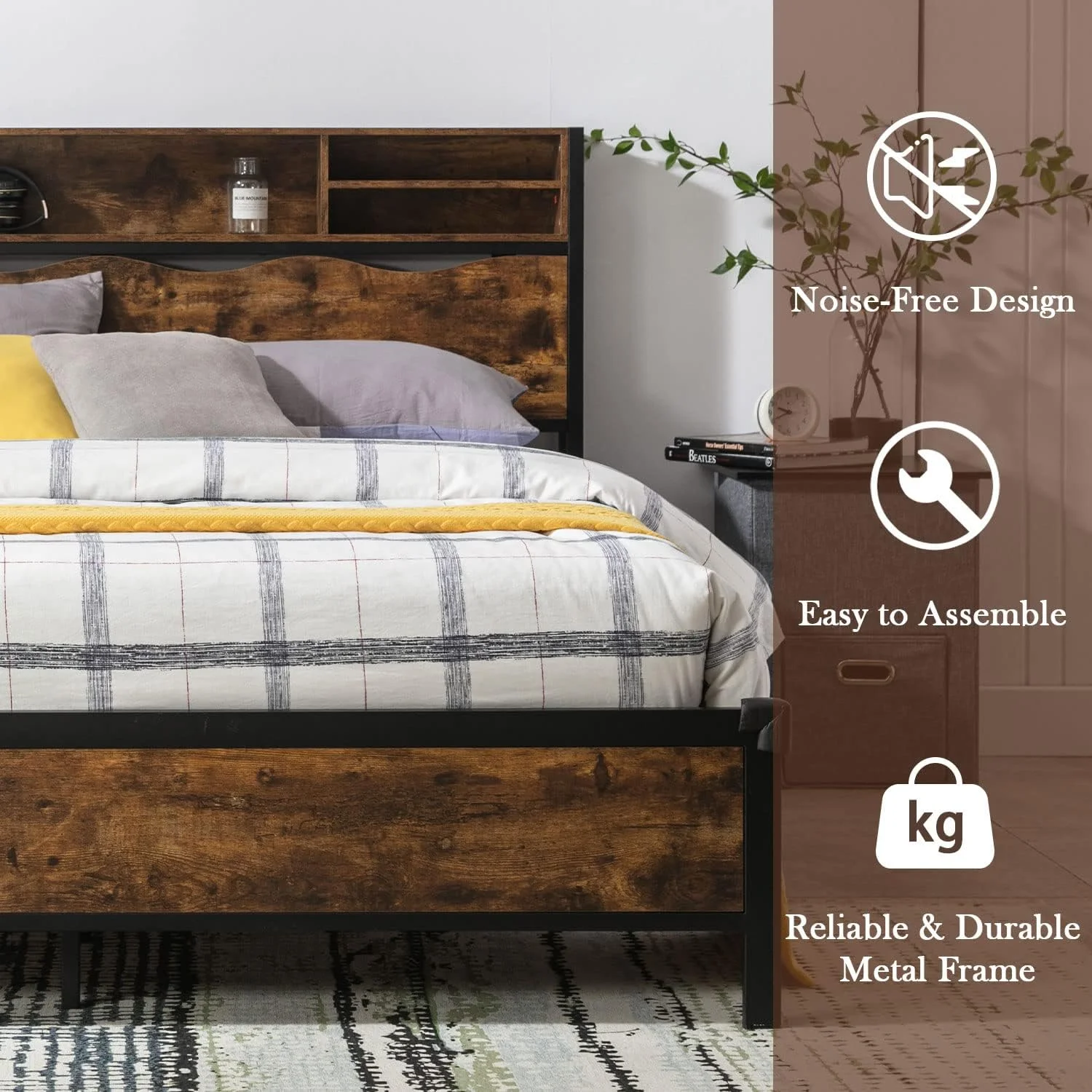 Holaki Industrial Queen Bed Frame with Wood Headboard and Footboard, Heavy Duty Mattress Foundation with Slat Support