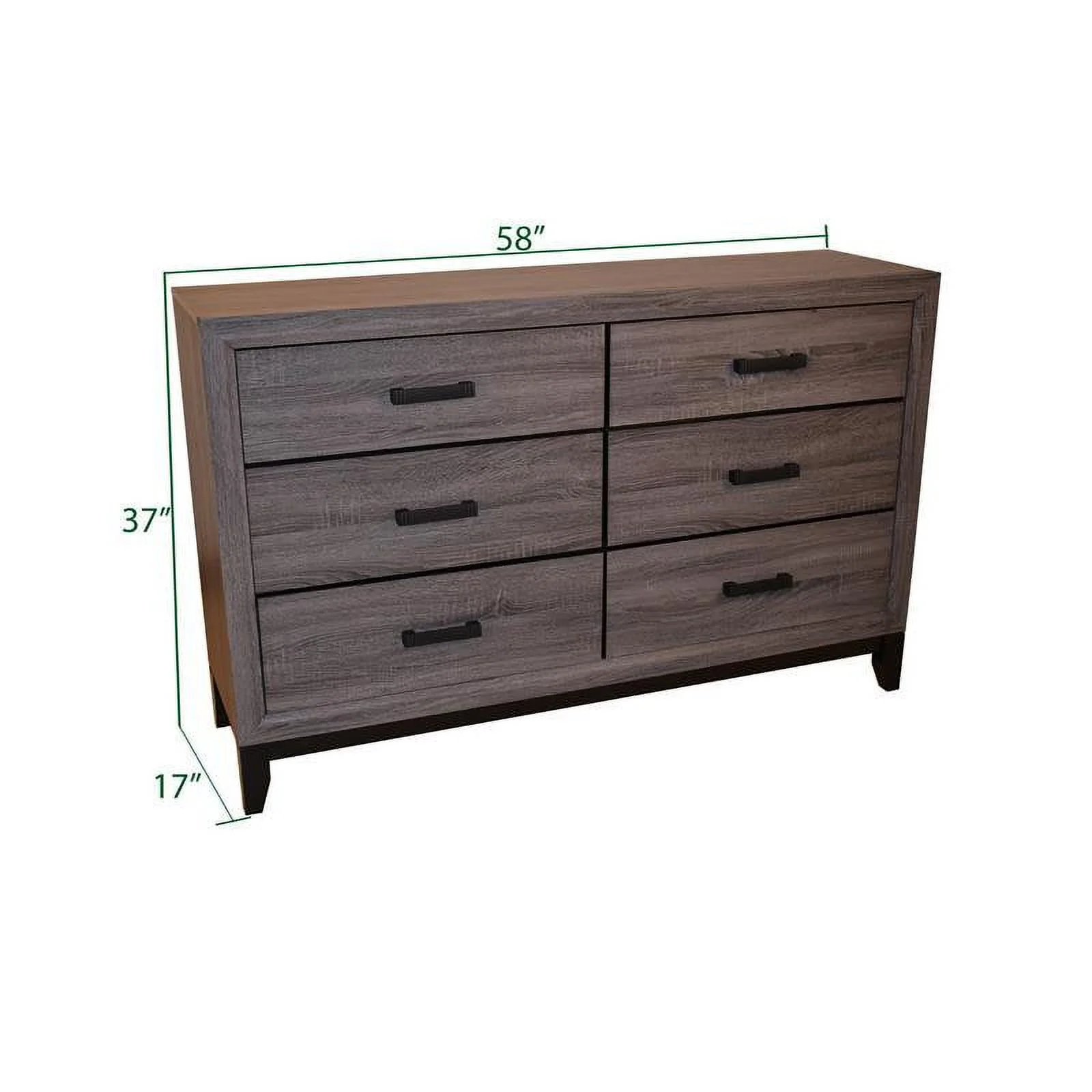 Galaxy Home Contemporary Sierra Wood 6 Drawer Double Bedroom Dresser in Gray