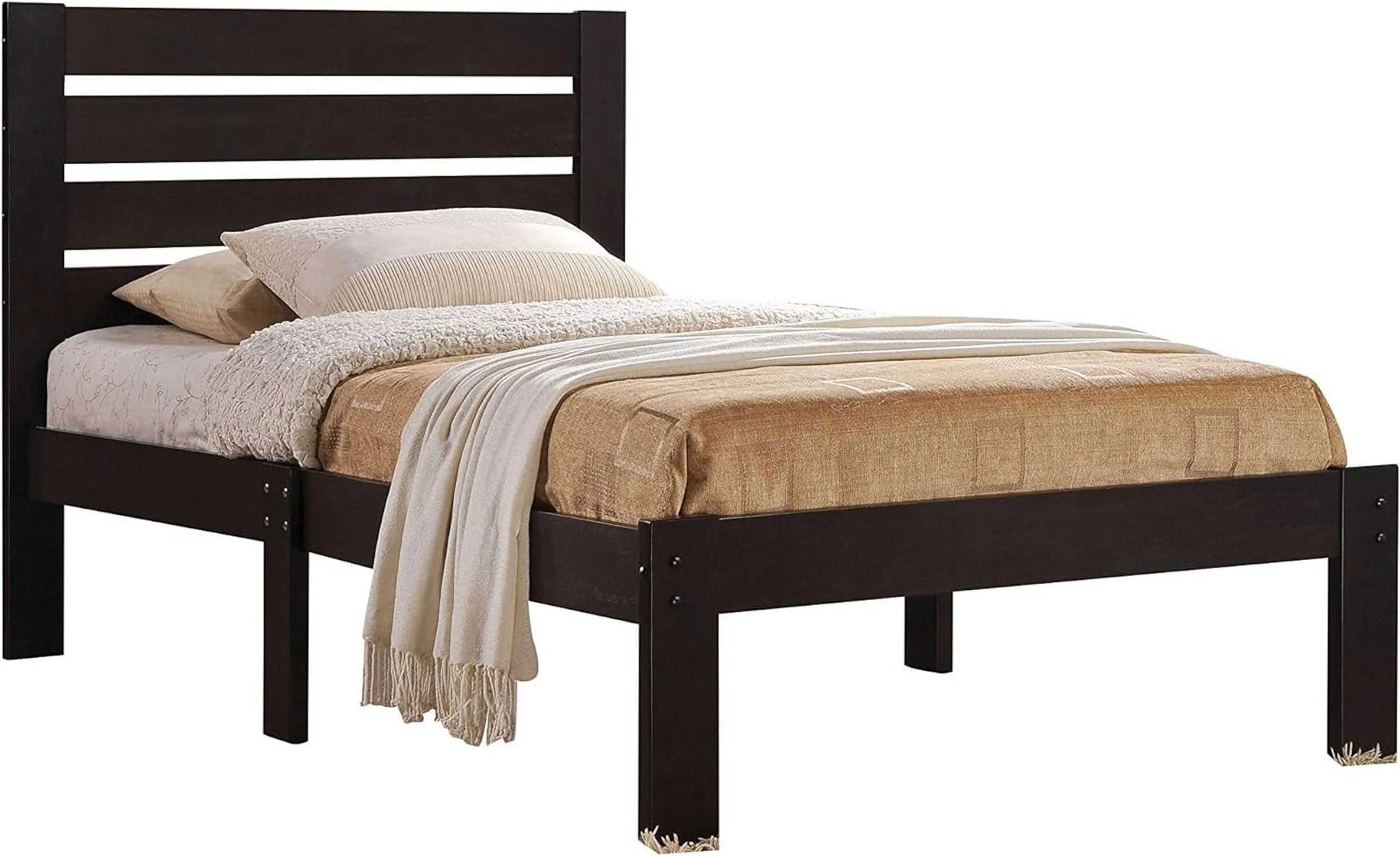 Queen Bed Frame, Queen Bed With Headboard And Footboard, Solid Wood Platform Bed Frame (Queen Size, Espresso)