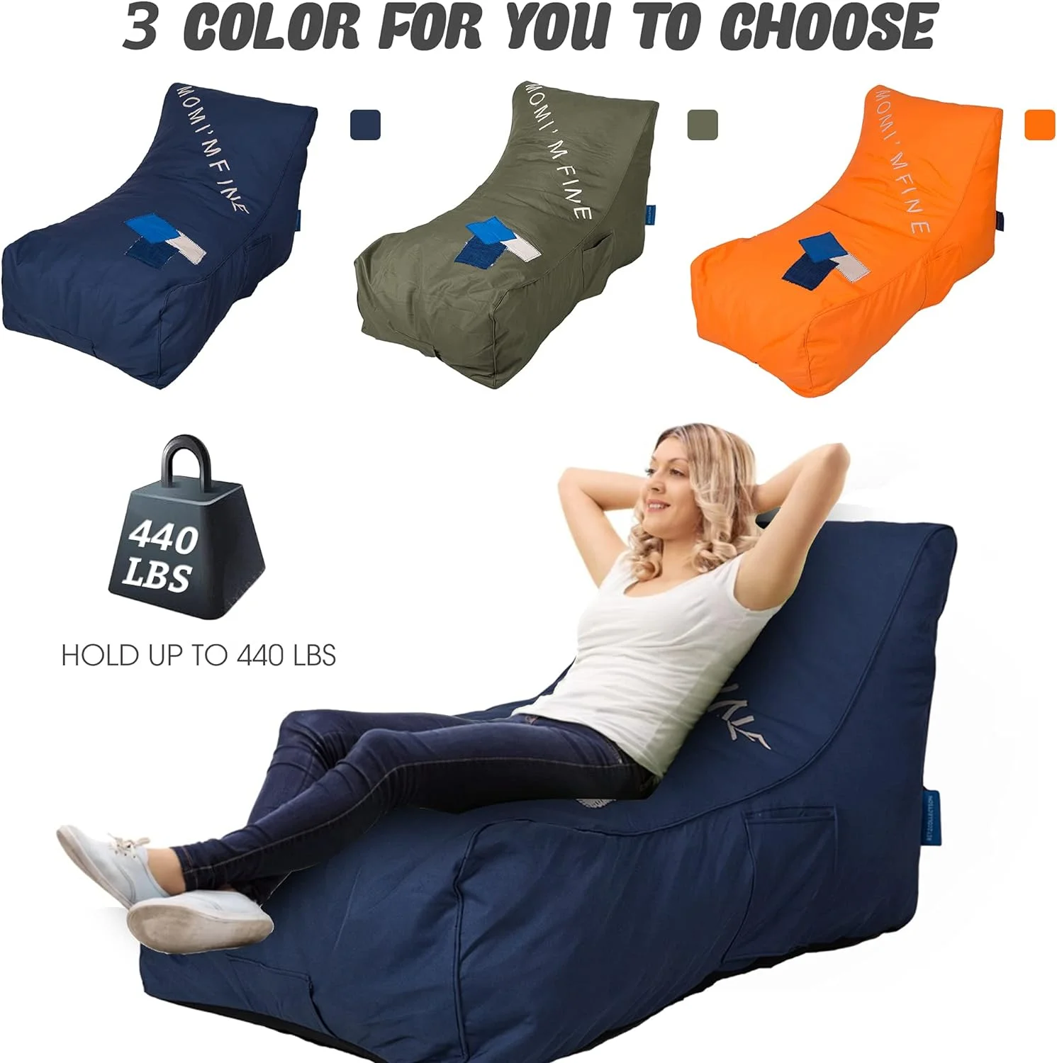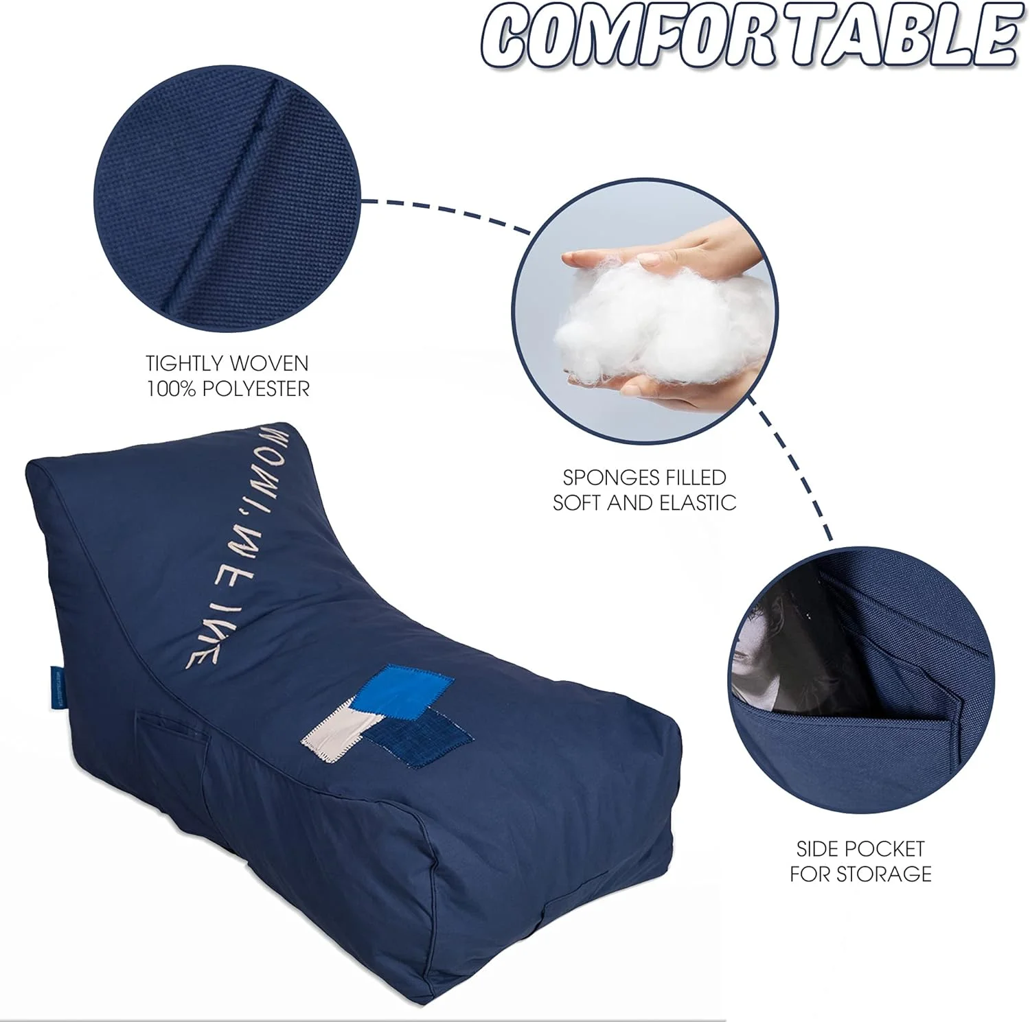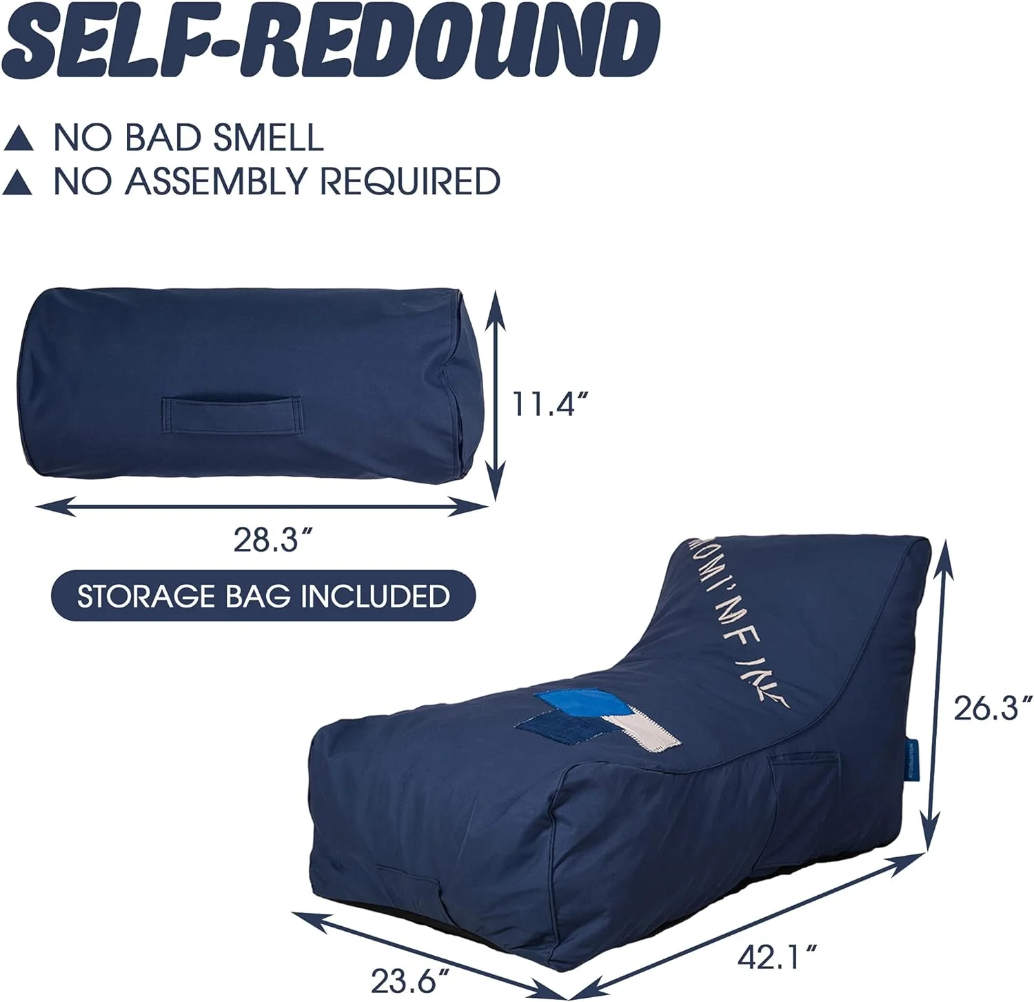 Chaise Lounge Chair Self Expanding Sponge Bean Bag Home Furniture Lazy Relax Comfort Bed Sofa for Adults Kids, Darkblue