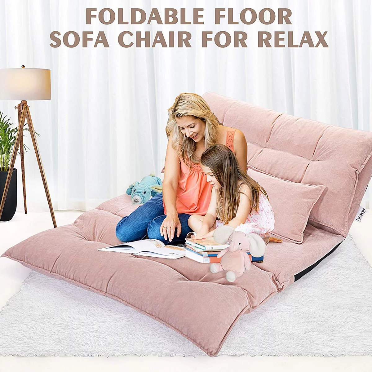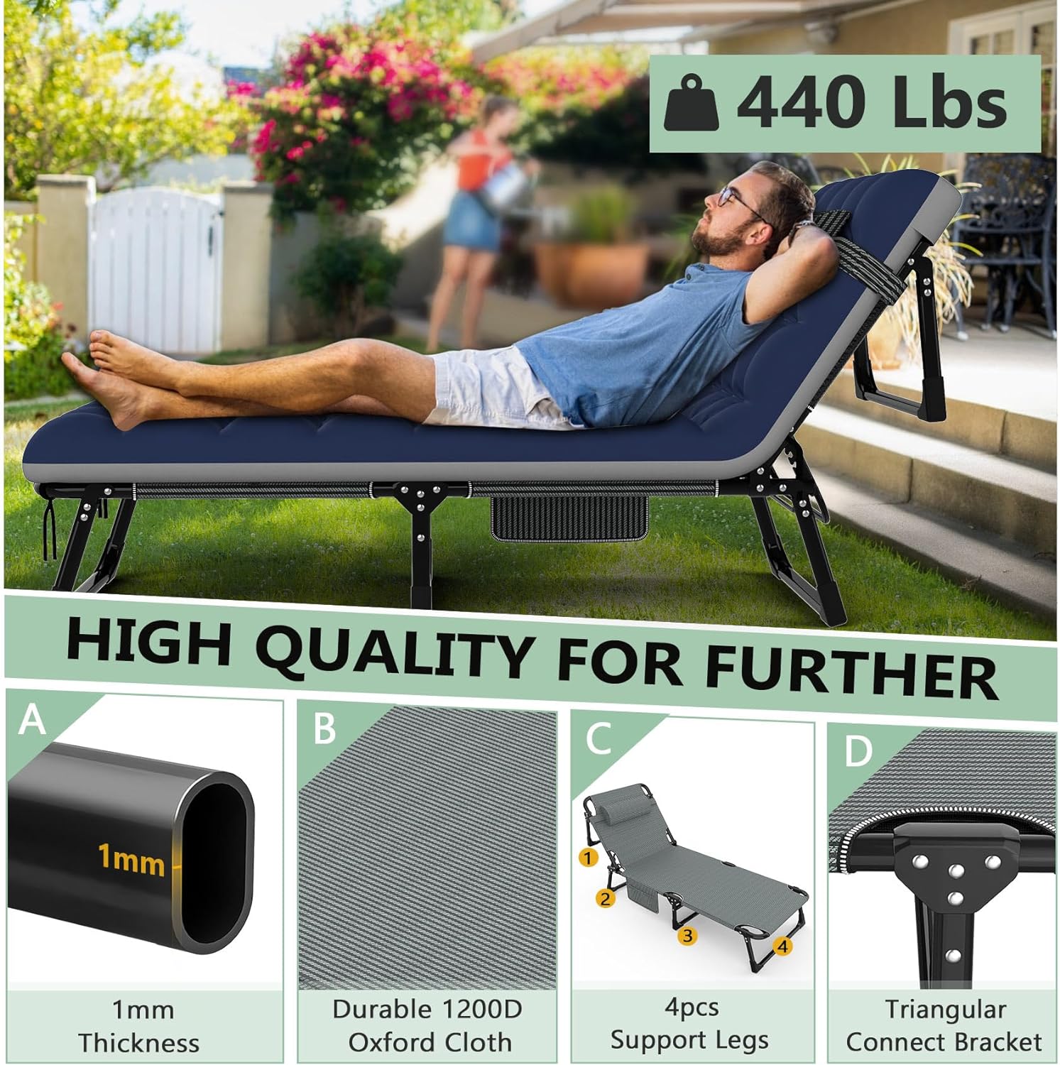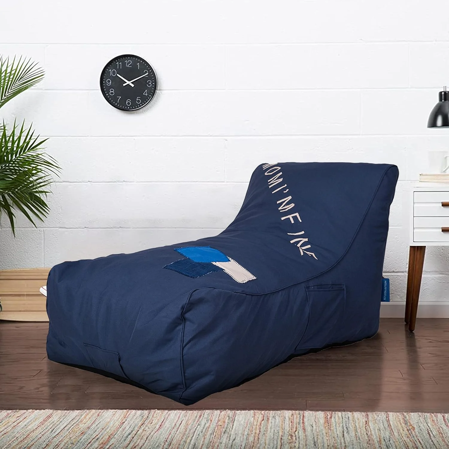 Chaise Lounge Chair Self Expanding Sponge Bean Bag Home Furniture Lazy Relax Comfort Bed Sofa for Adults Kids, Darkblue