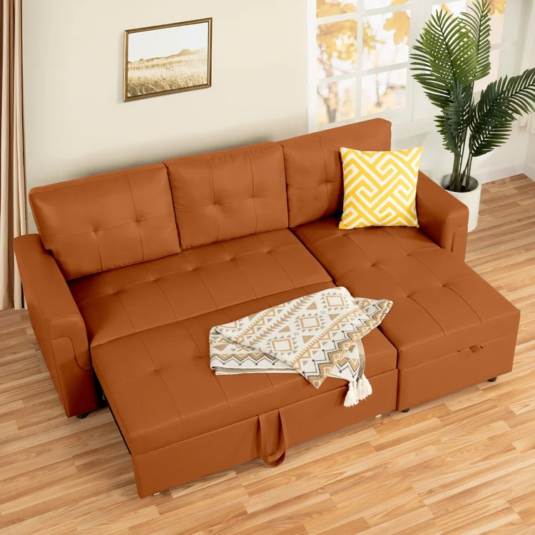 Naomi Home Perry Modern Sectional Sofa with Storage Chaise-Color:Caramel,Fabric:Air Leather