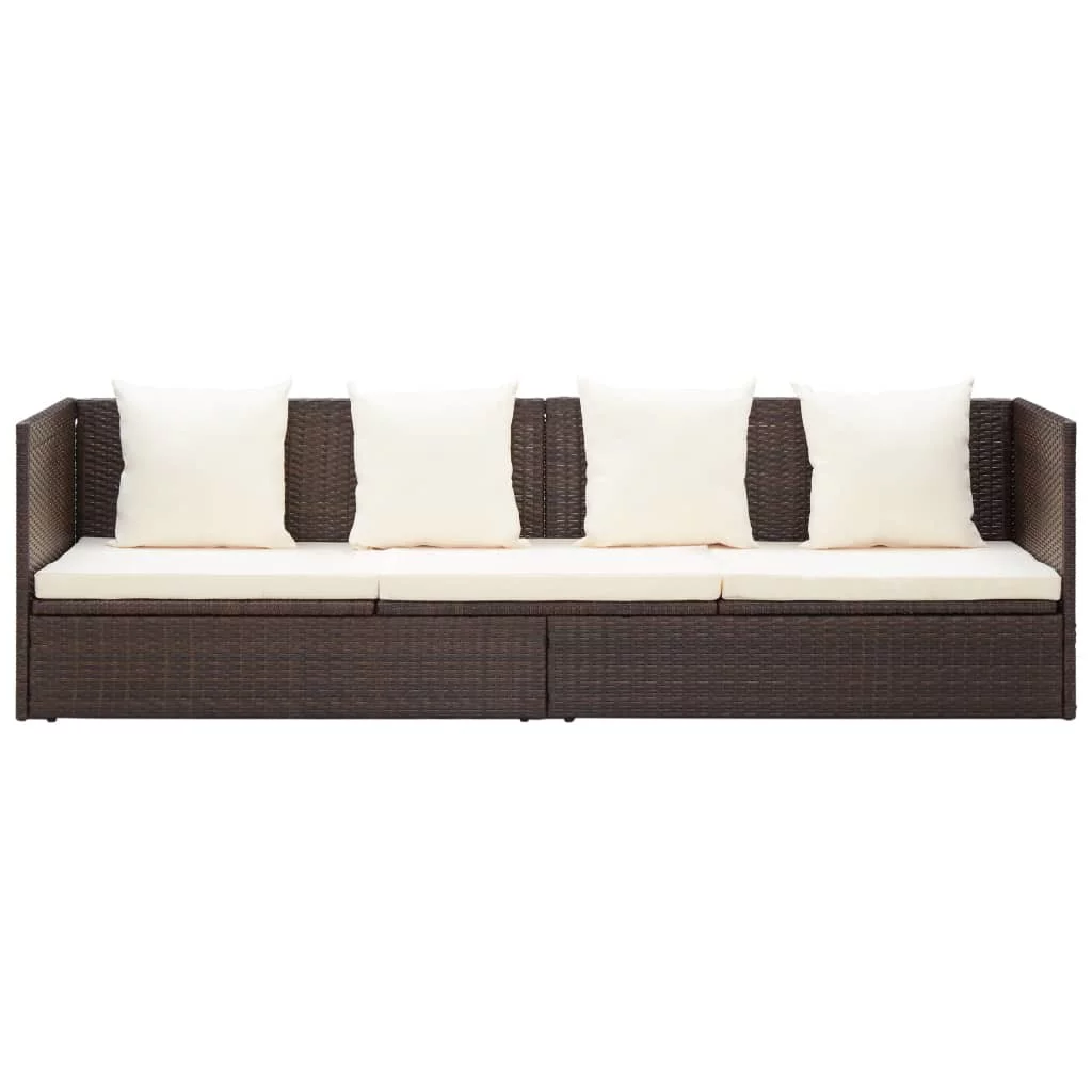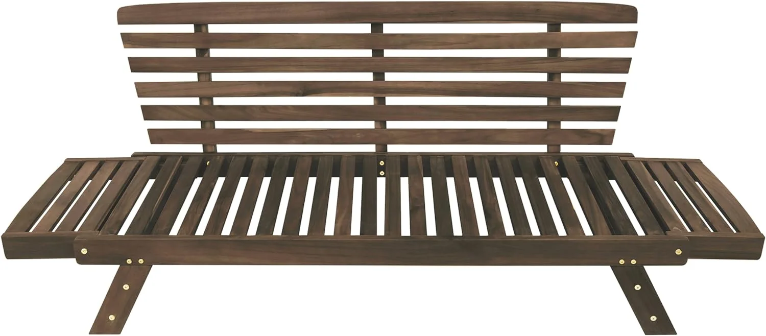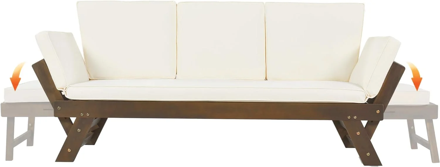 Adjustable Wooden Daybed Sofa Chaise Lounge, Expandable Patio Sectional Sofa With Beige Cushions For Decks, Poolsides, Balconies