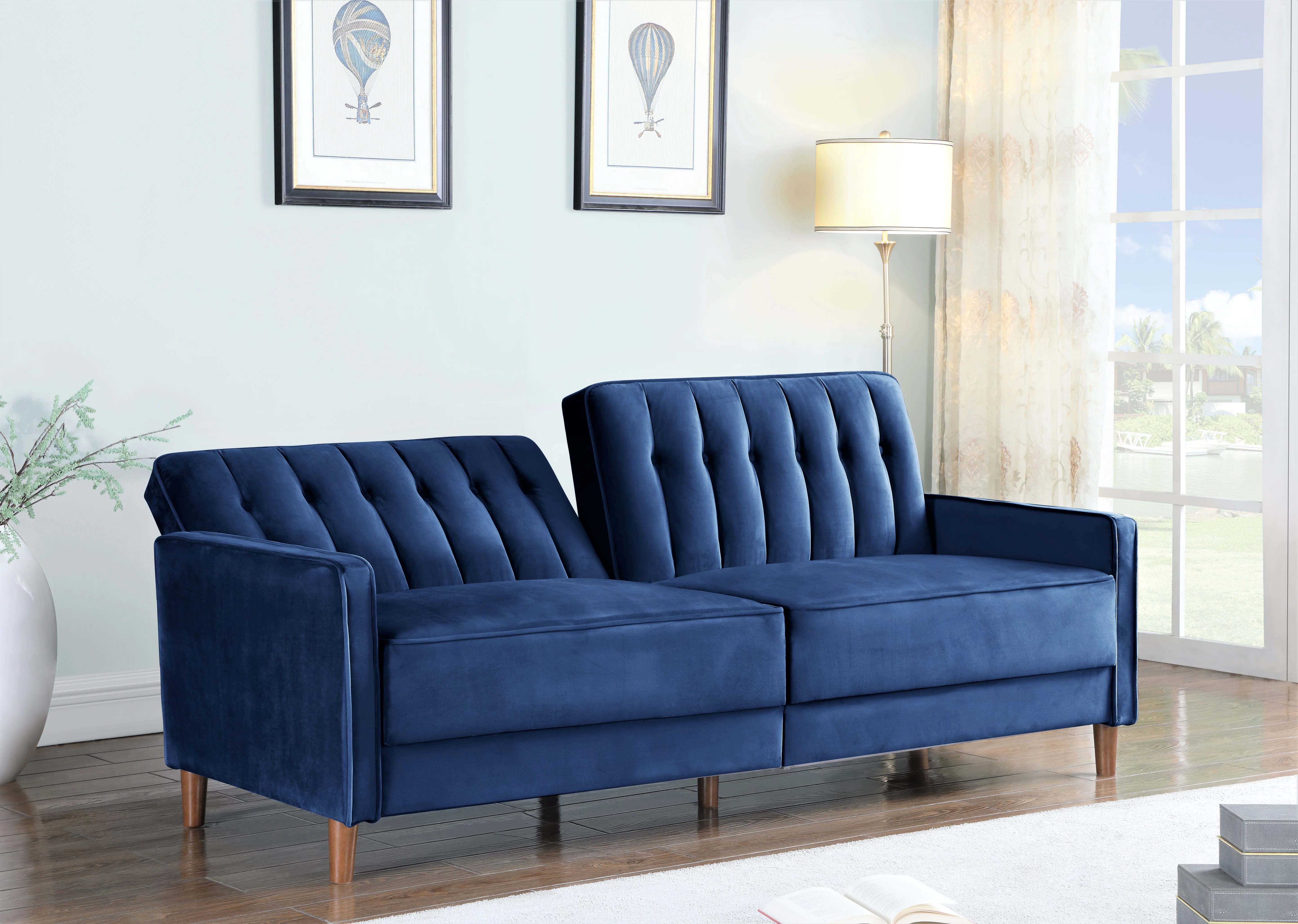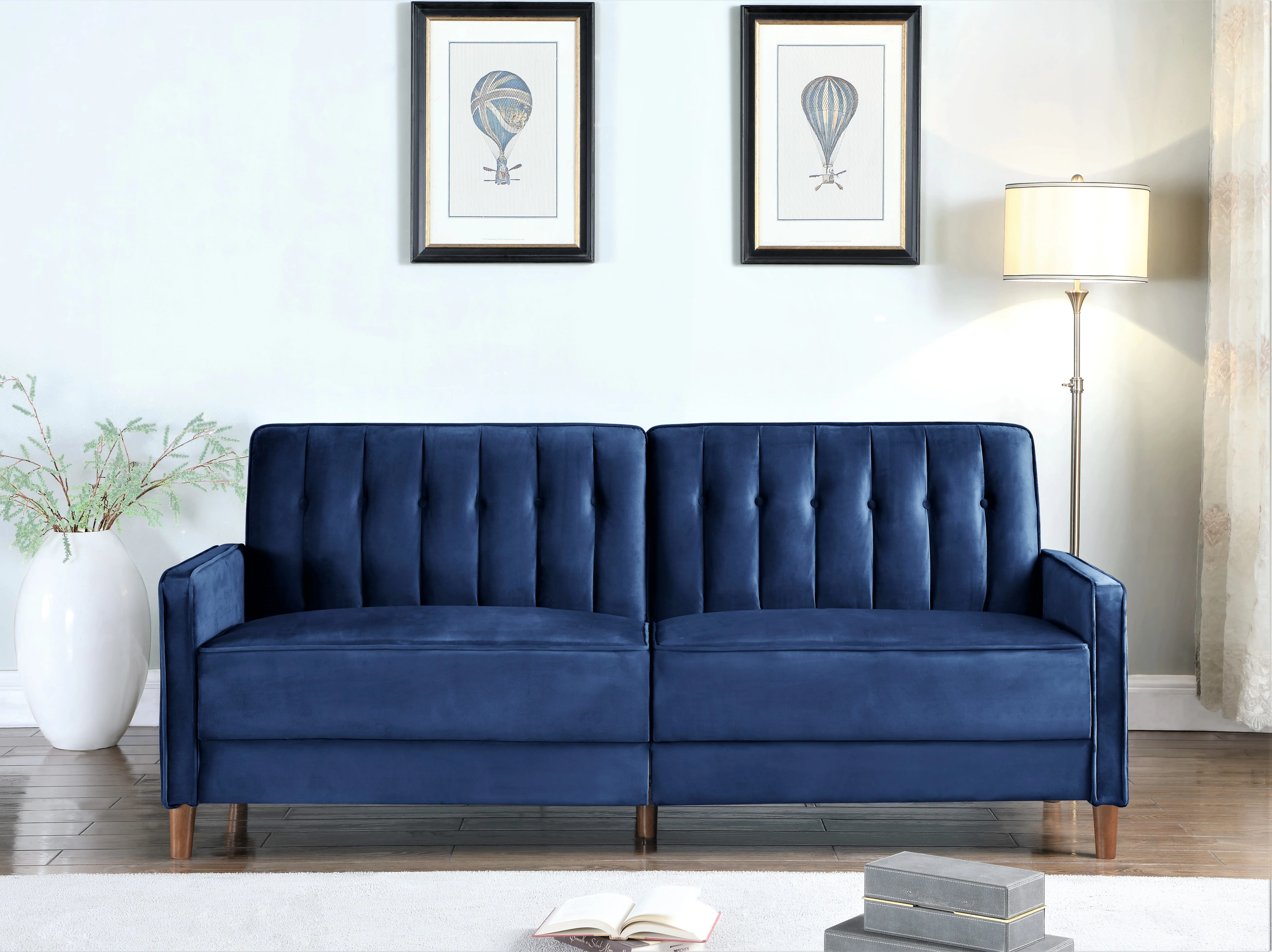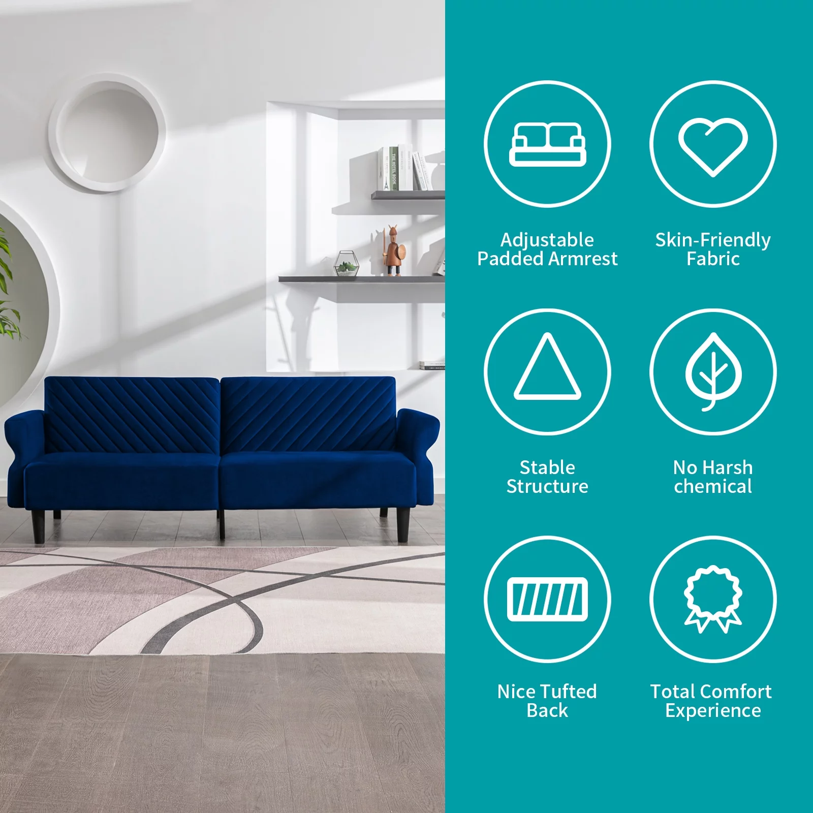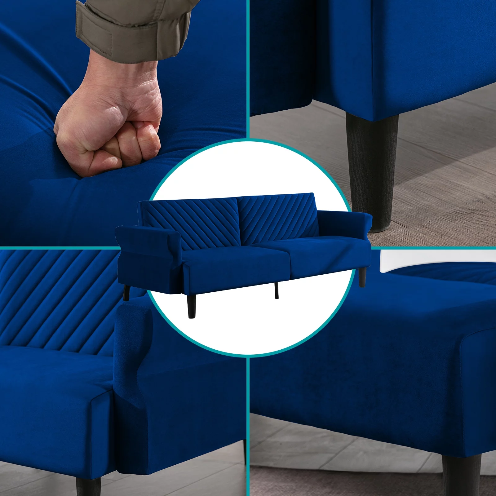 BALUS Modern Sofa Bed with Adjustable Backrest, Strips Tufted Loveseat, Velvet Fabric, Navy