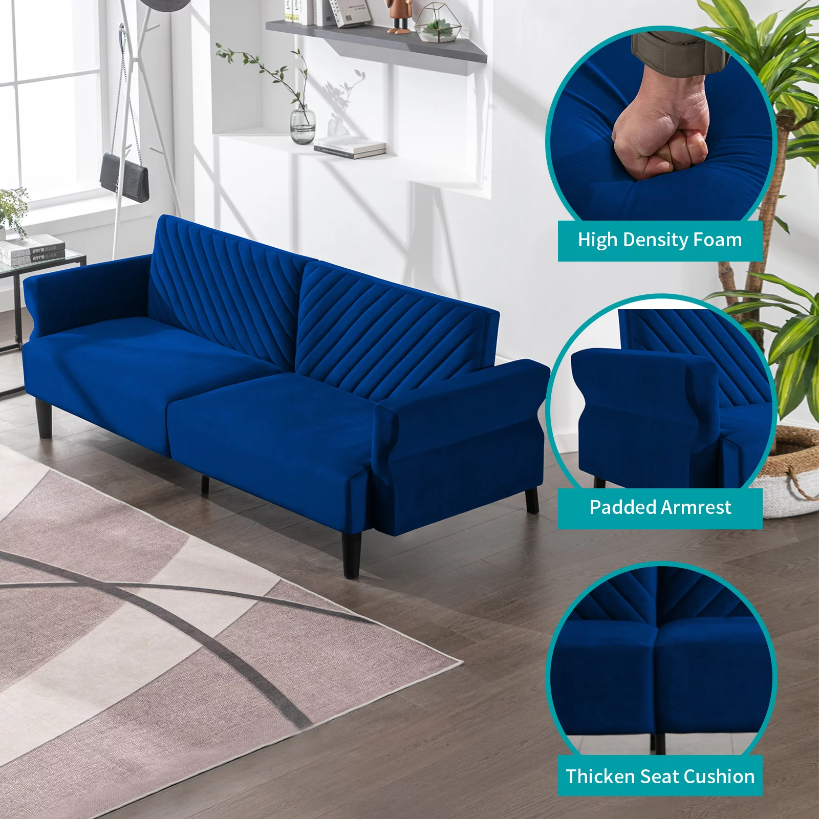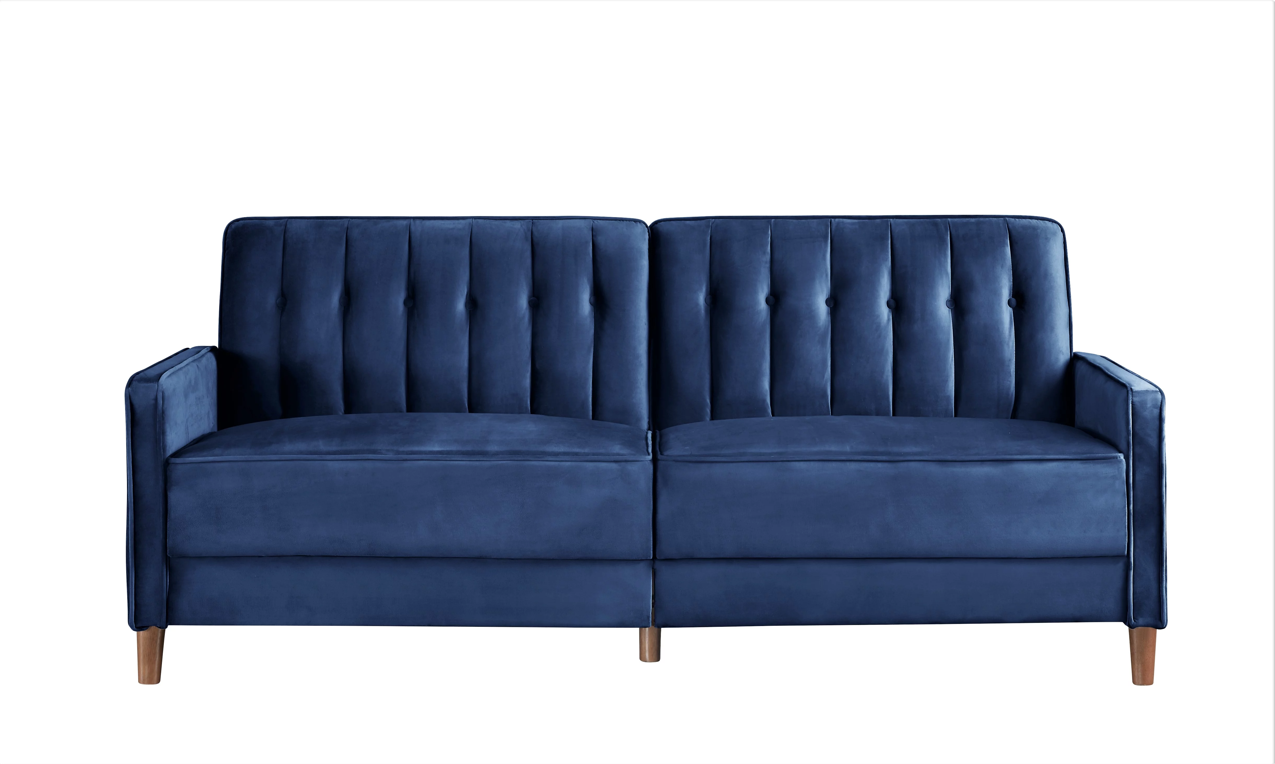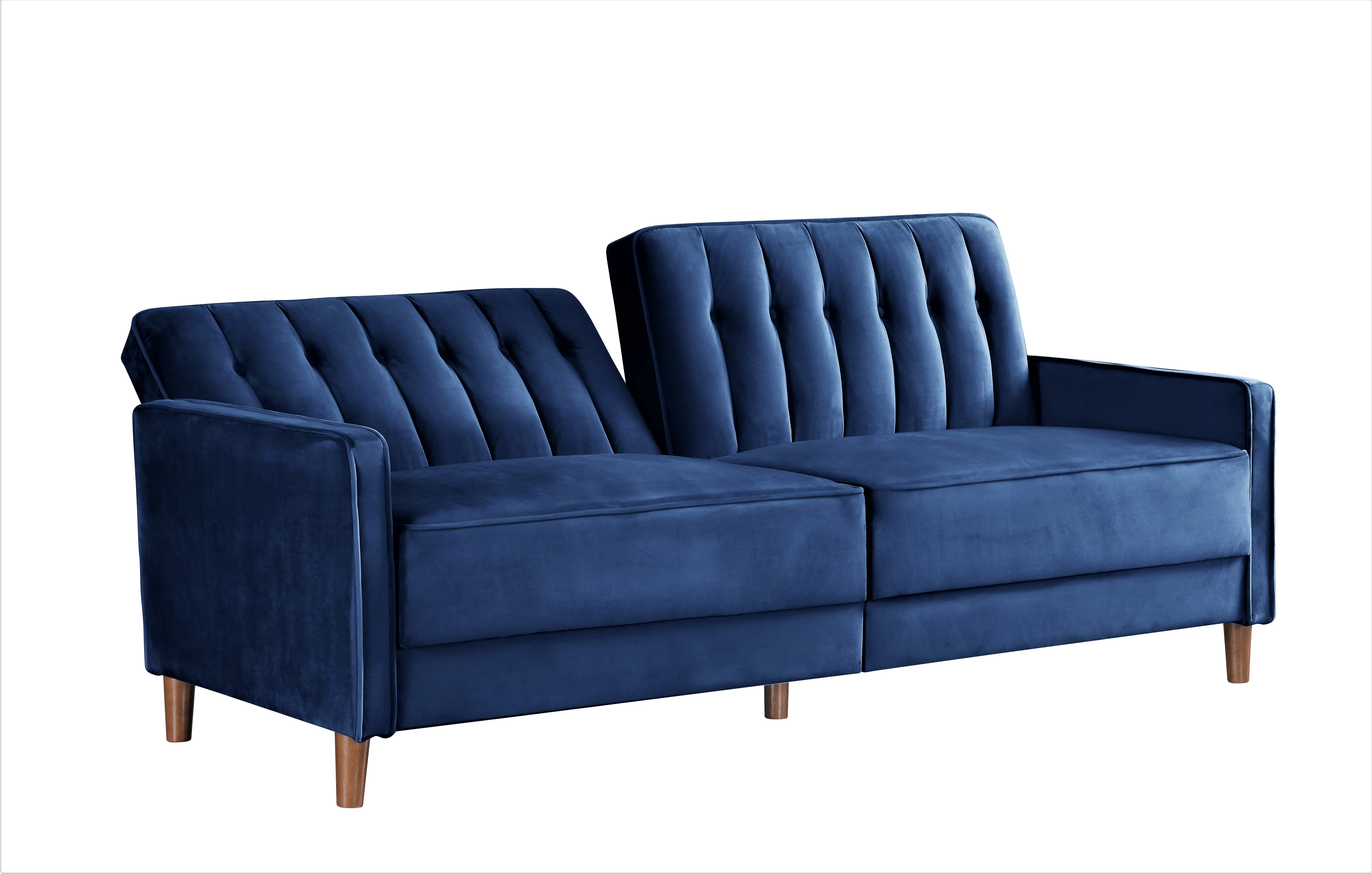 BALUS Modern Sofa Bed with Adjustable Backrest, Strips Tufted Loveseat, Velvet Fabric, Navy