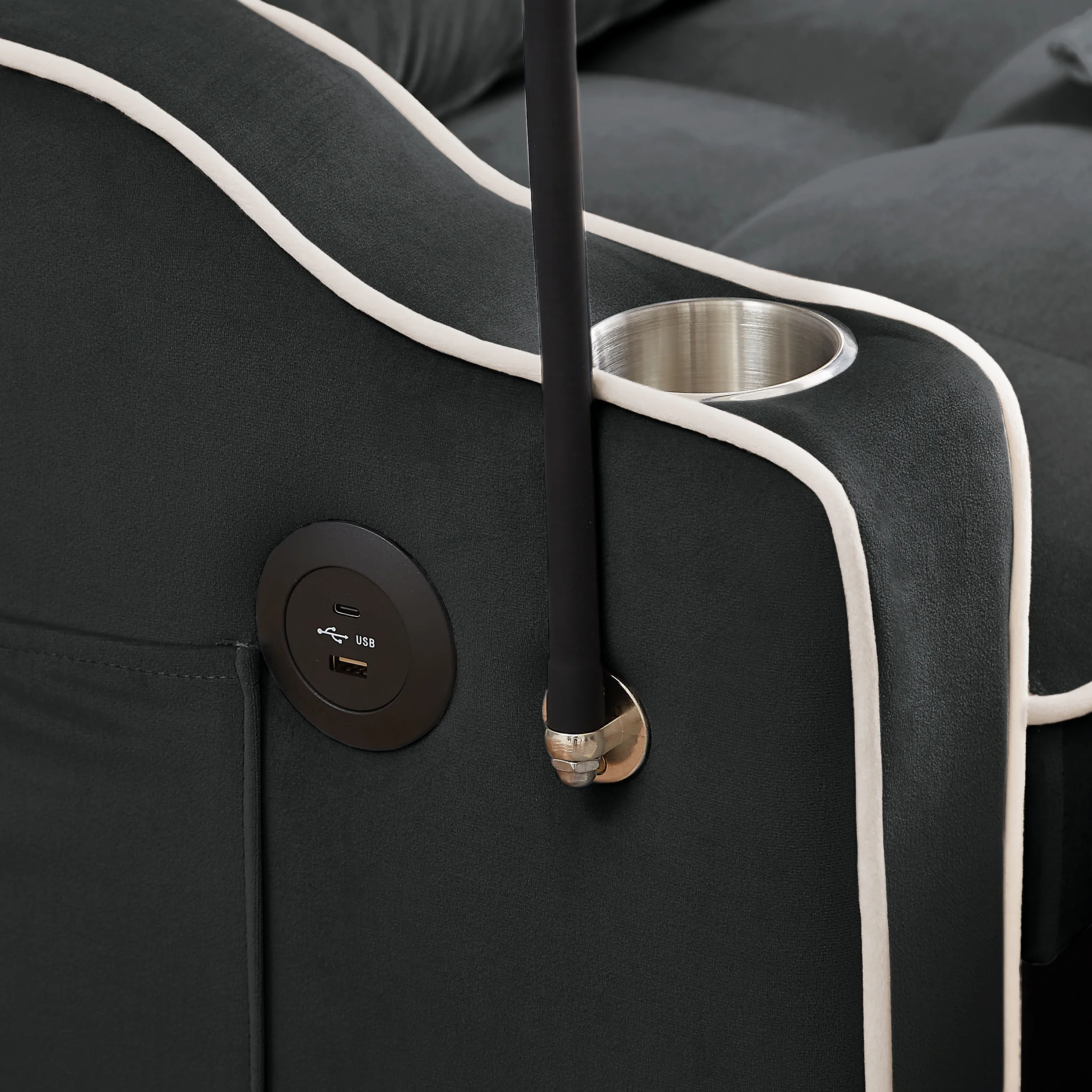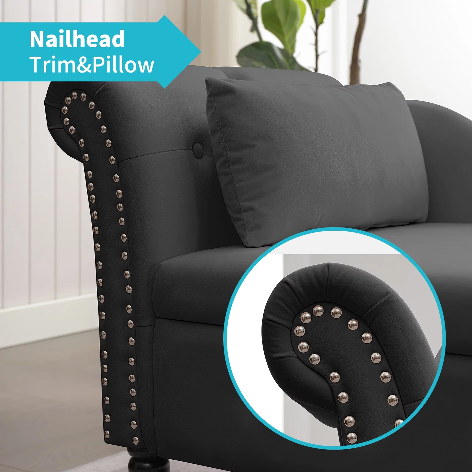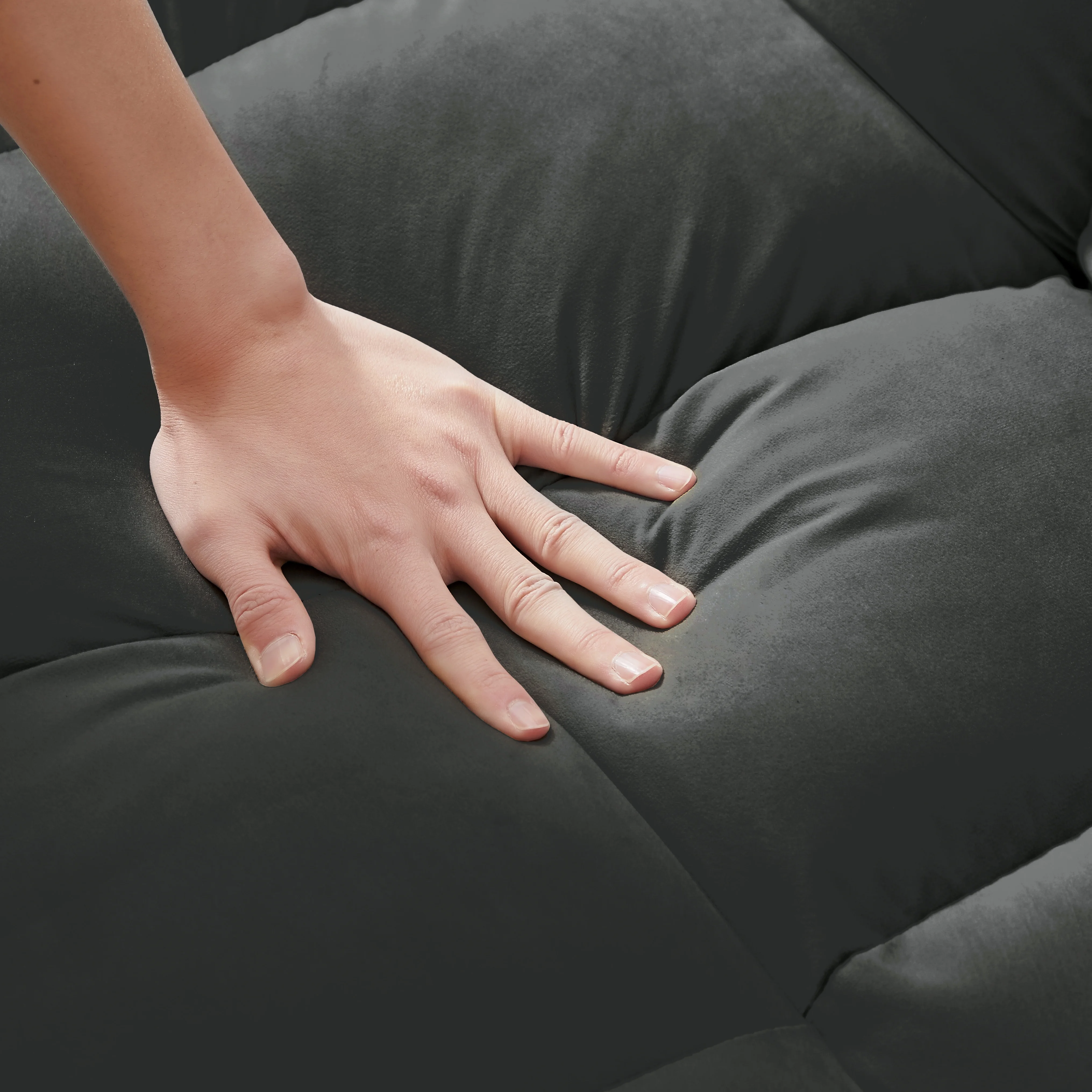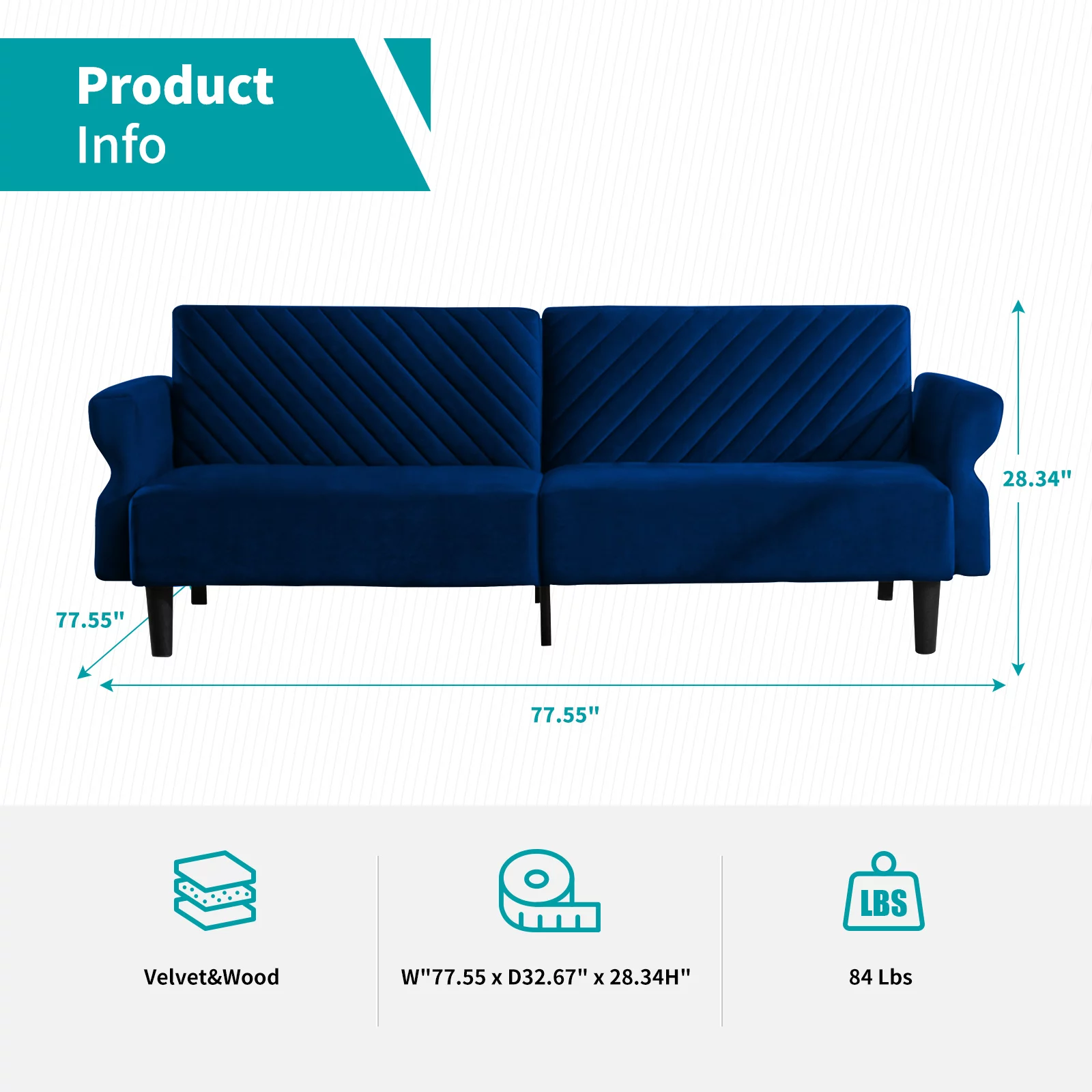 BALUS Modern Sofa Bed with Adjustable Backrest, Strips Tufted Loveseat, Velvet Fabric, Navy