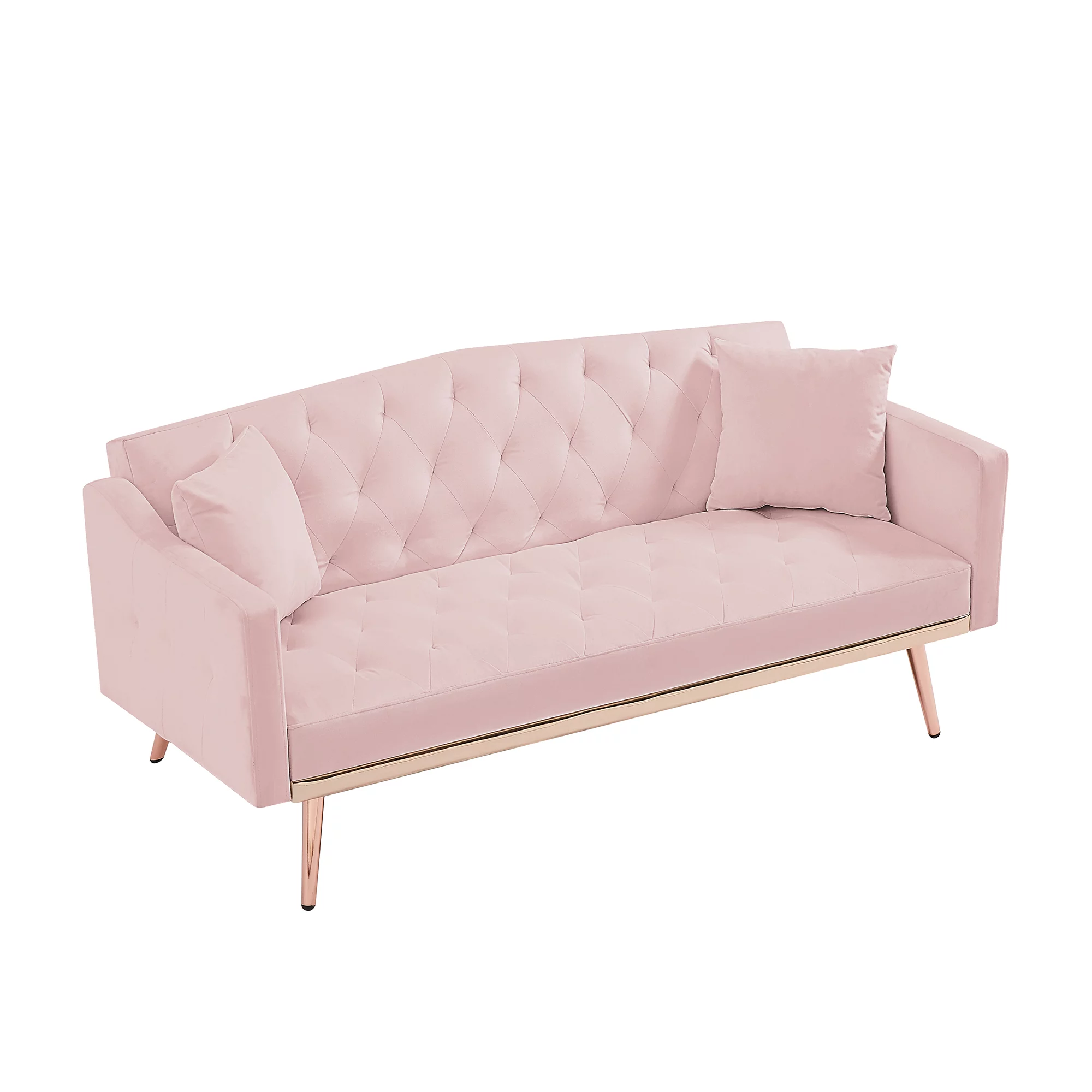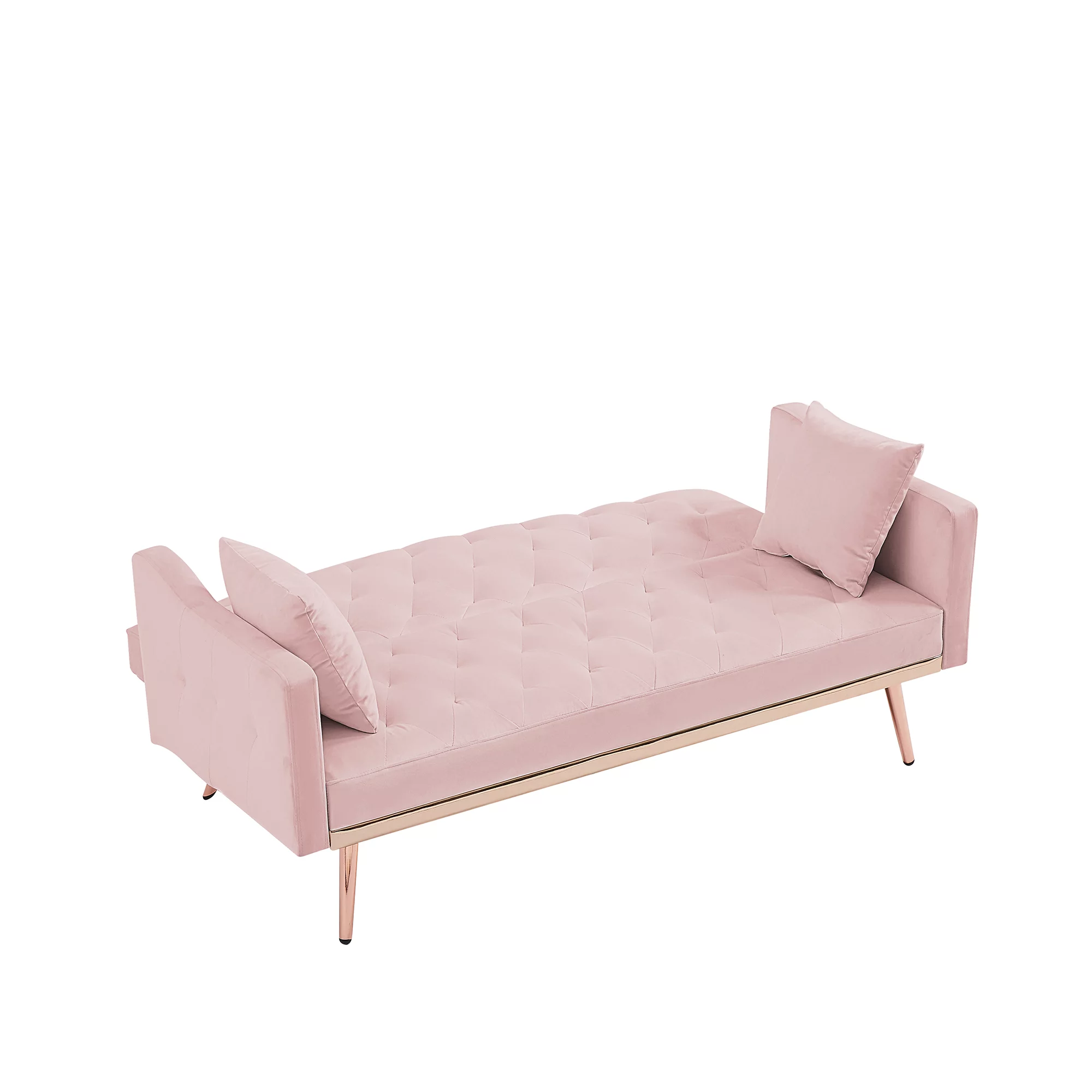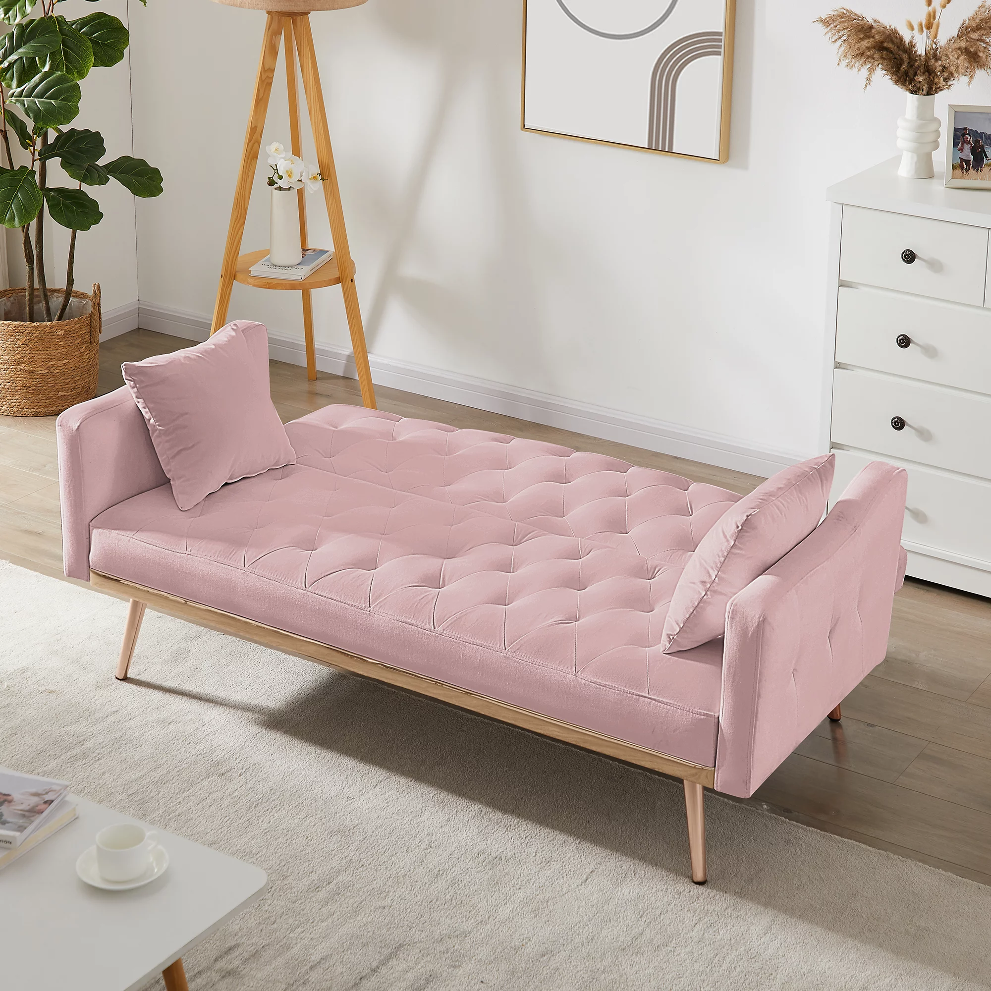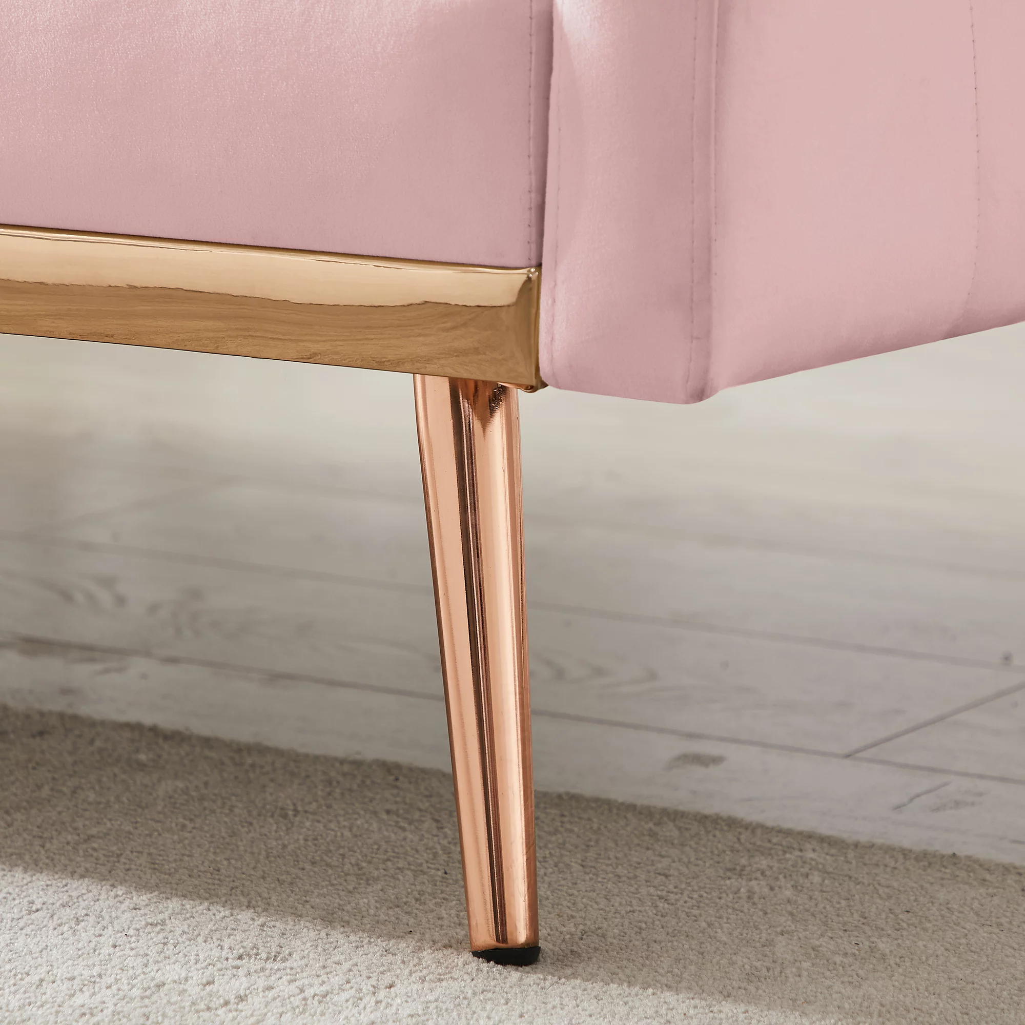 Modern Pink Velvet Sofa Bed Sleek and Minimalist Sofa Bed with Adjustable Backrest