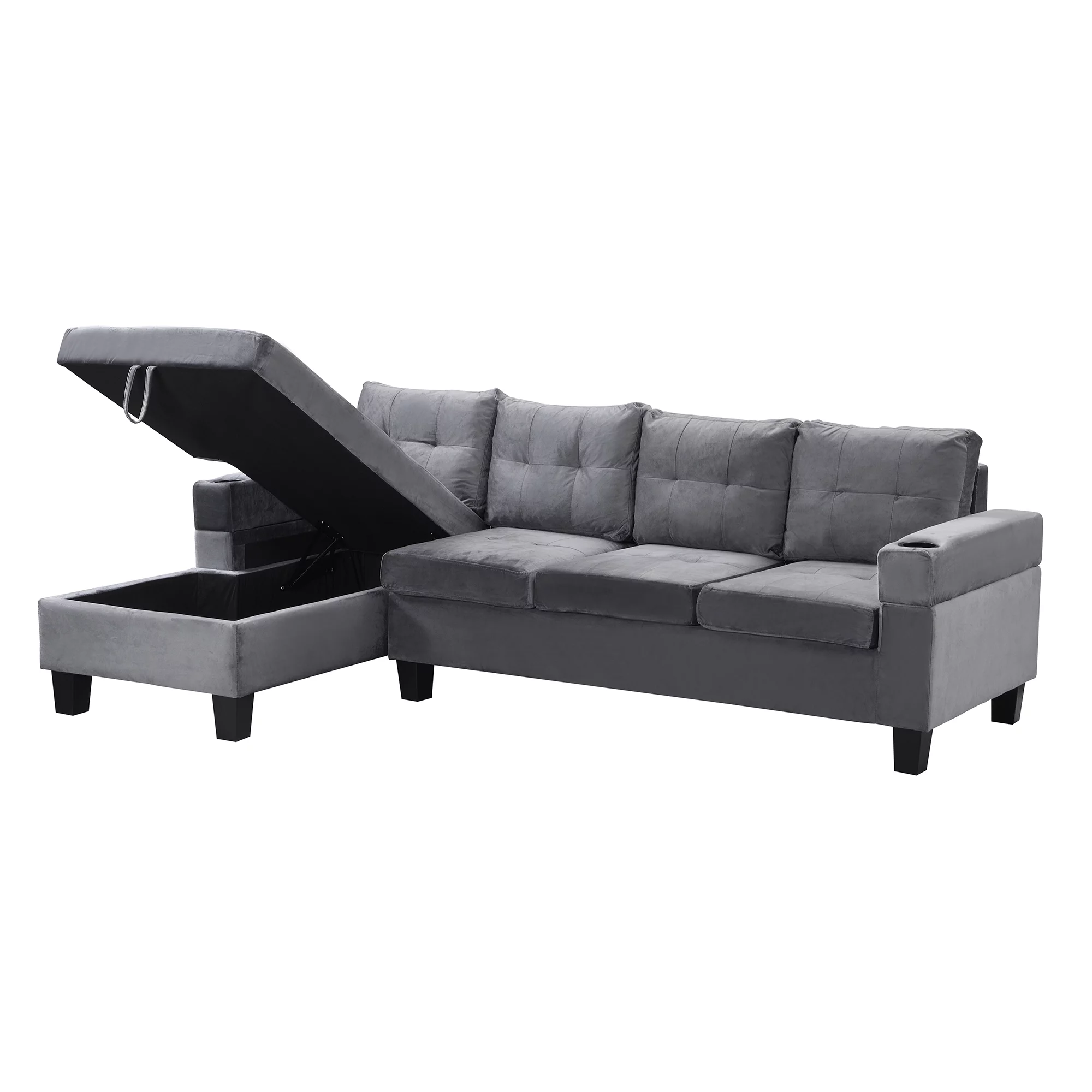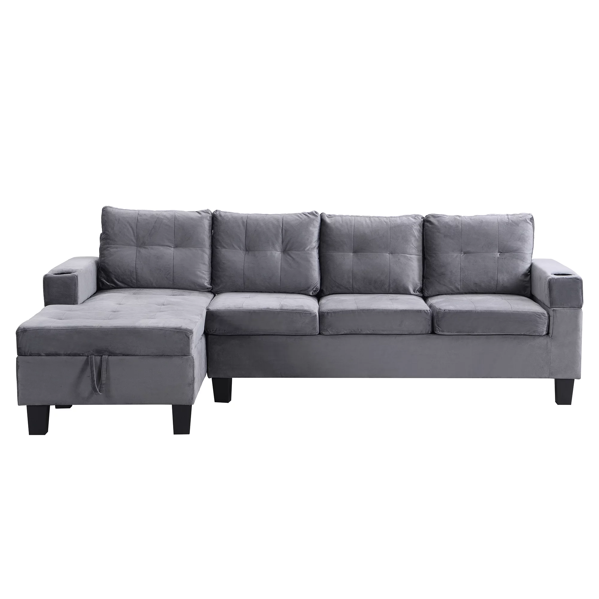 Convertible Sectional Sofa Couch with Storage Ottoman, L-Shaped Wide Reversible Chaise with Linen Fabric(Deep Grey)