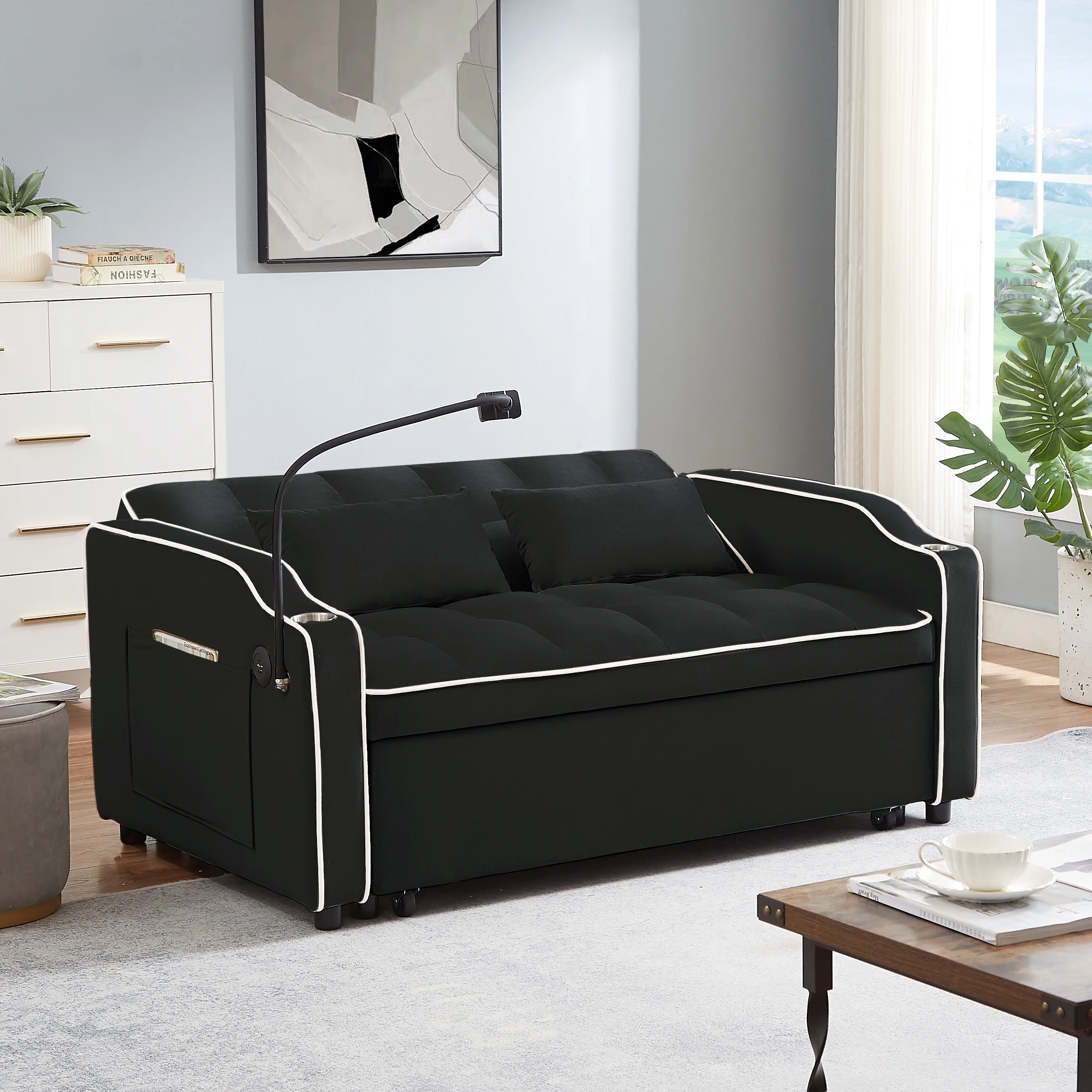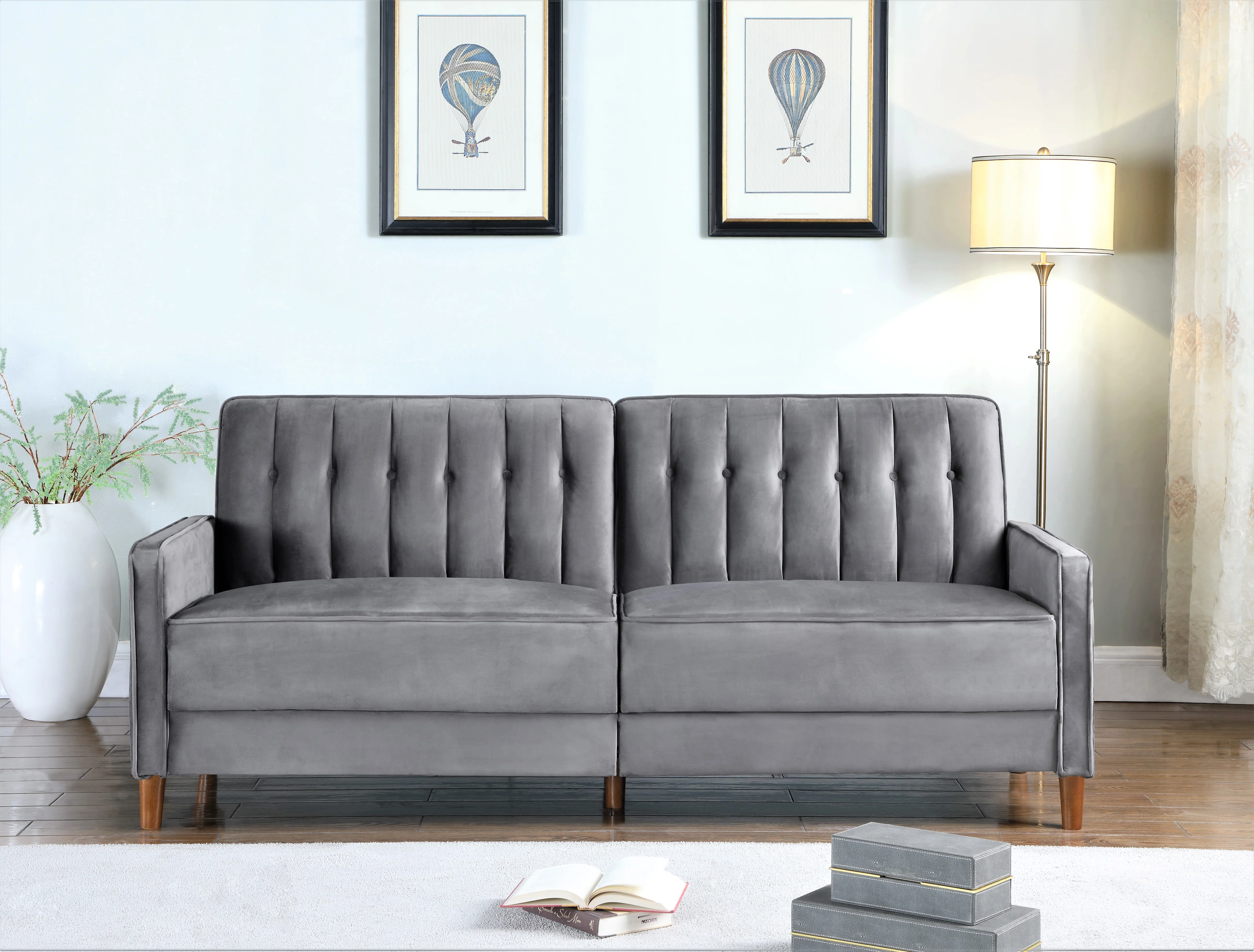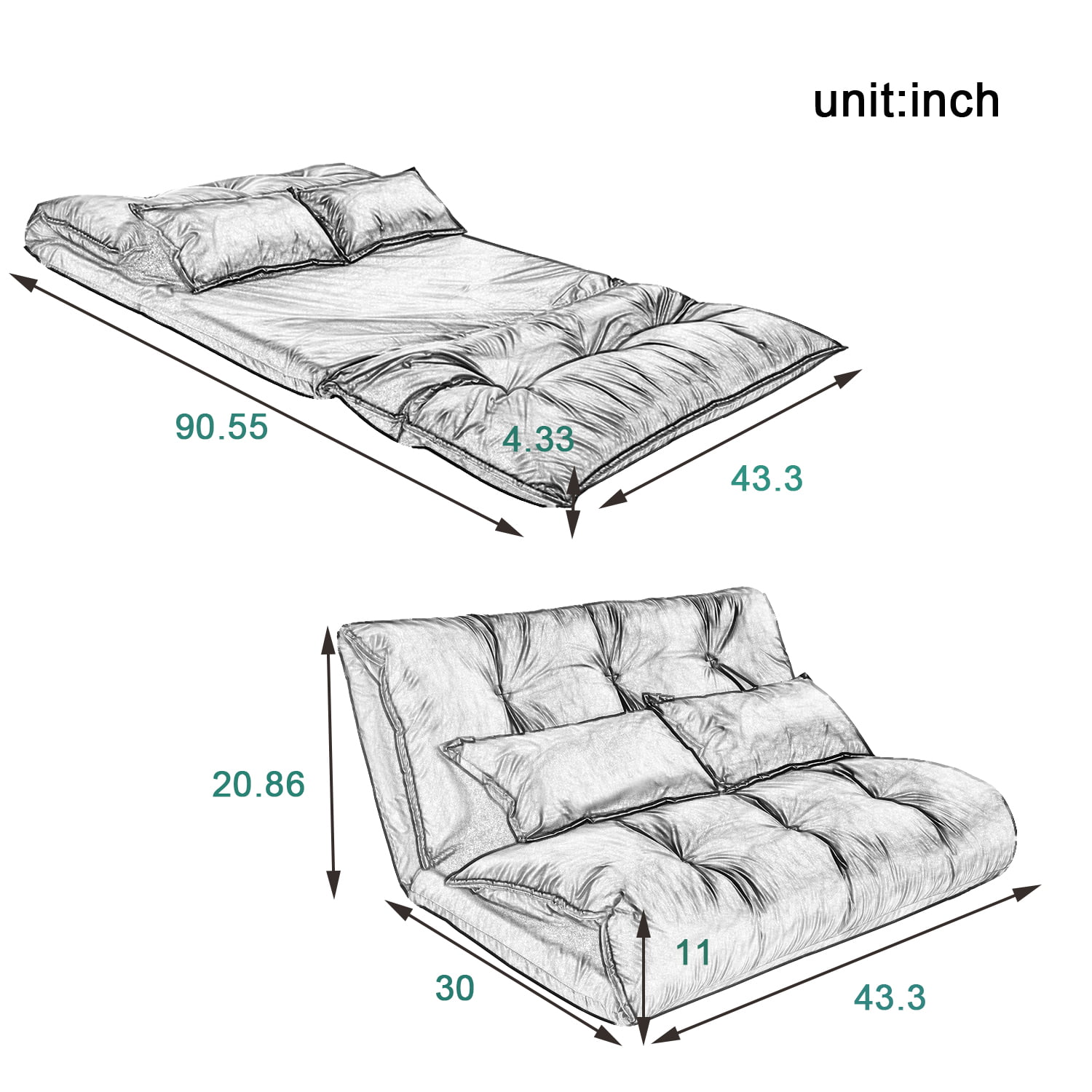 Convertible Futon Sofa Bed with Two Pillows, Modern Upholstered Sleeper Sofa Couch