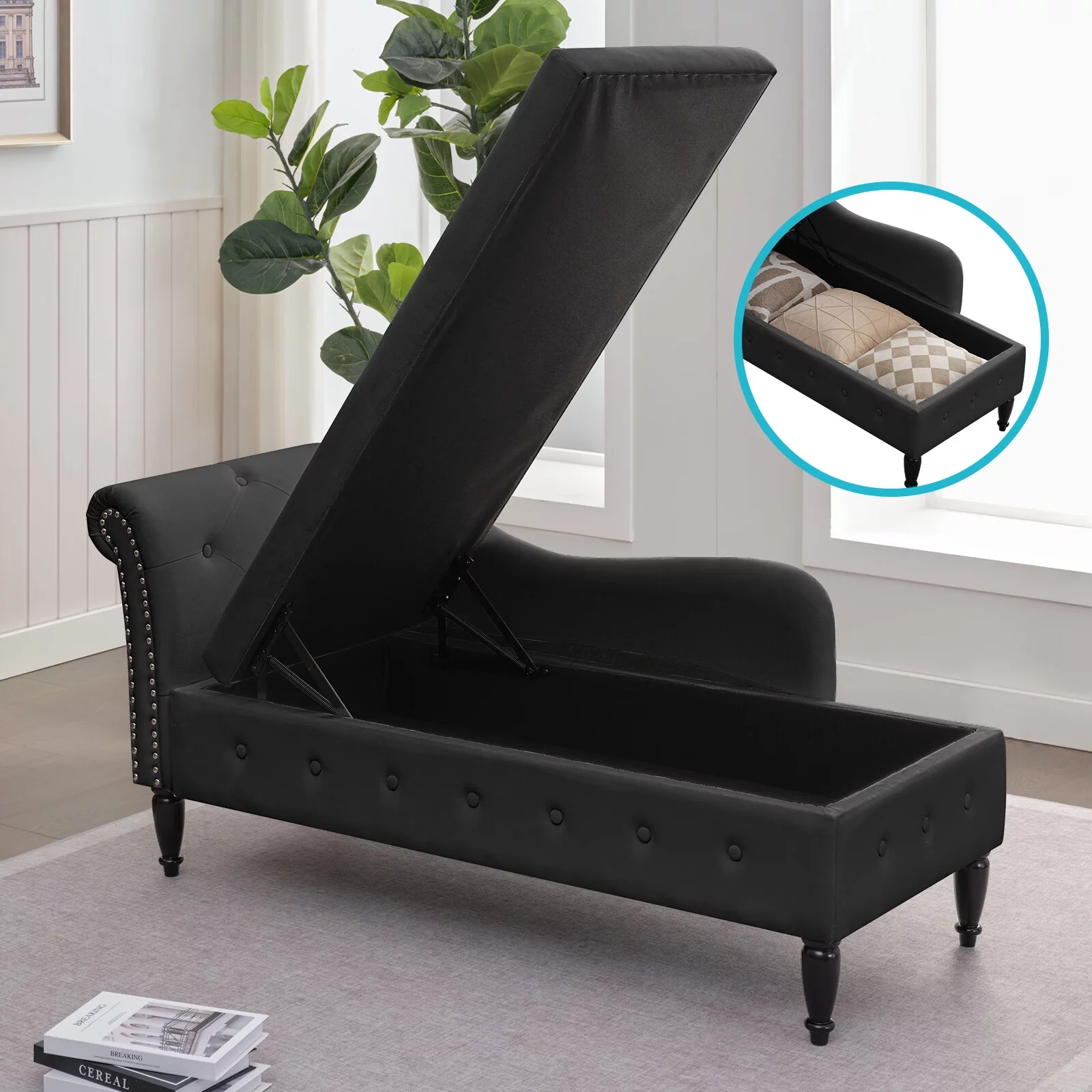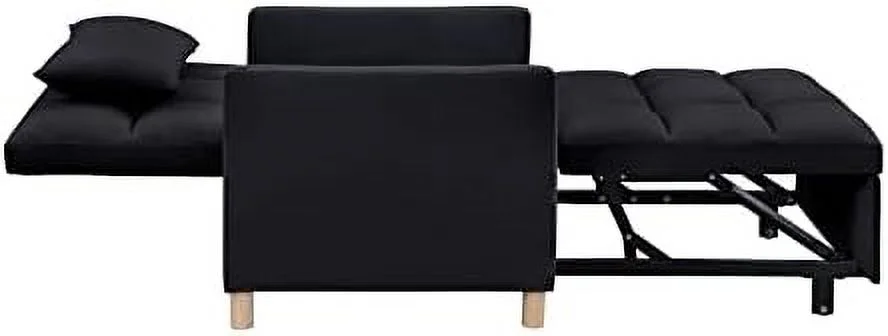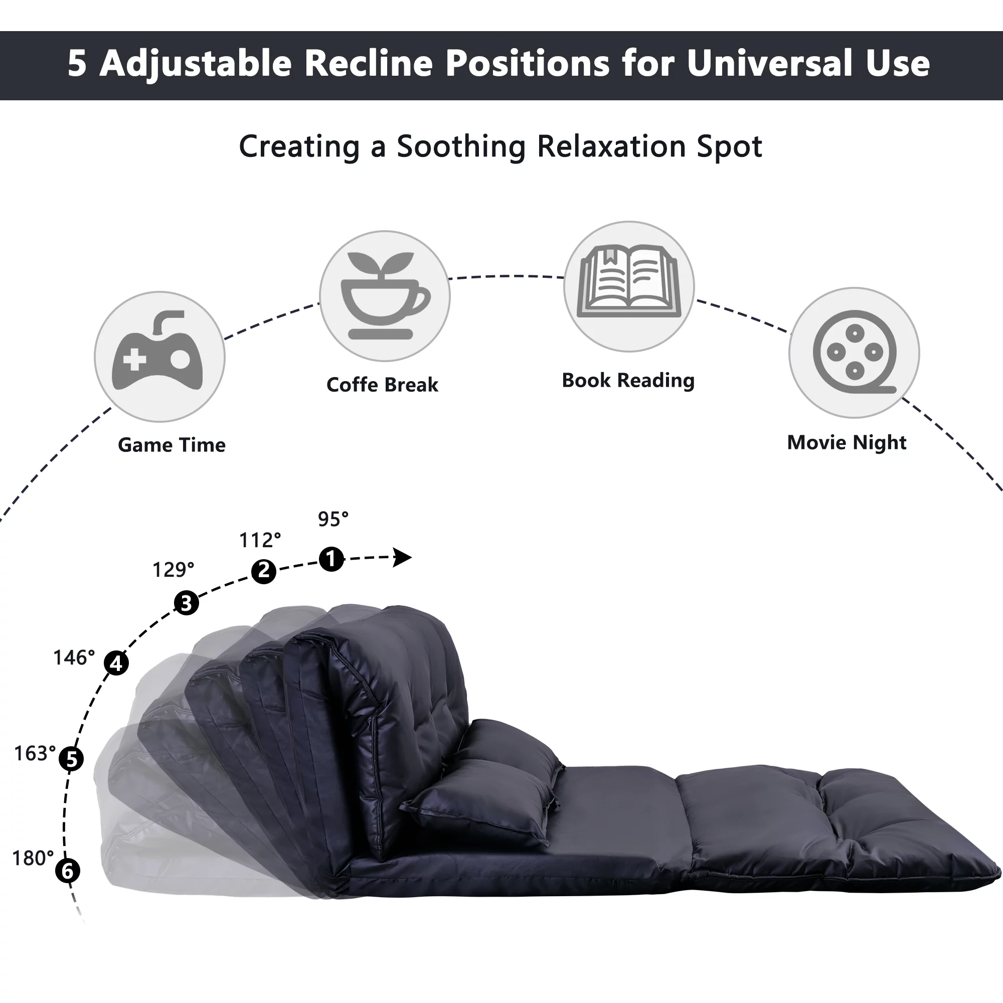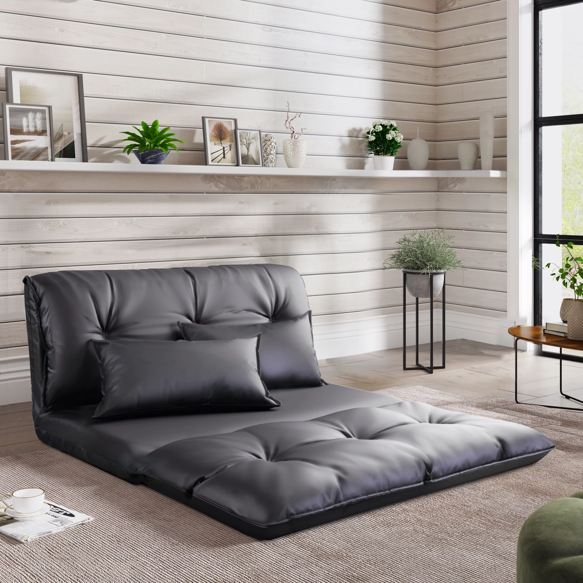 Nestfair Black PU Leather Sofa Bed Adjustable Folding Futon with 2-Pillows