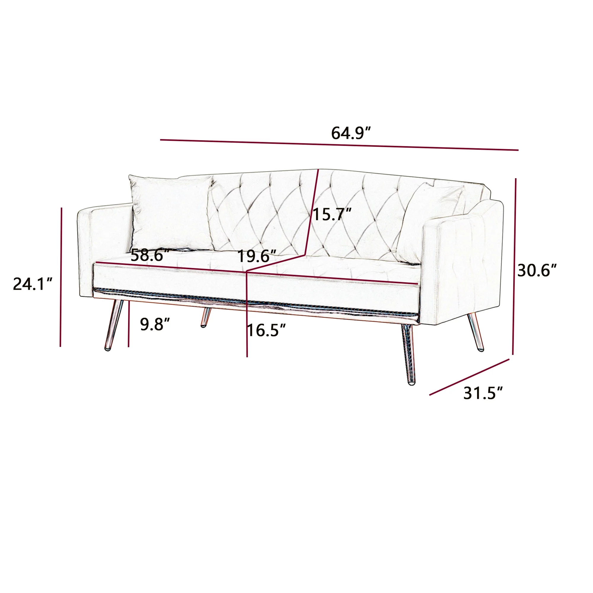 CoSoTower Modern Velvet Sofa Couch Bed With Armrests And 2 Pillows For Living Room And Bedroom, White
