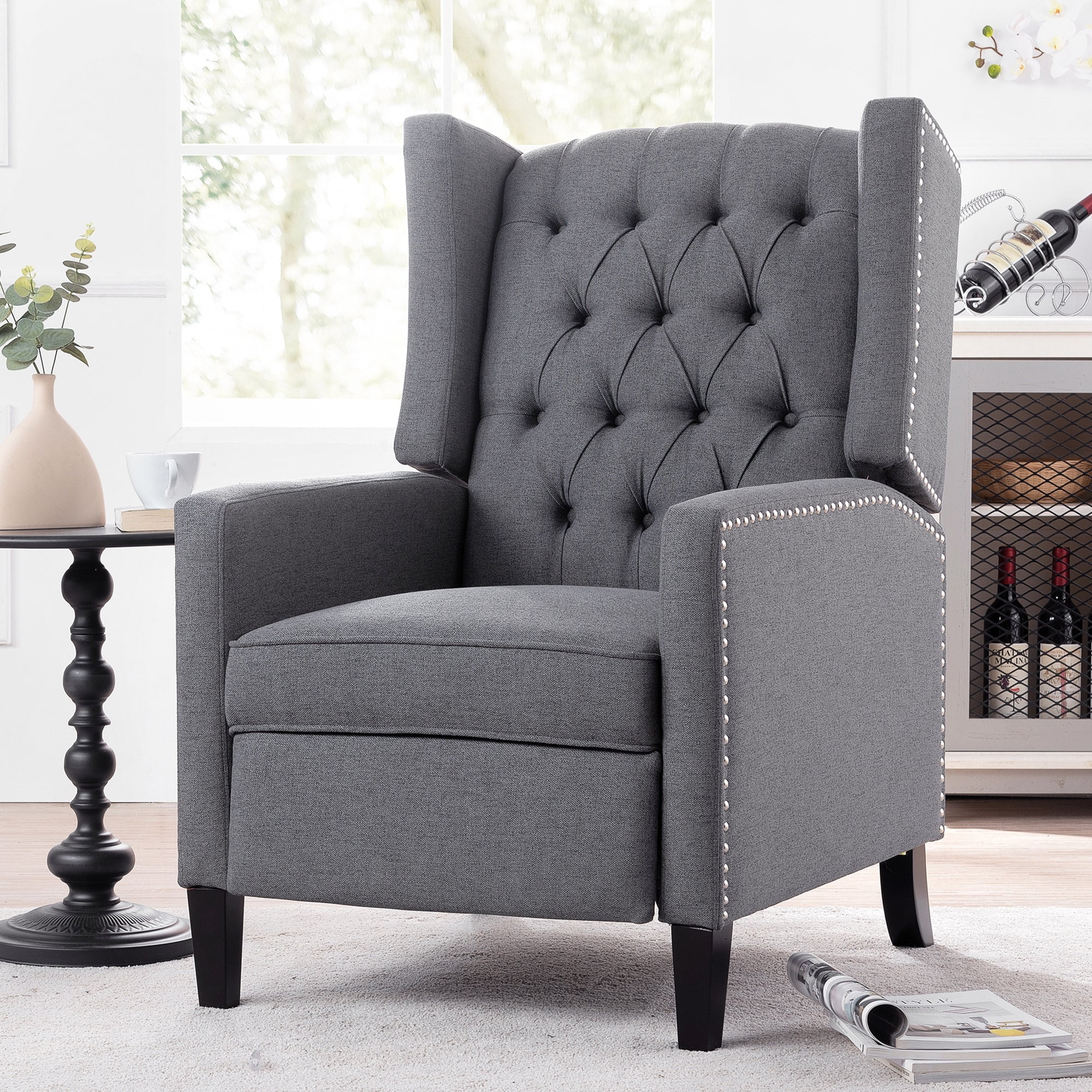 Grey Manual Wing Chair Recliner with Adjustable Chaise Longue and Solid Wood Frame