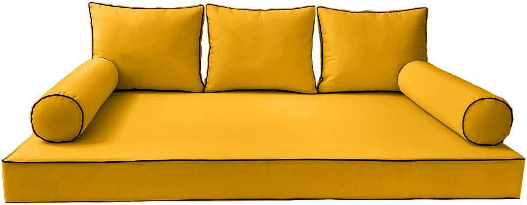 Style3 6PC Contrast Pipe Outdoor Daybed Mattress Bolster Pillow Fitted Sheet Cover Full Size AD108
