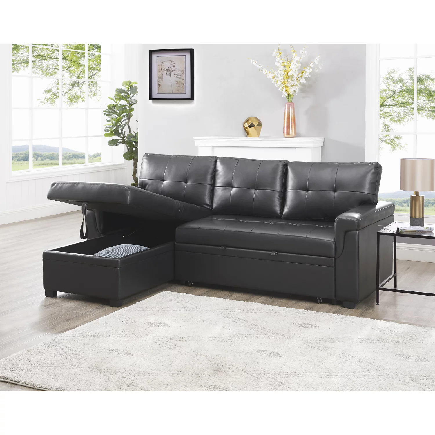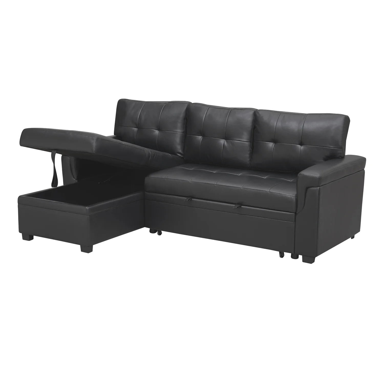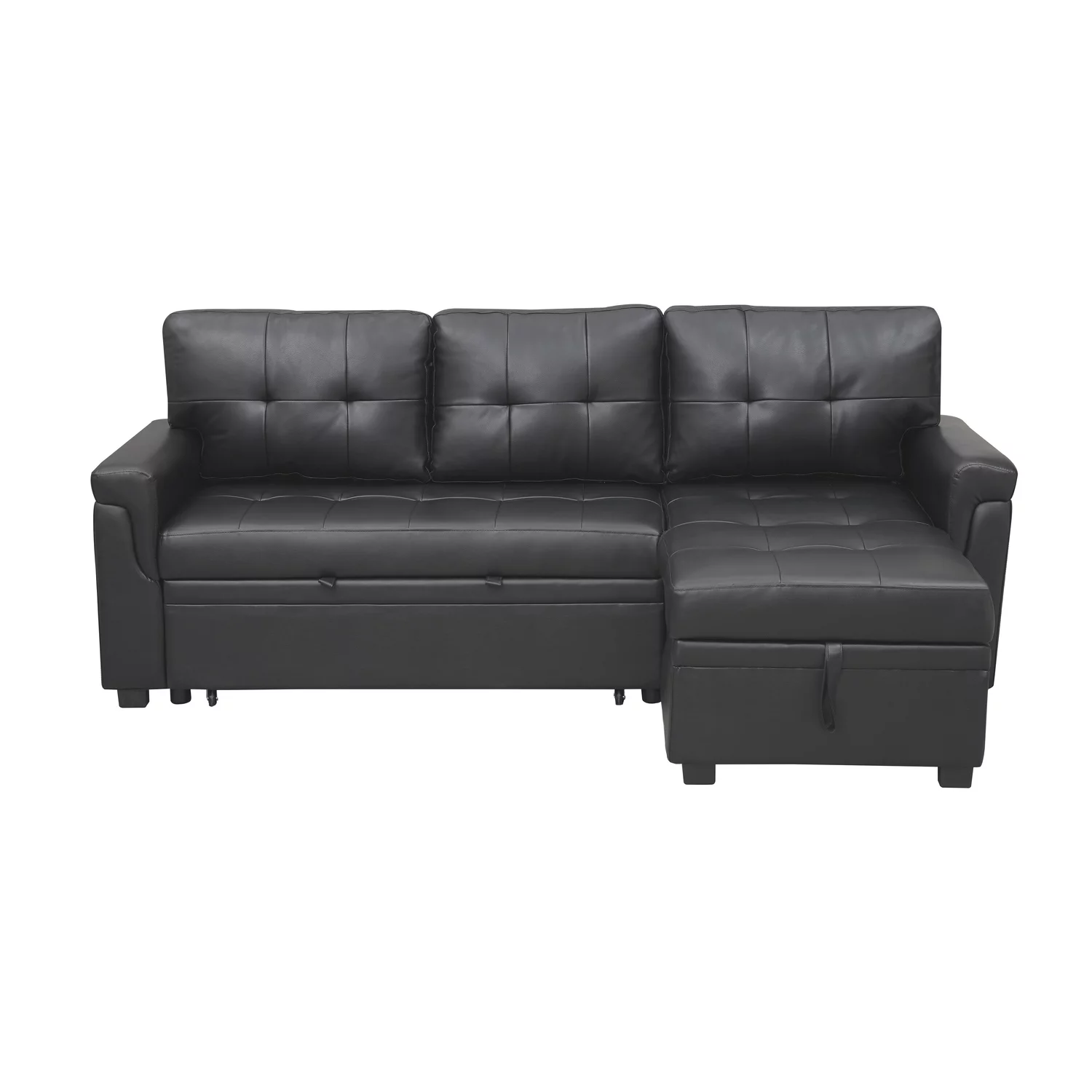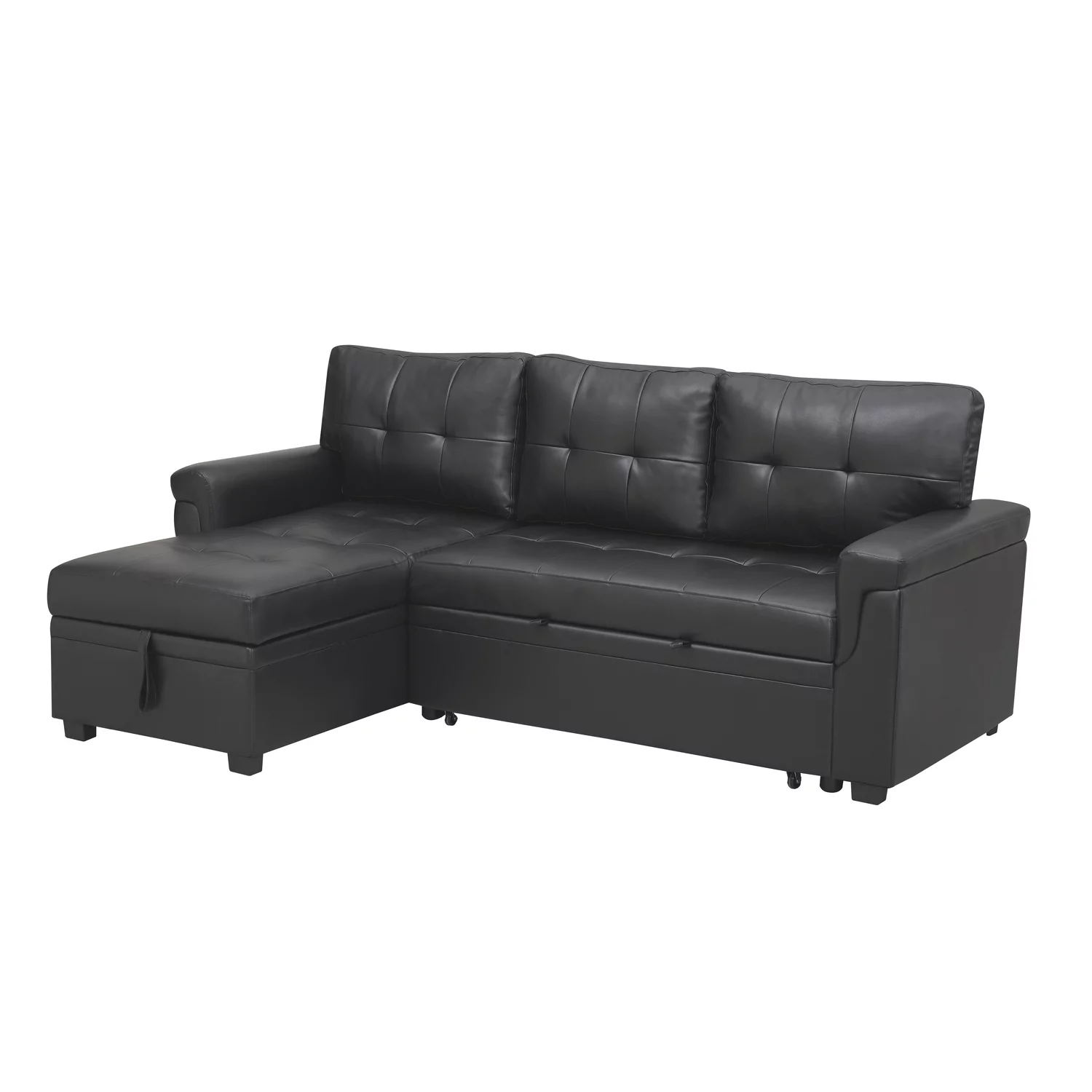 Laura Reversible Sleeper Sectional Sofa Storage Chaise by Home Emporium-Color:Black,Fabric:Air Leather