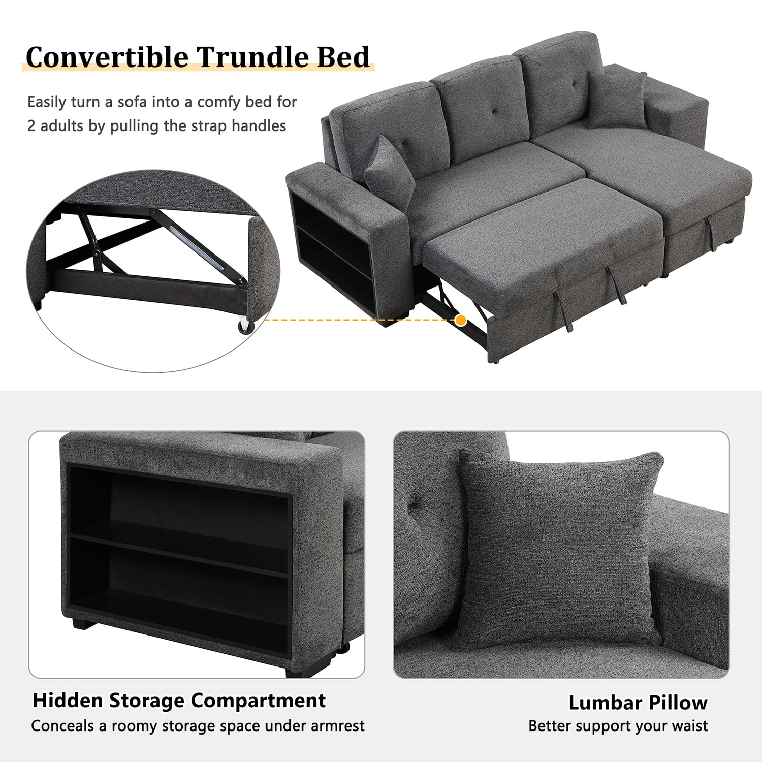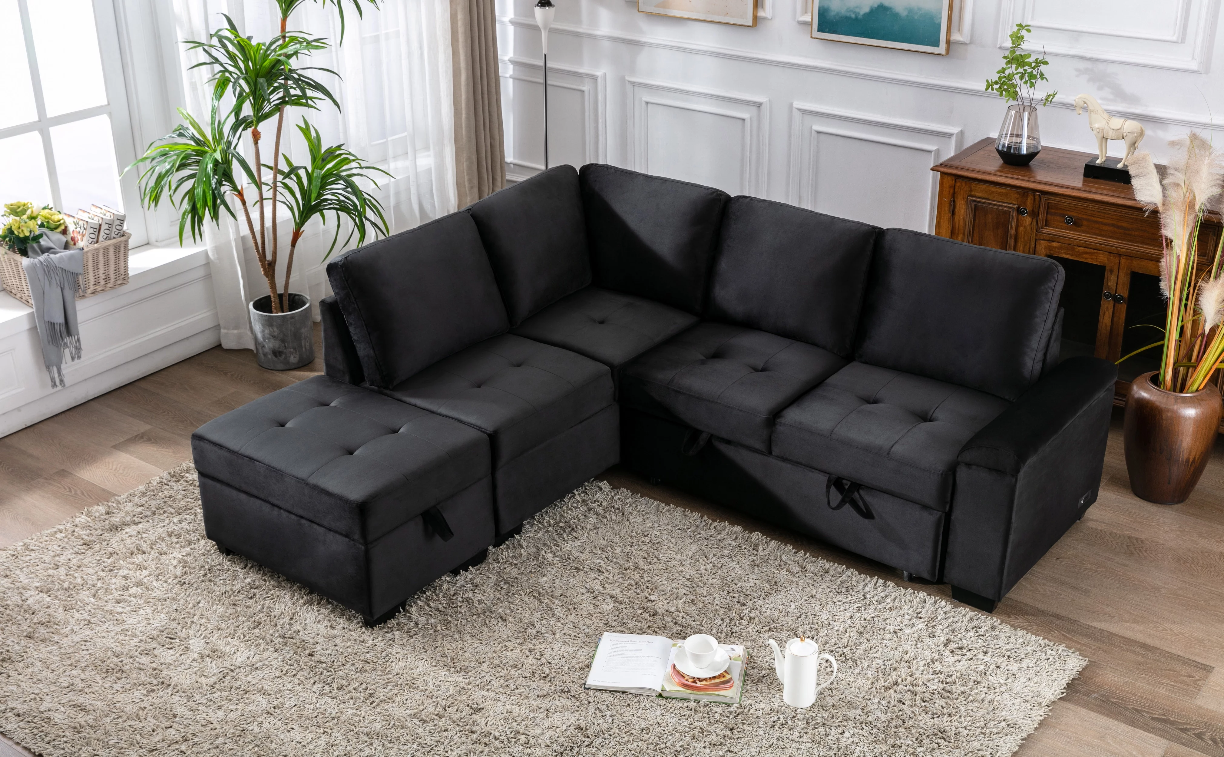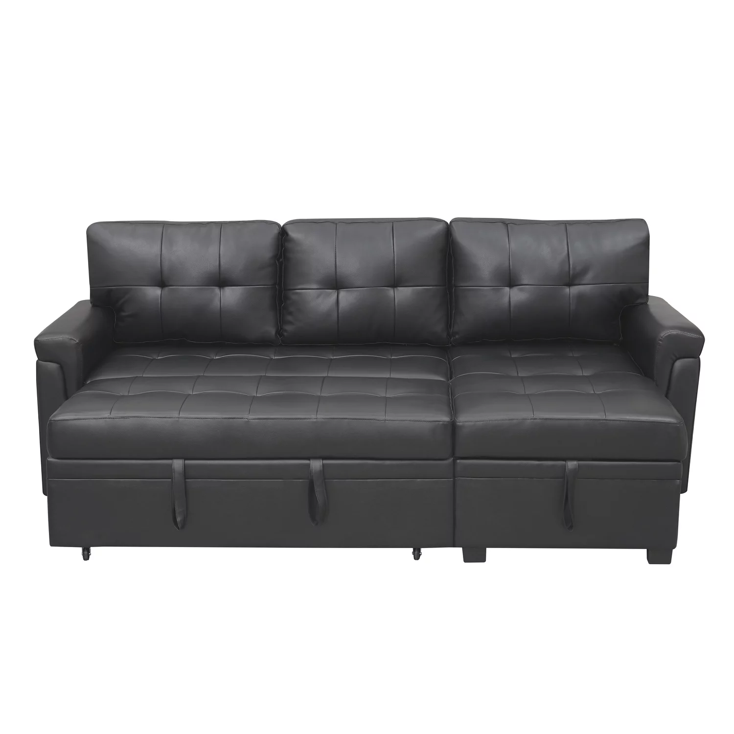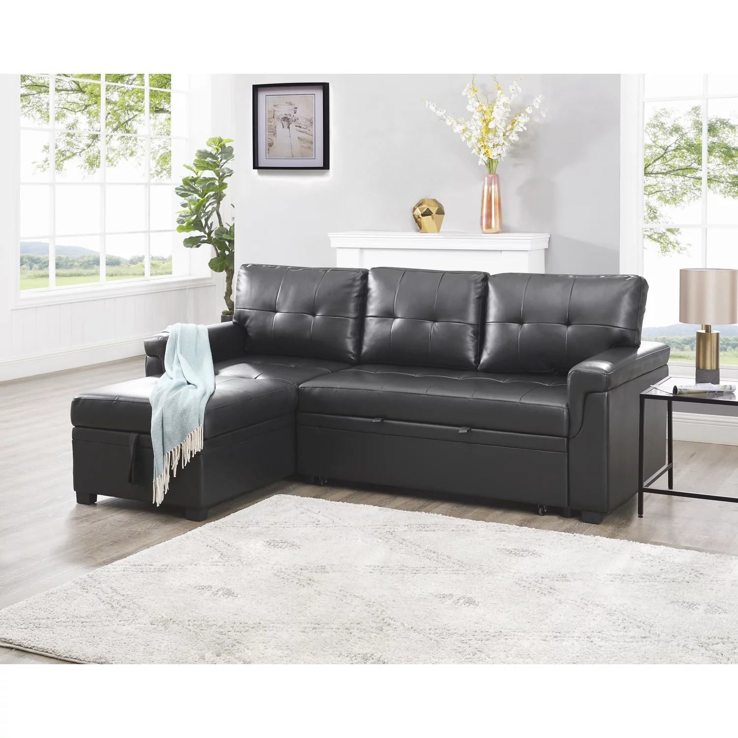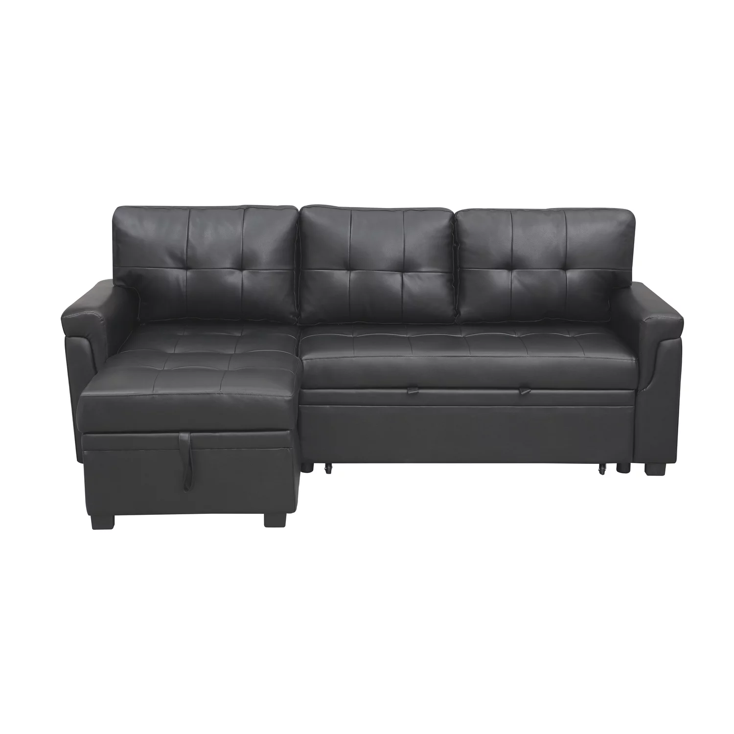 Laura Reversible Sleeper Sectional Sofa Storage Chaise by Home Emporium-Color:Black,Fabric:Air Leather