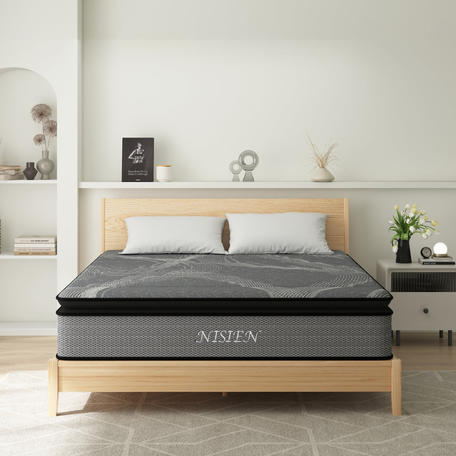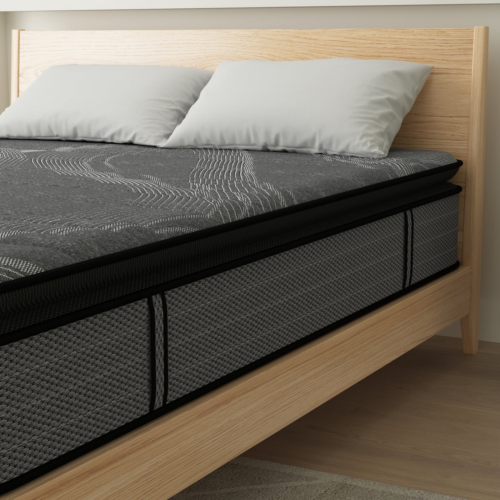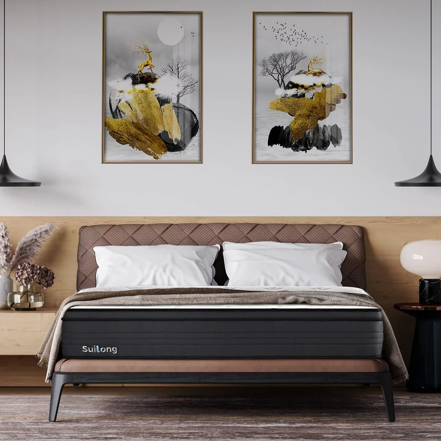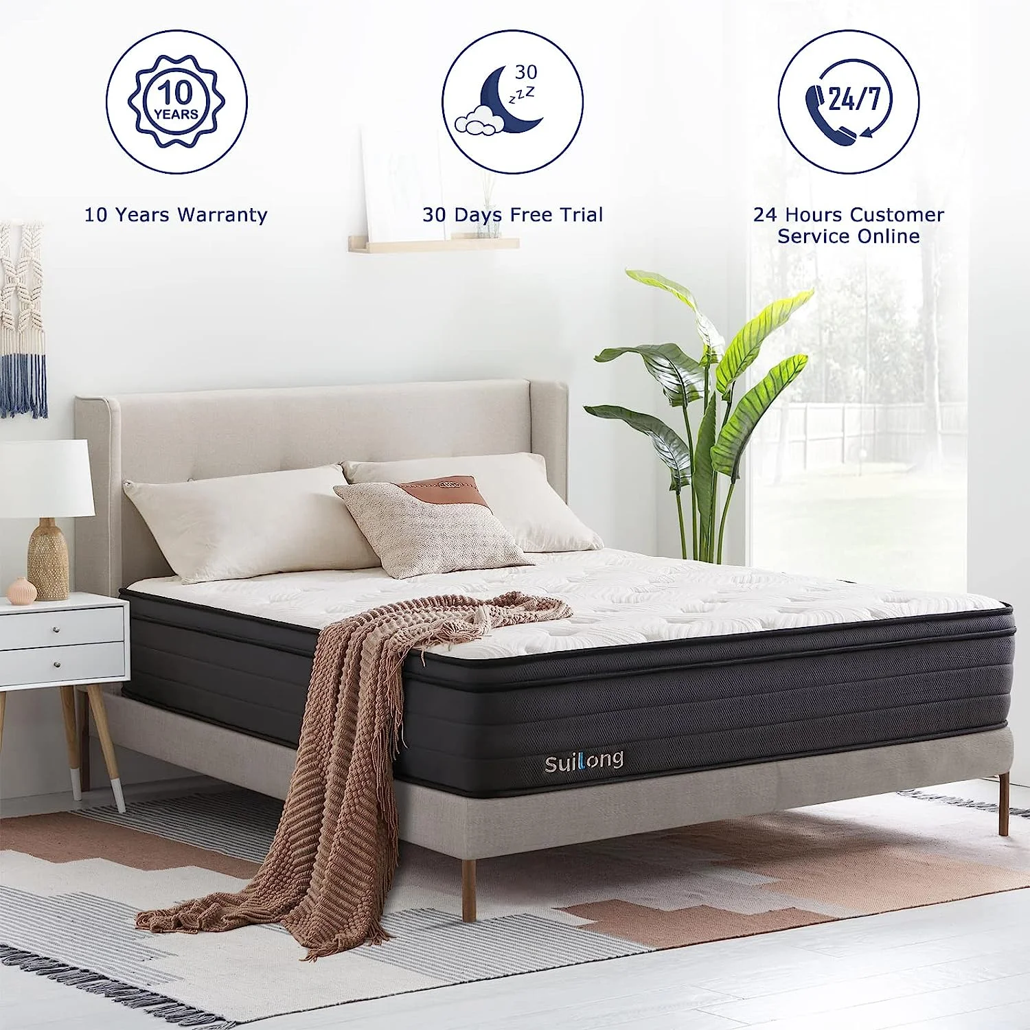 SUI LONG 12" Queen Size Mattress, Hybrid Mattress in a Box, Cooling-Gel Memory Foam and Innerspring, Medium Firm