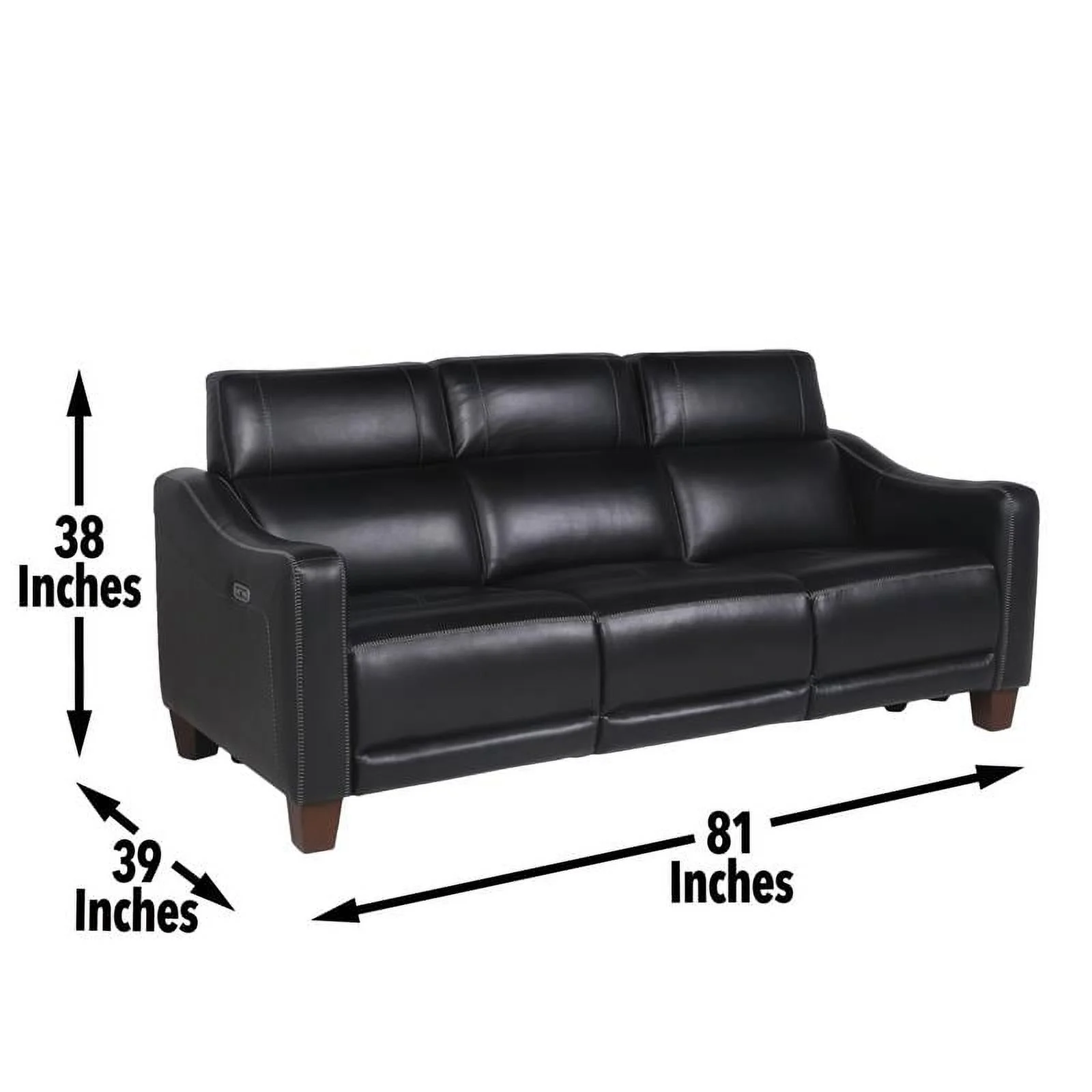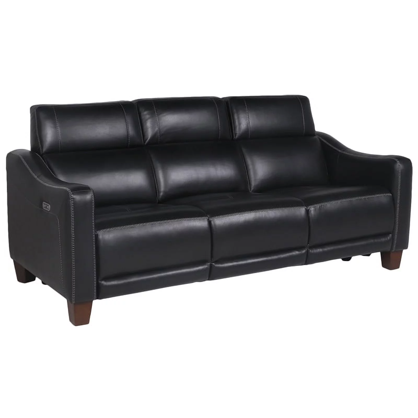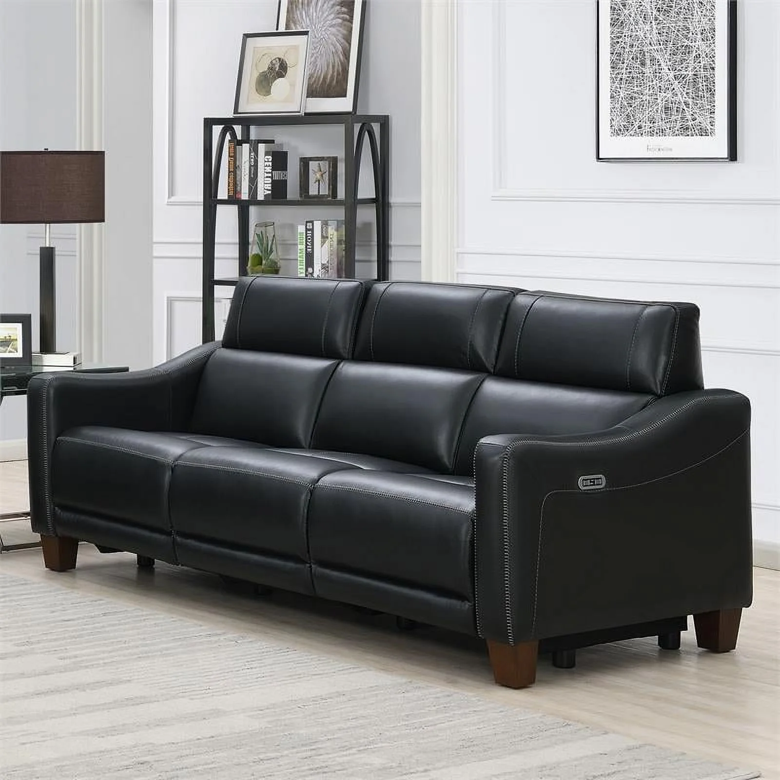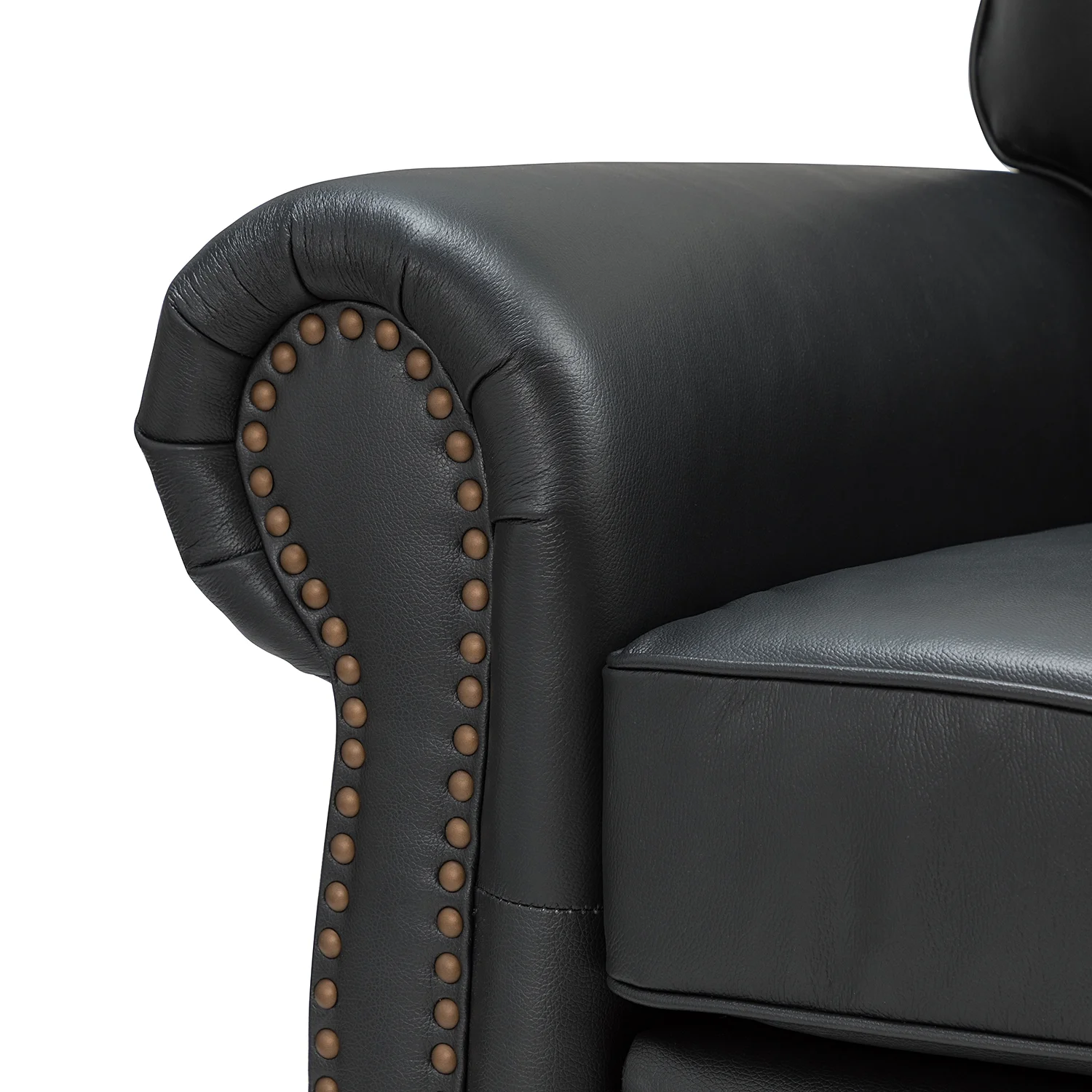Genuine Leather Sofa with Rolled Arms Nailhead Trims Living Room Reading Black