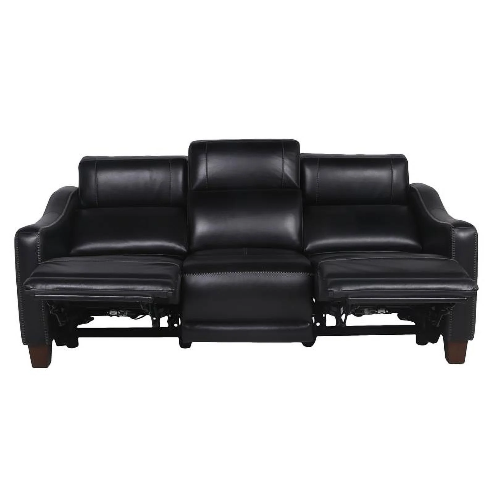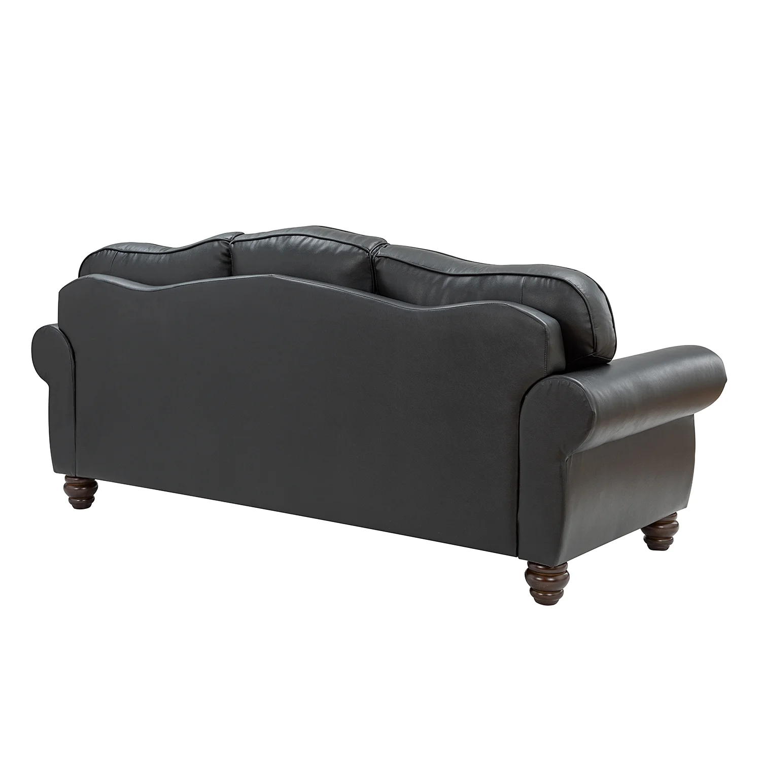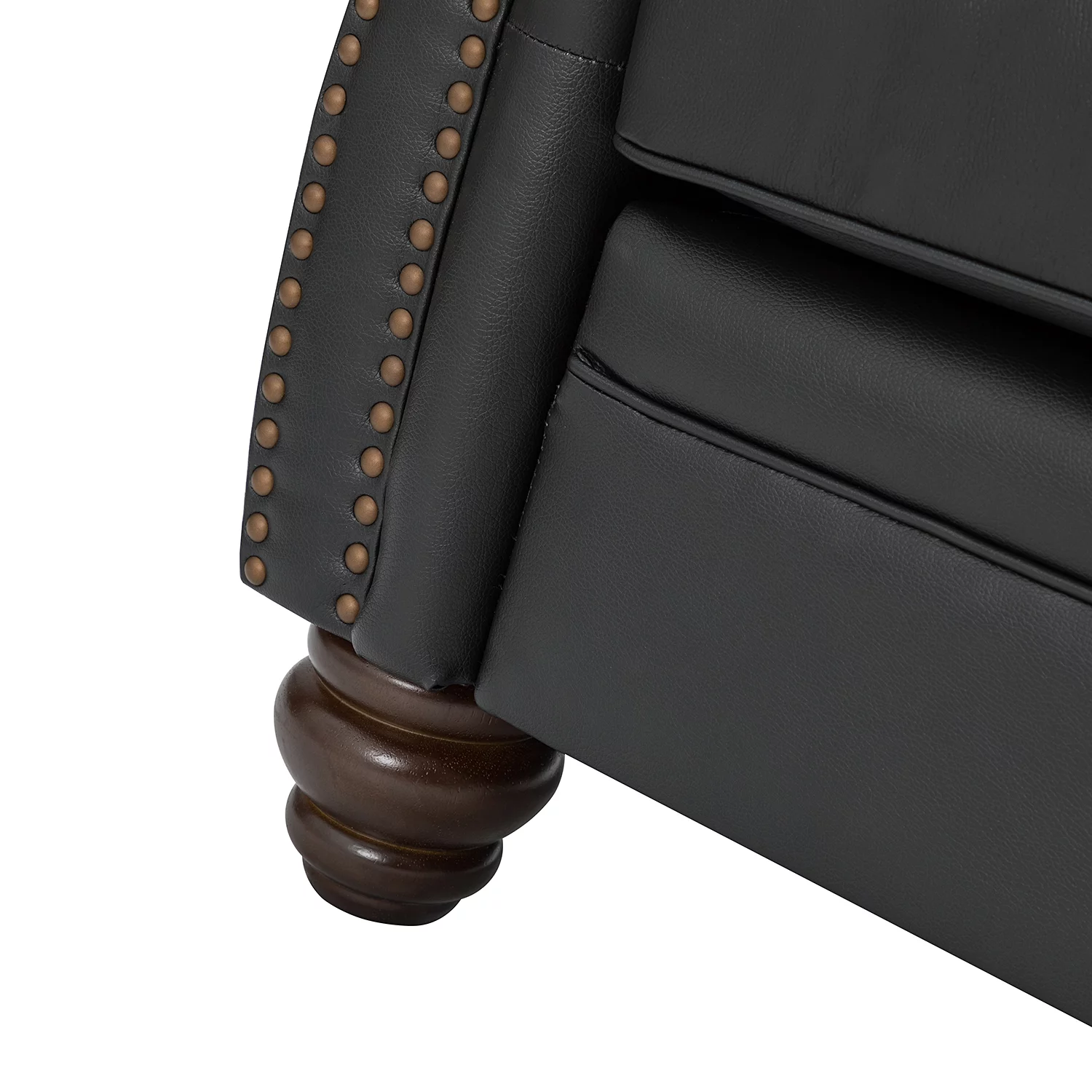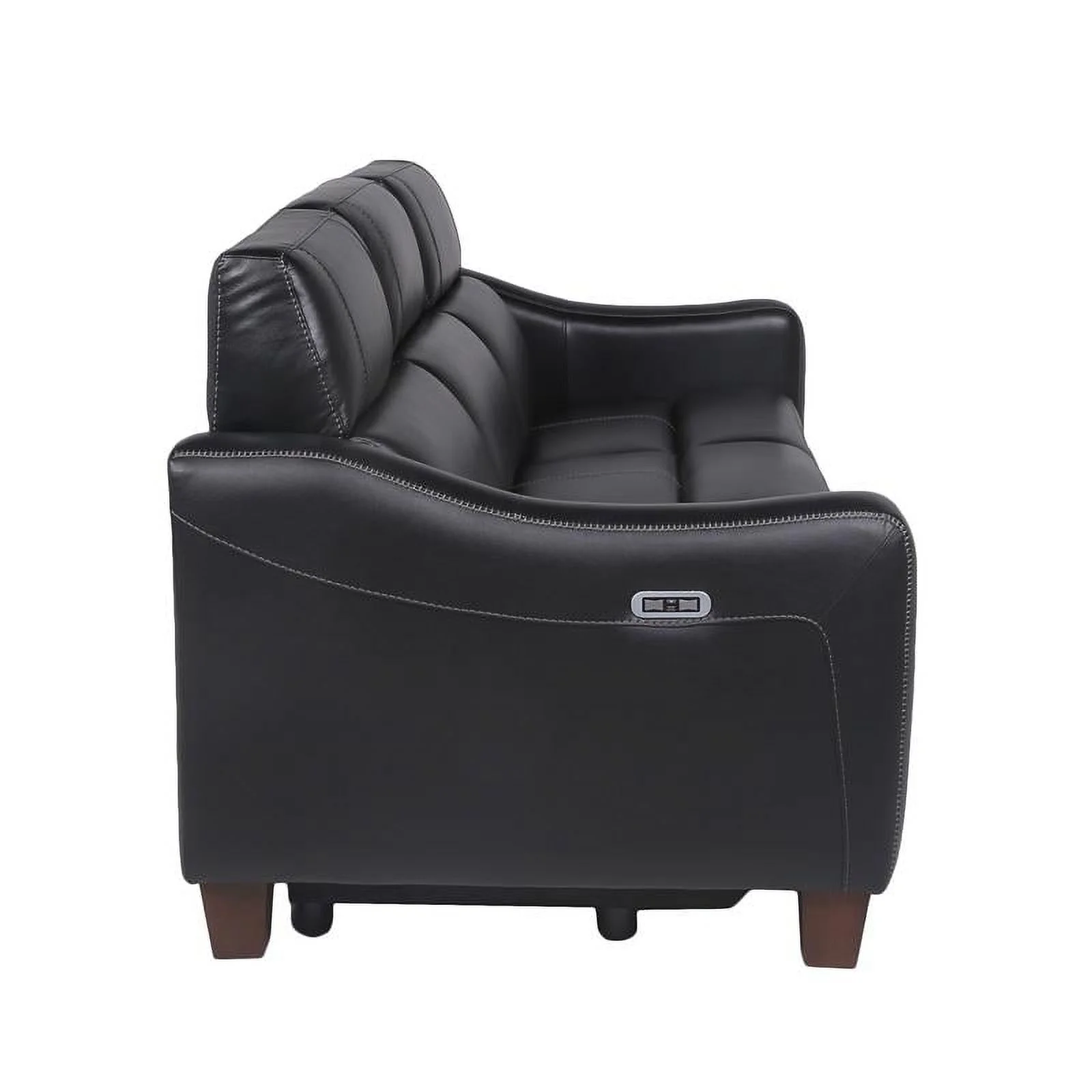 Genuine Leather Sofa with Rolled Arms Nailhead Trims Living Room Reading Black