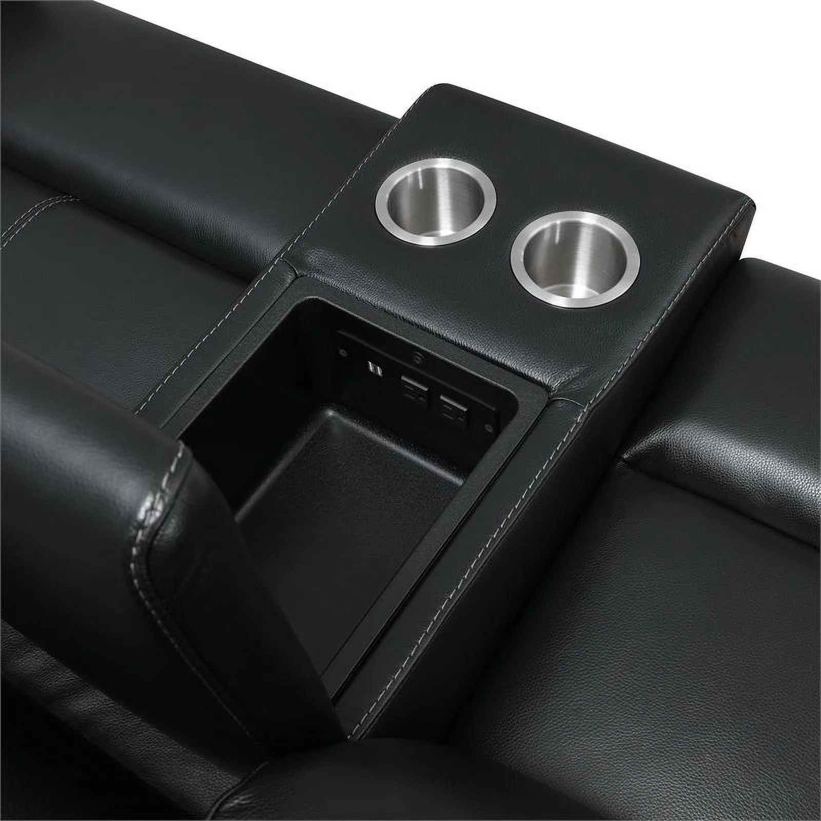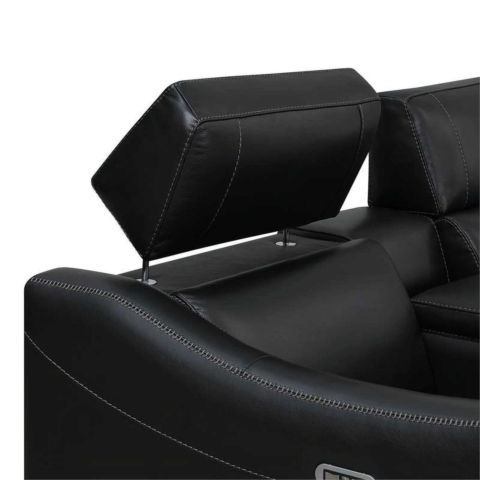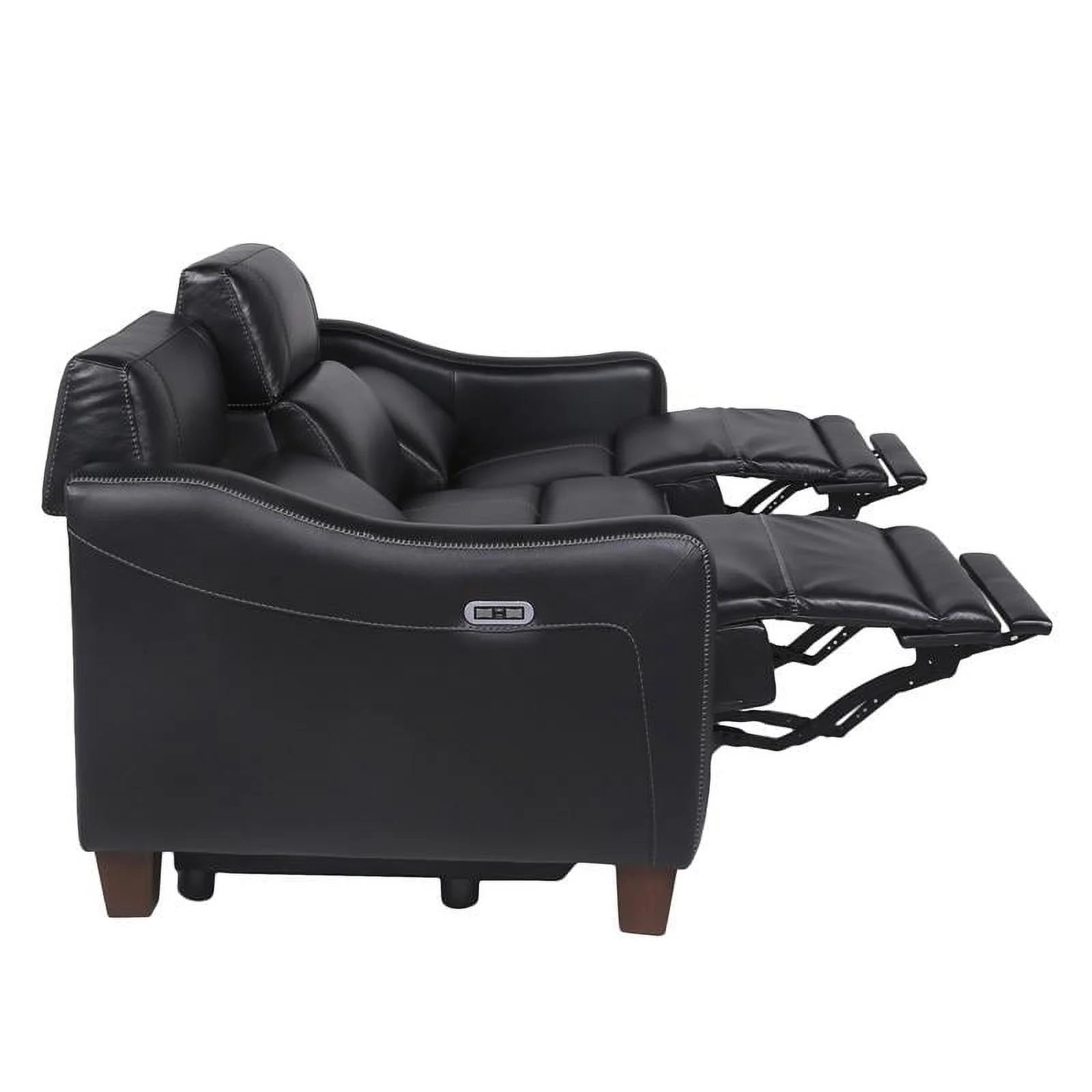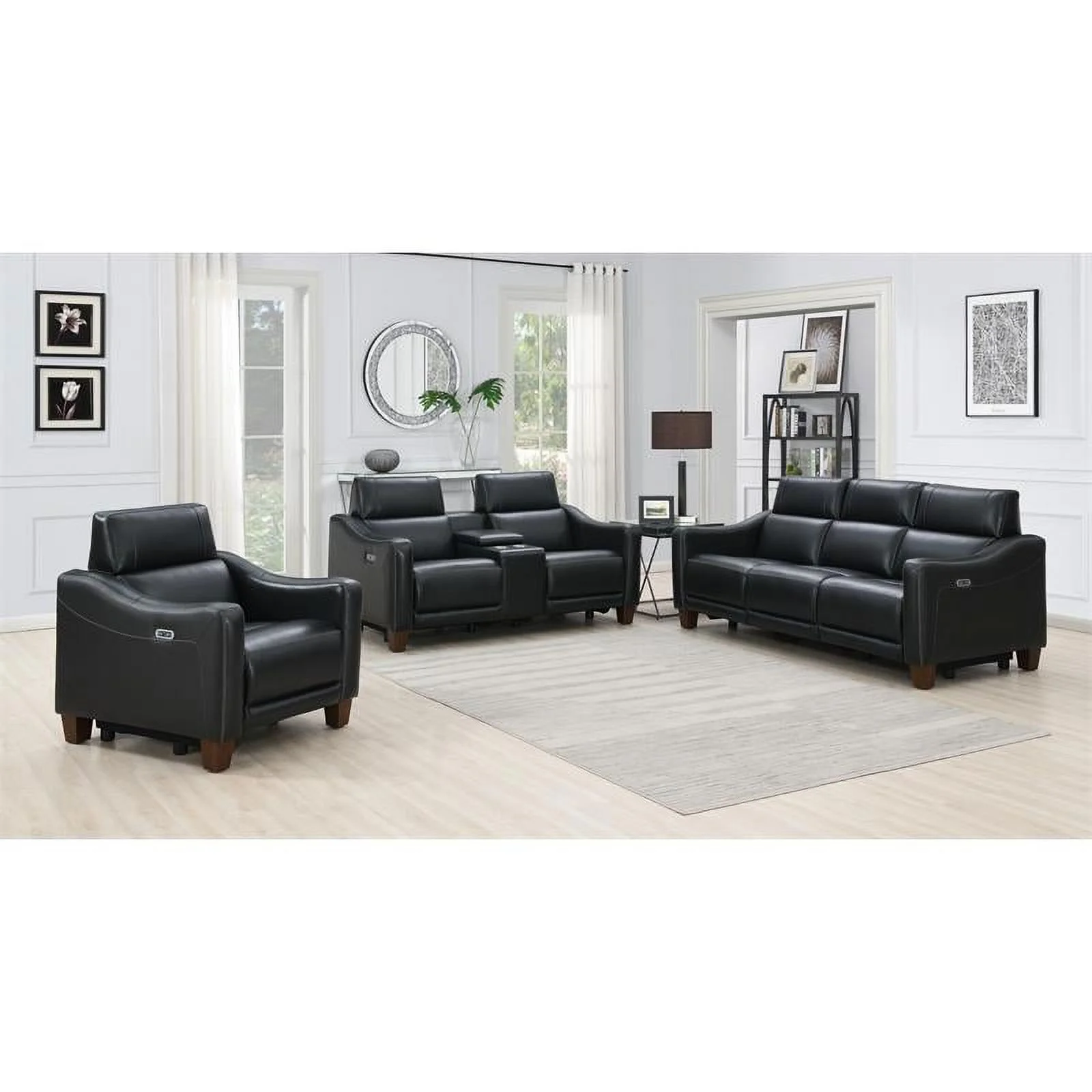 Genuine Leather Sofa with Rolled Arms Nailhead Trims Living Room Reading Black