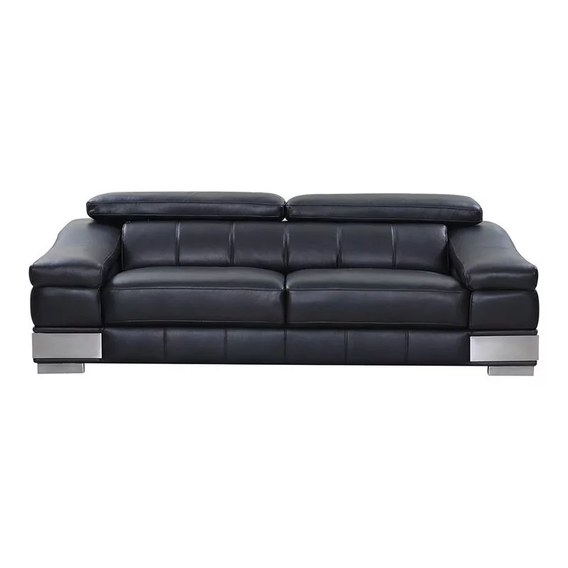 Titan Furnishings 92" Modern Genuine Italian Leather Sofa in Black