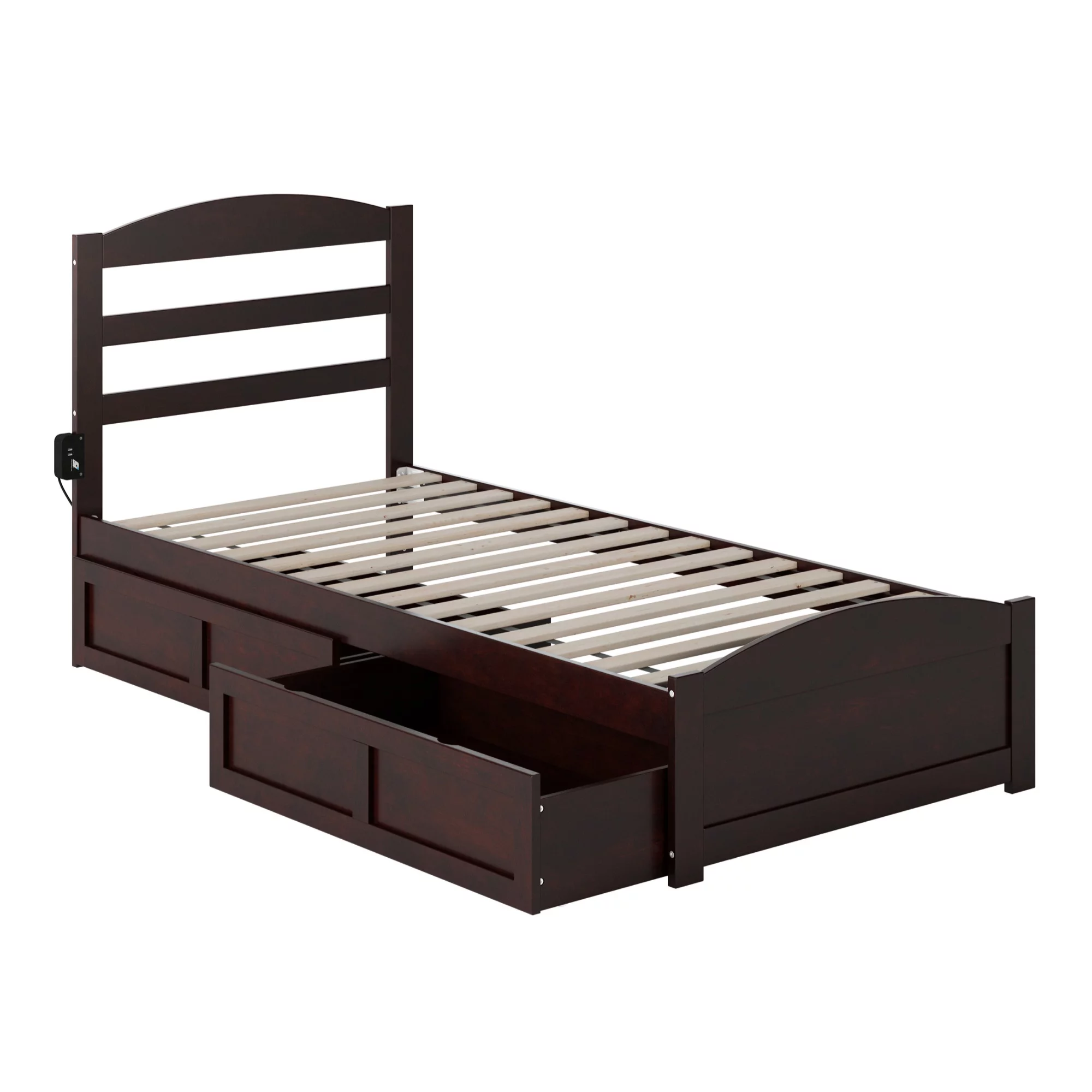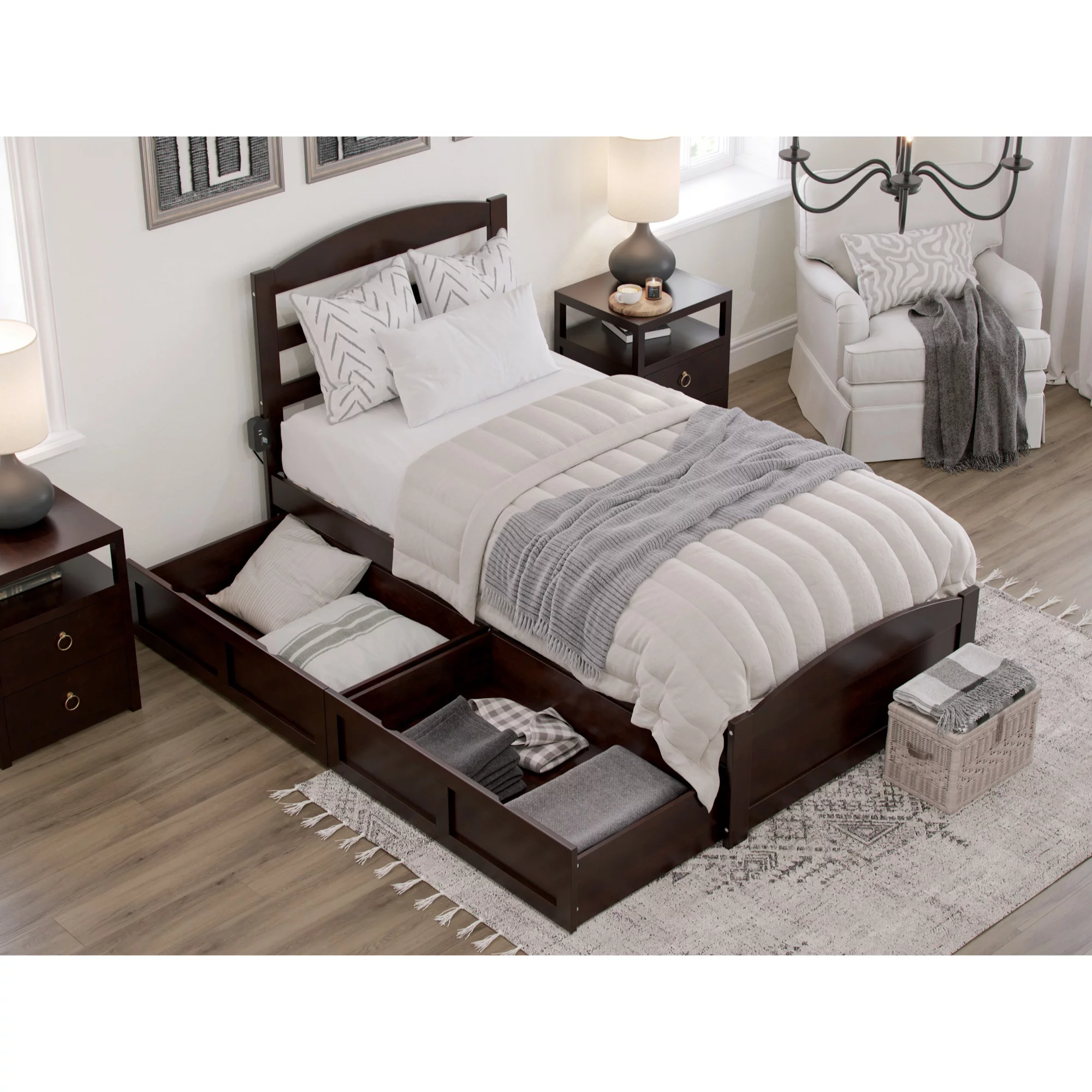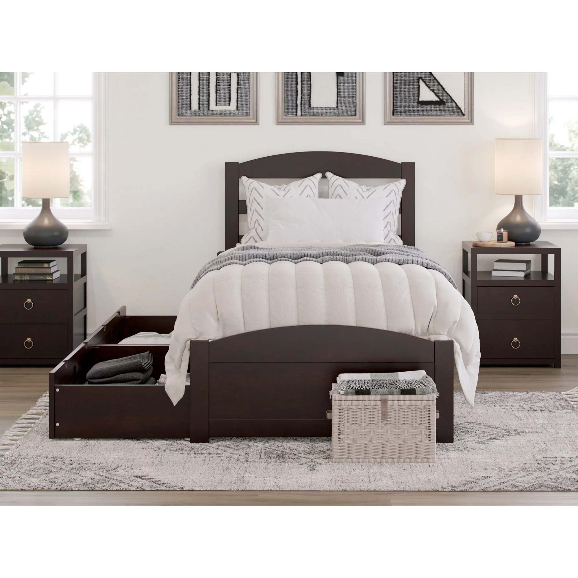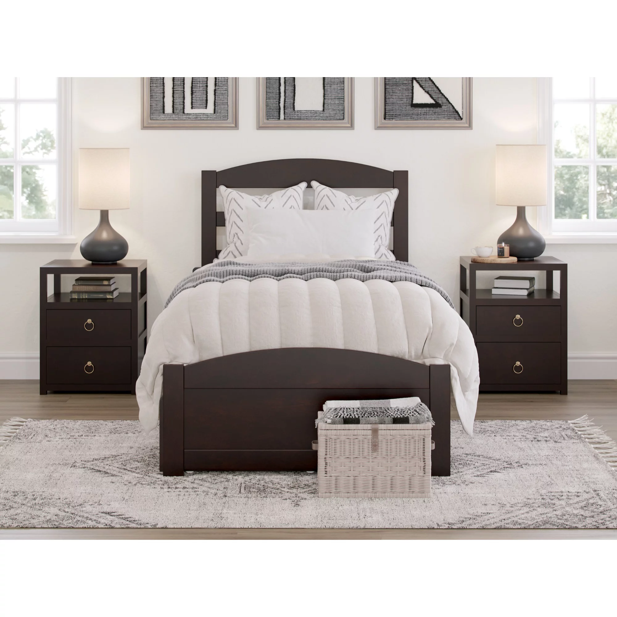 Warren, Solid Wood Platform Bed with Footboard and Storage Drawers (Set of 2), Twin XL, Espresso
