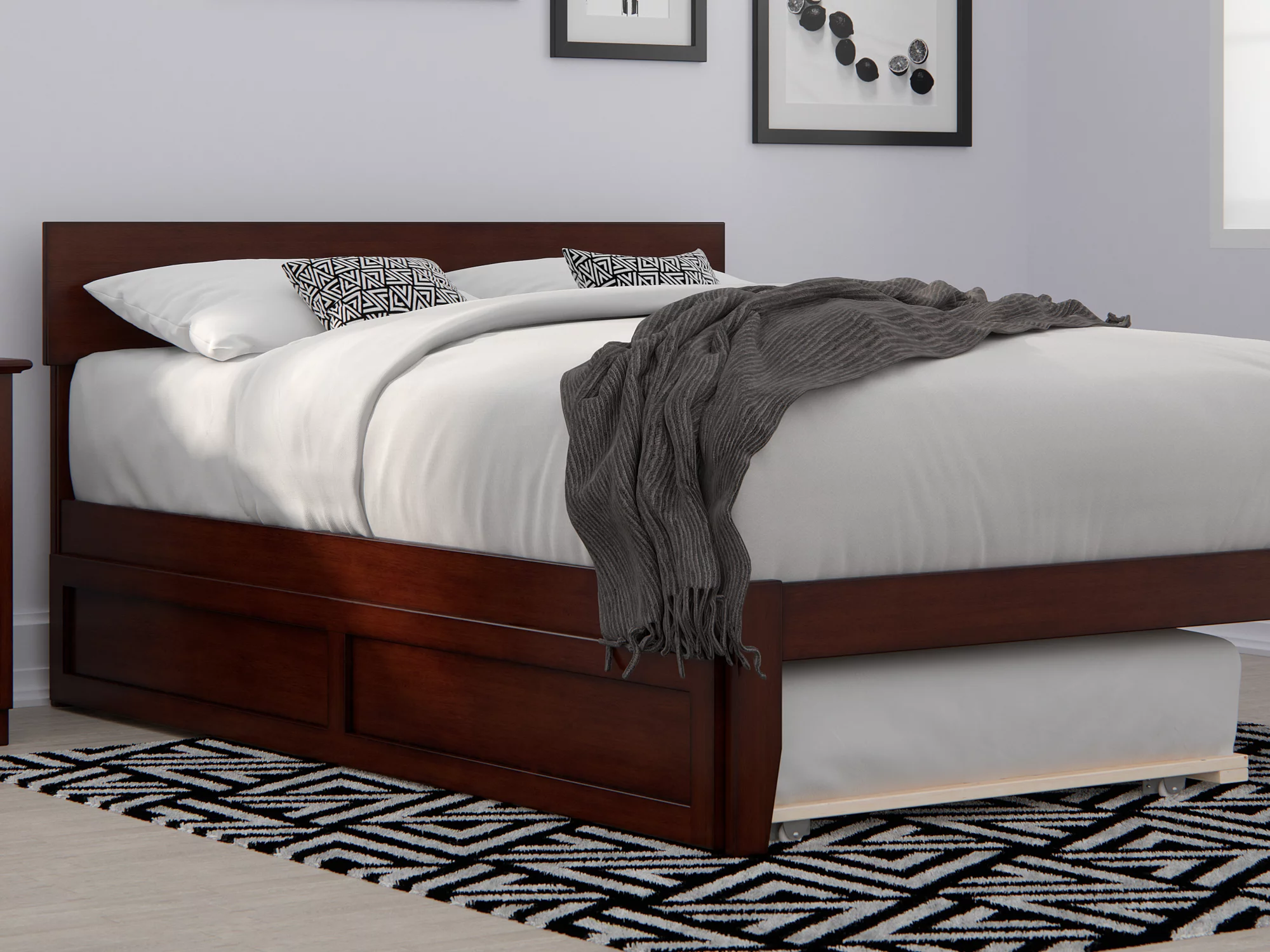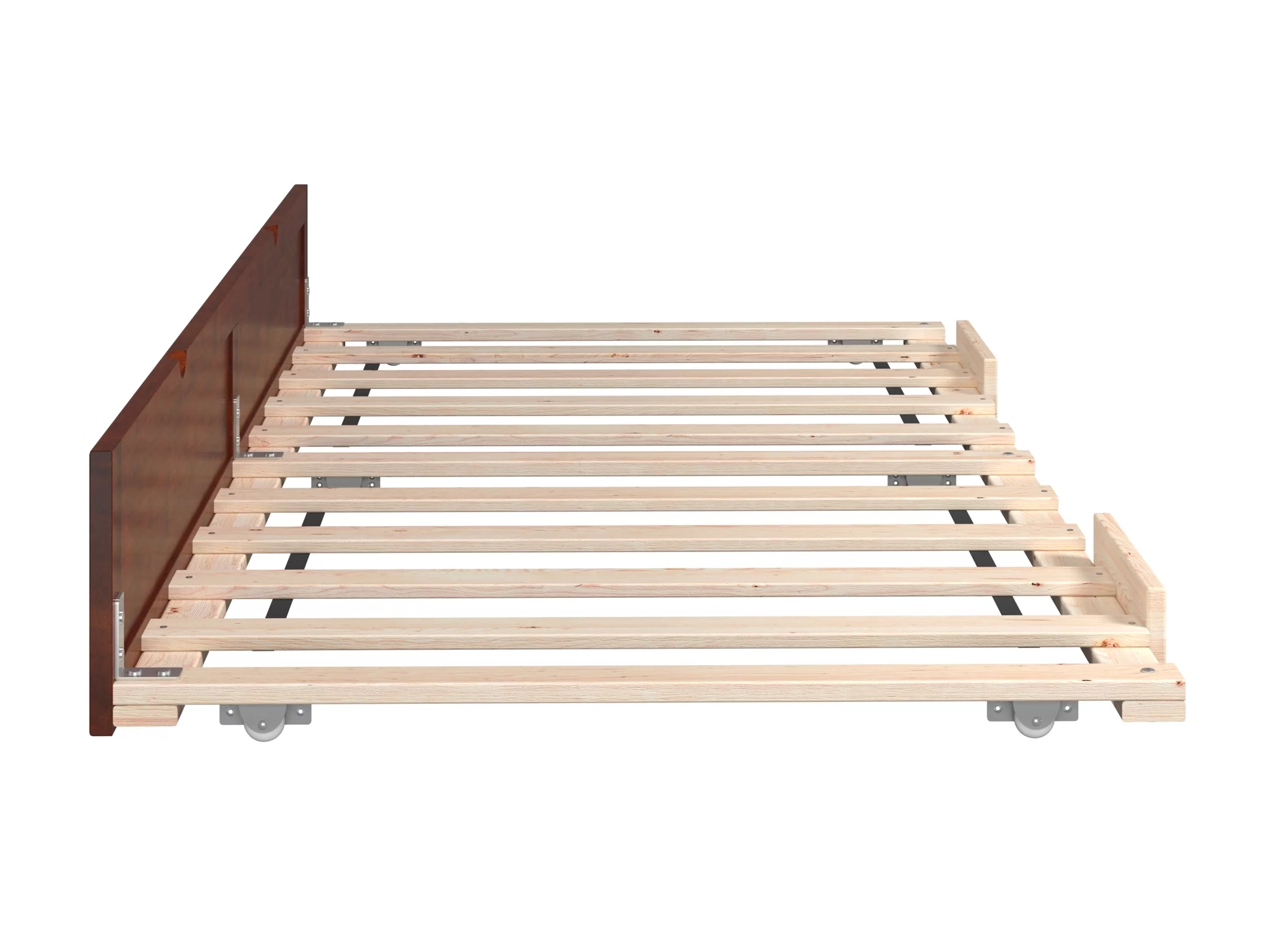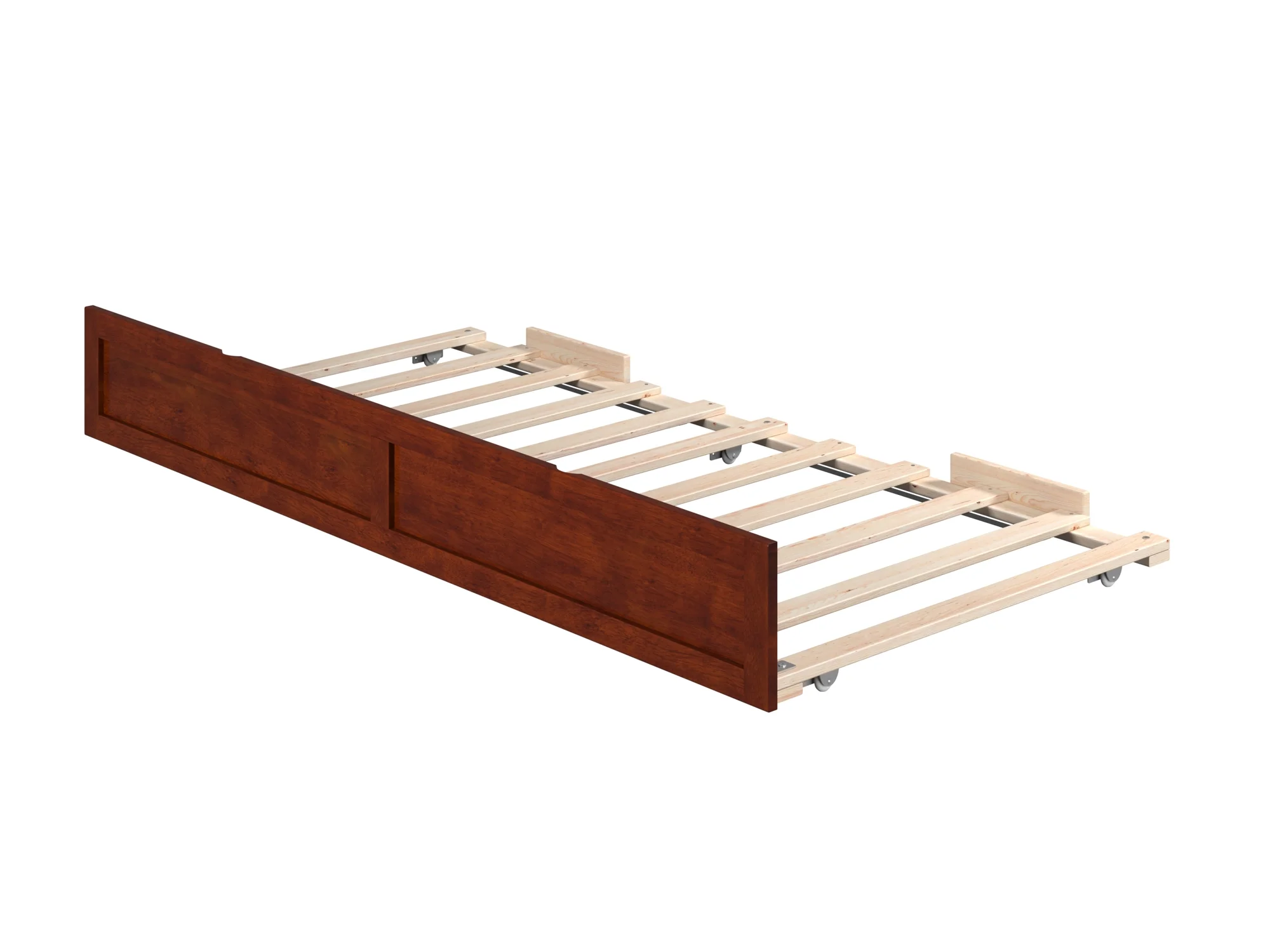 AFI Twin Roll Out Wood Trundle Bed Frame with Wooden Slat Supports, Walnut