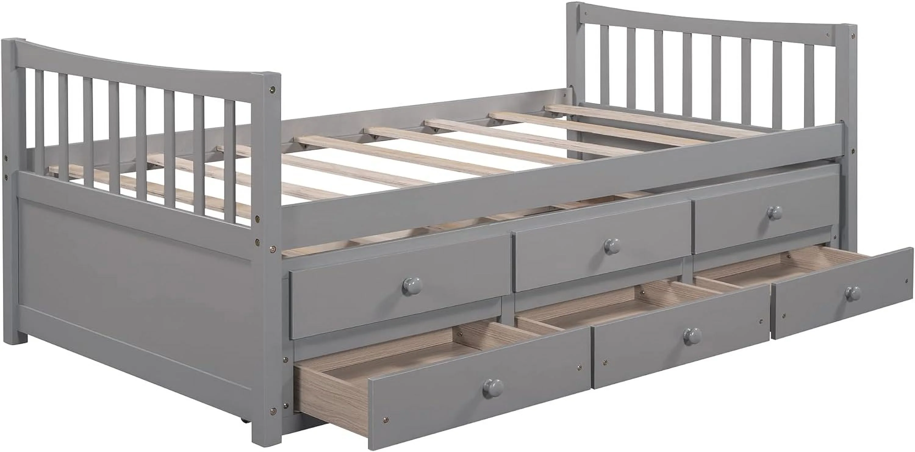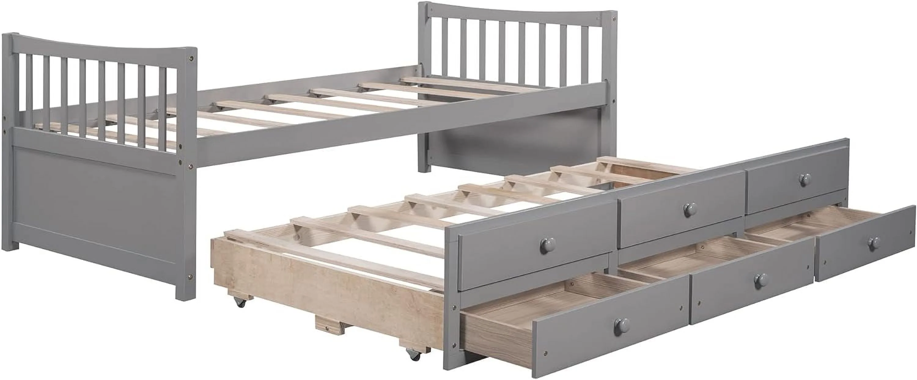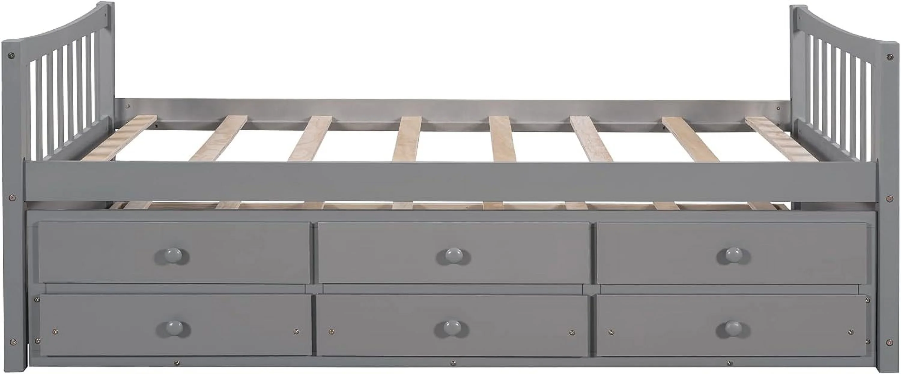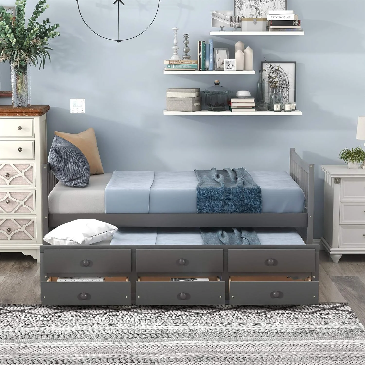AFI Twin Roll Out Wood Trundle Bed Frame with Wooden Slat Supports, Walnut