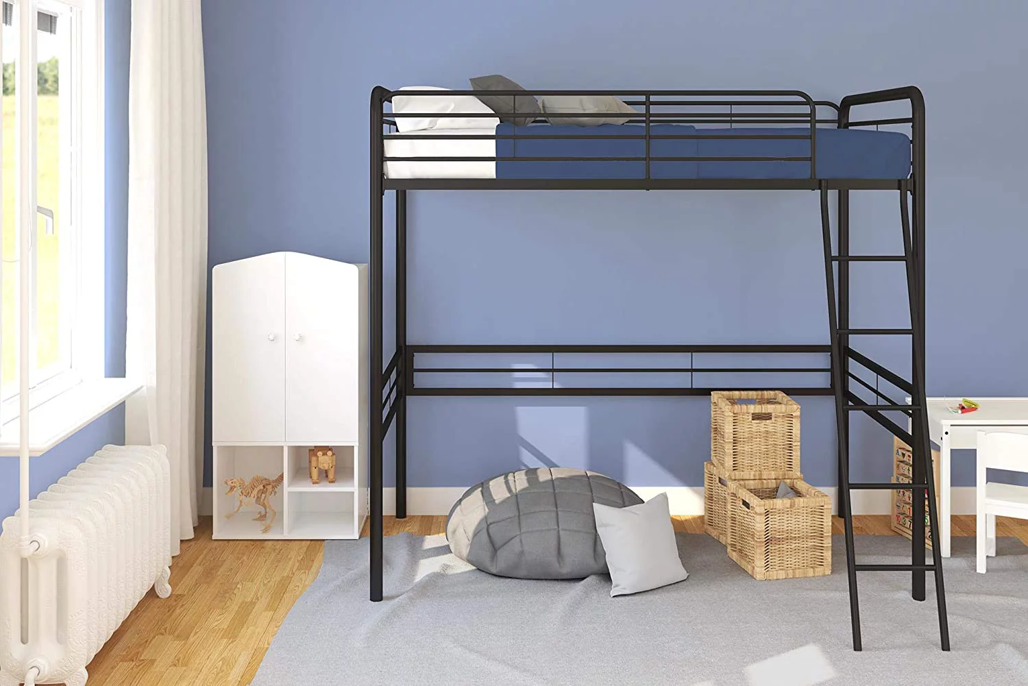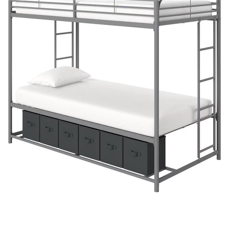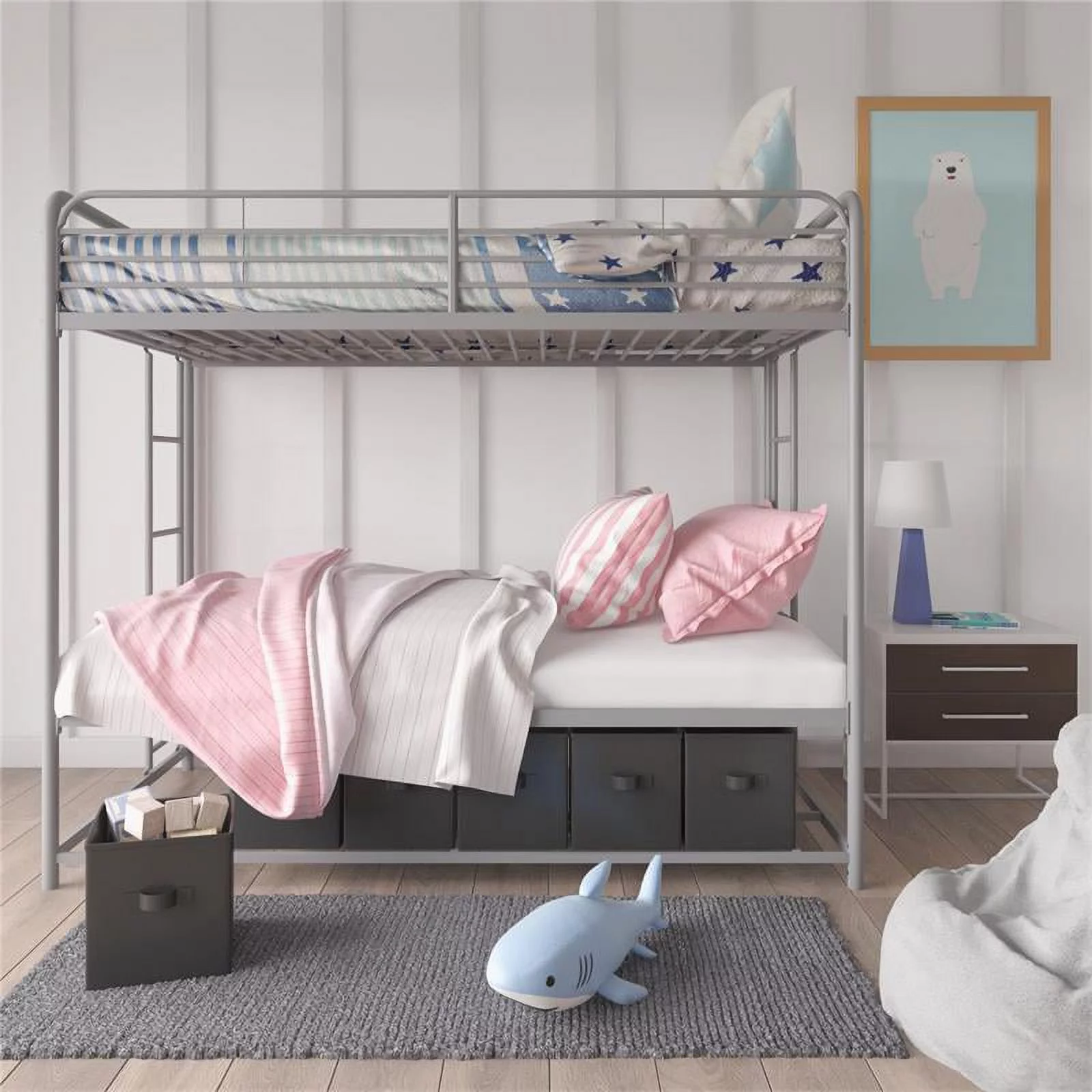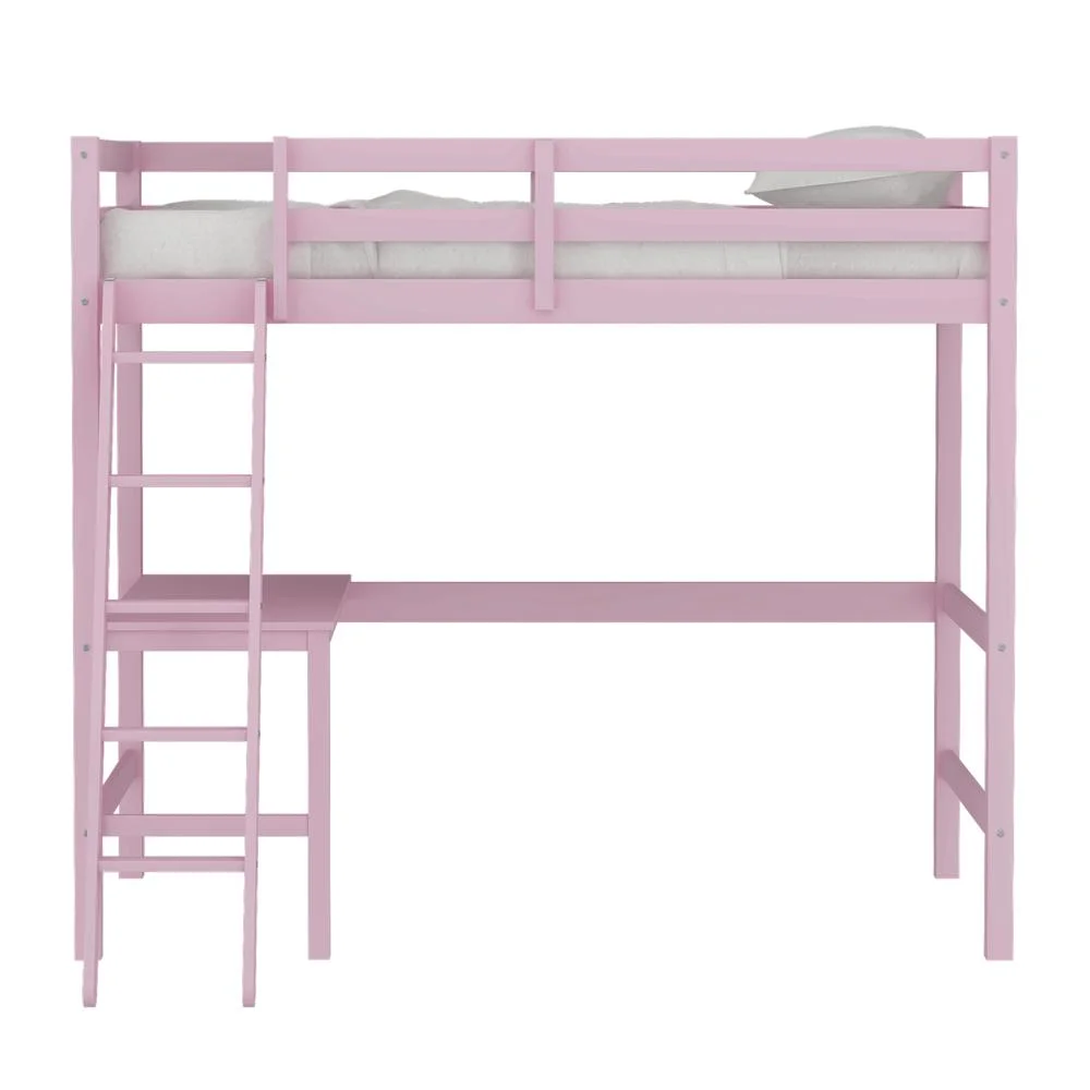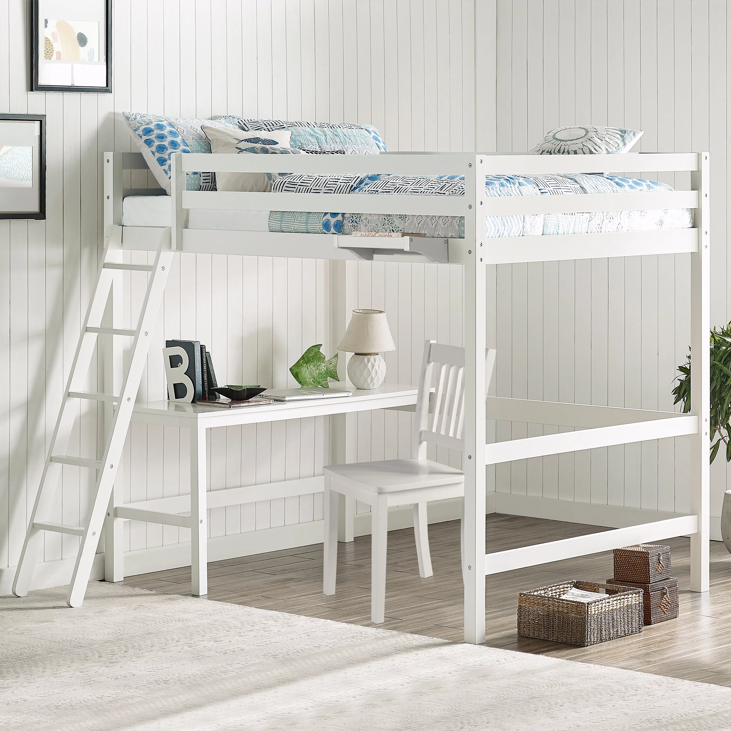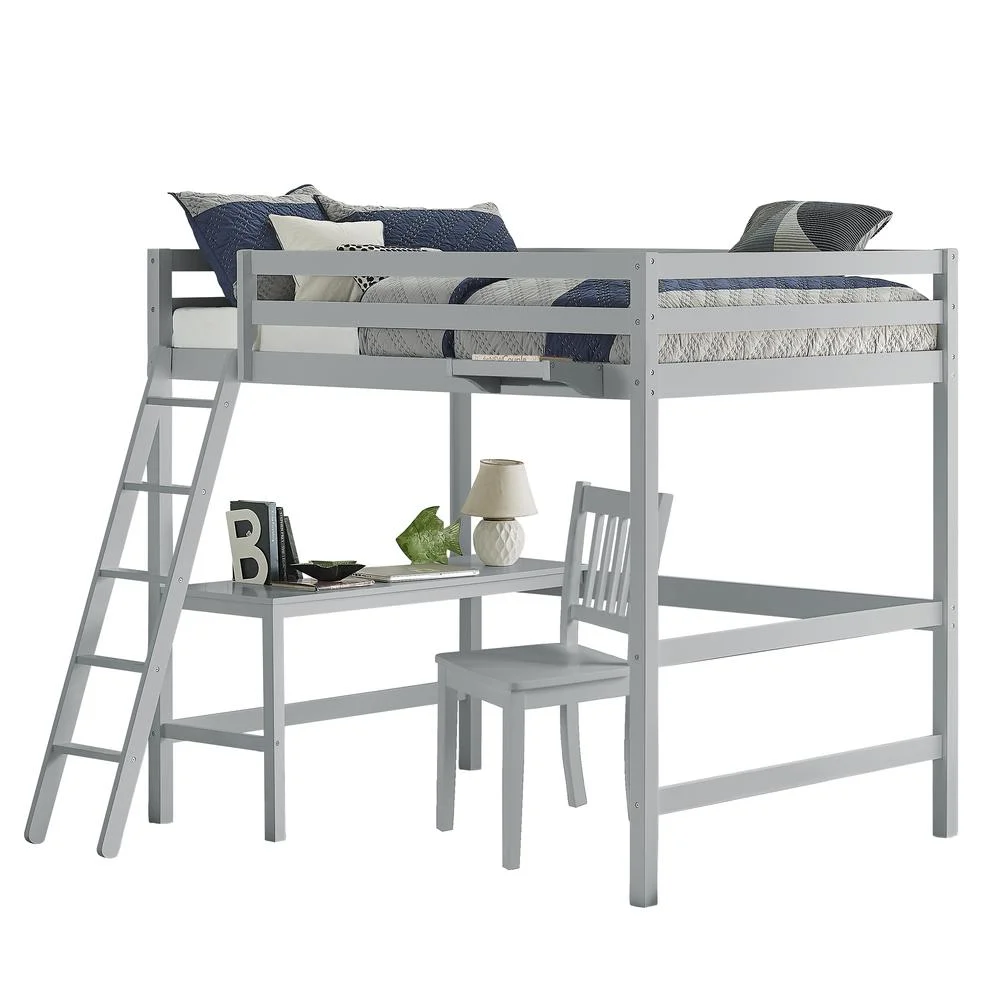 NE Kids Caspian Wood Full Loft Bed with Chair and Hanging Nightstand in Gray