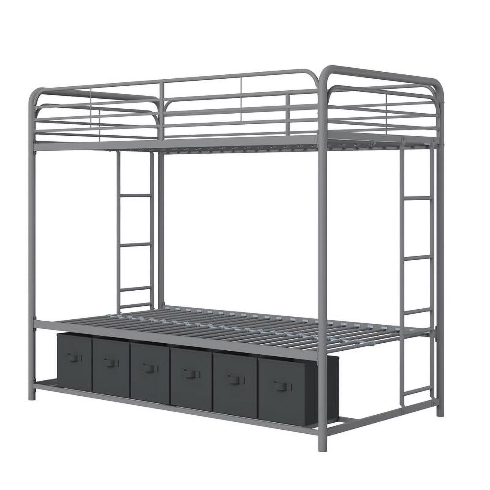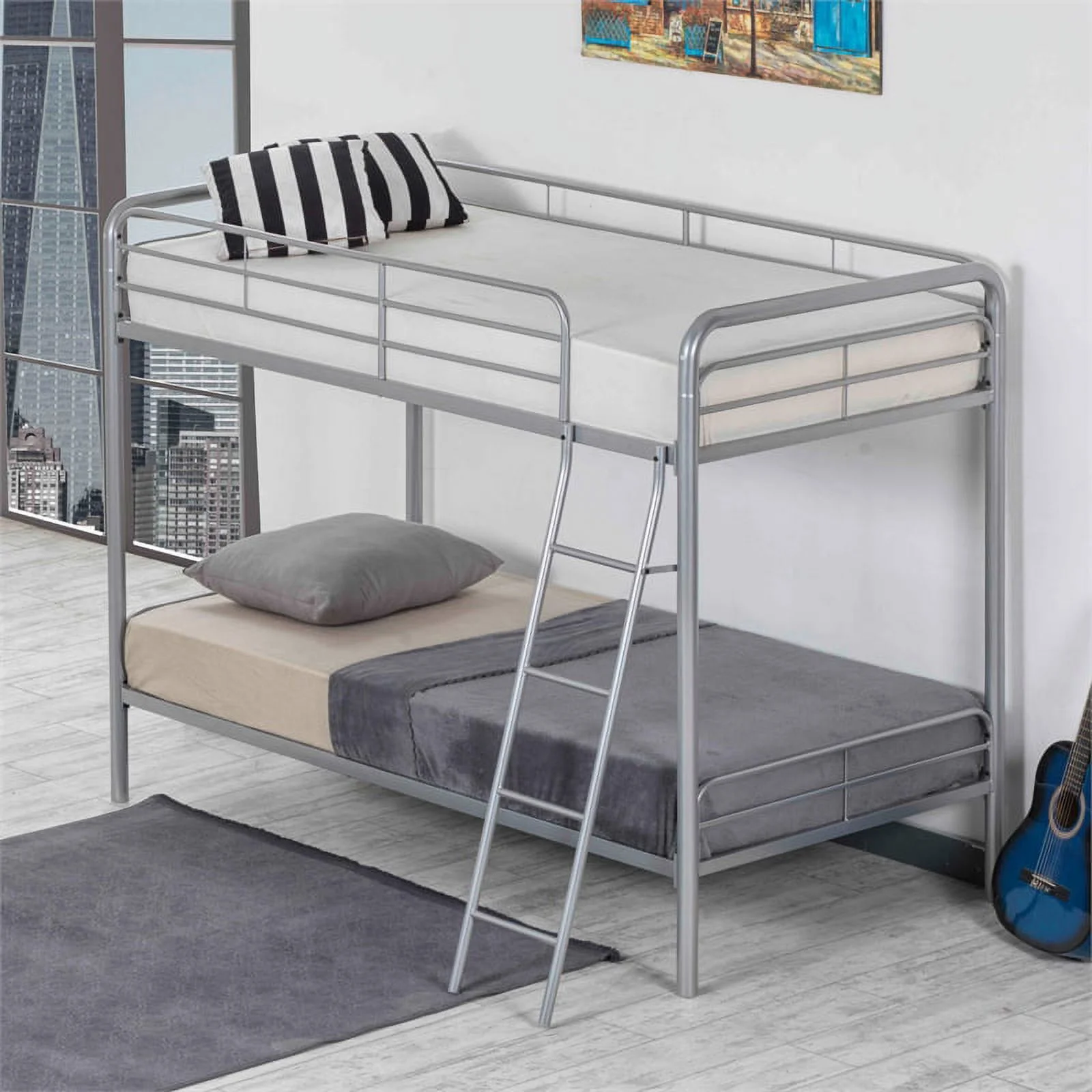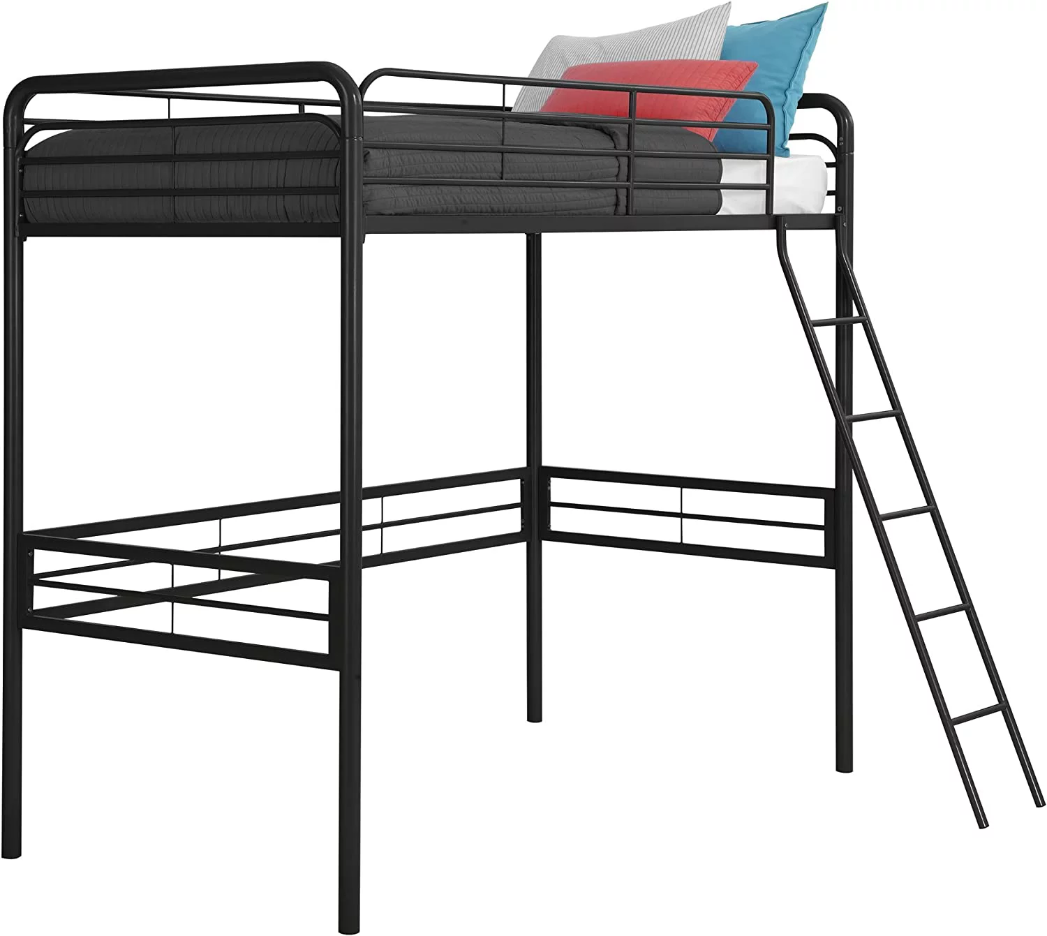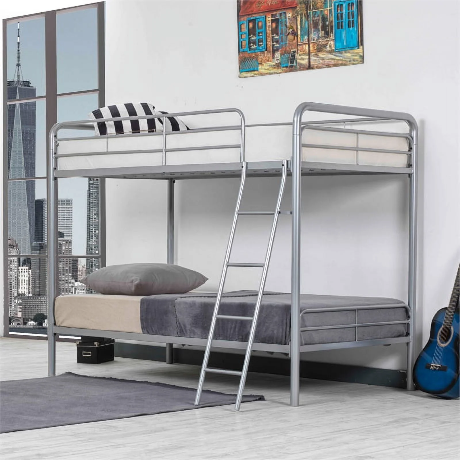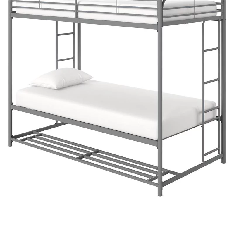 NE Kids Caspian Wood Full Loft Bed with Chair and Hanging Nightstand in Gray
