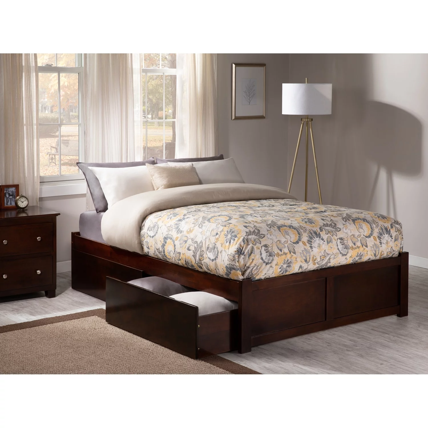 AFI Concord Full Platform Bed with Footboard and 2 Bed Drawers in Walnut