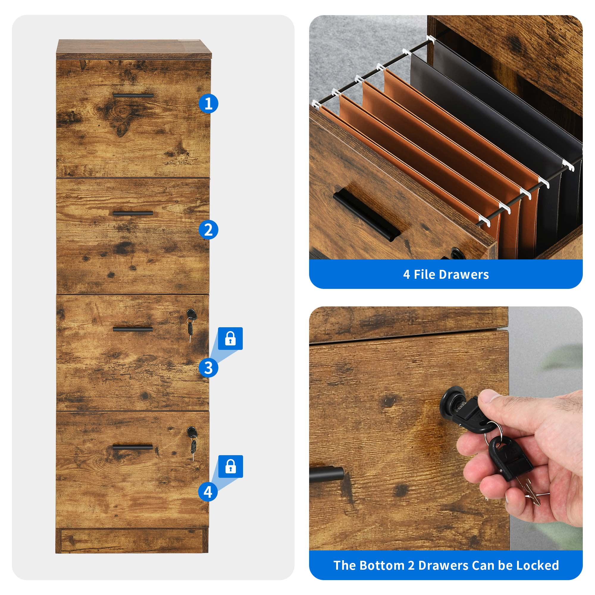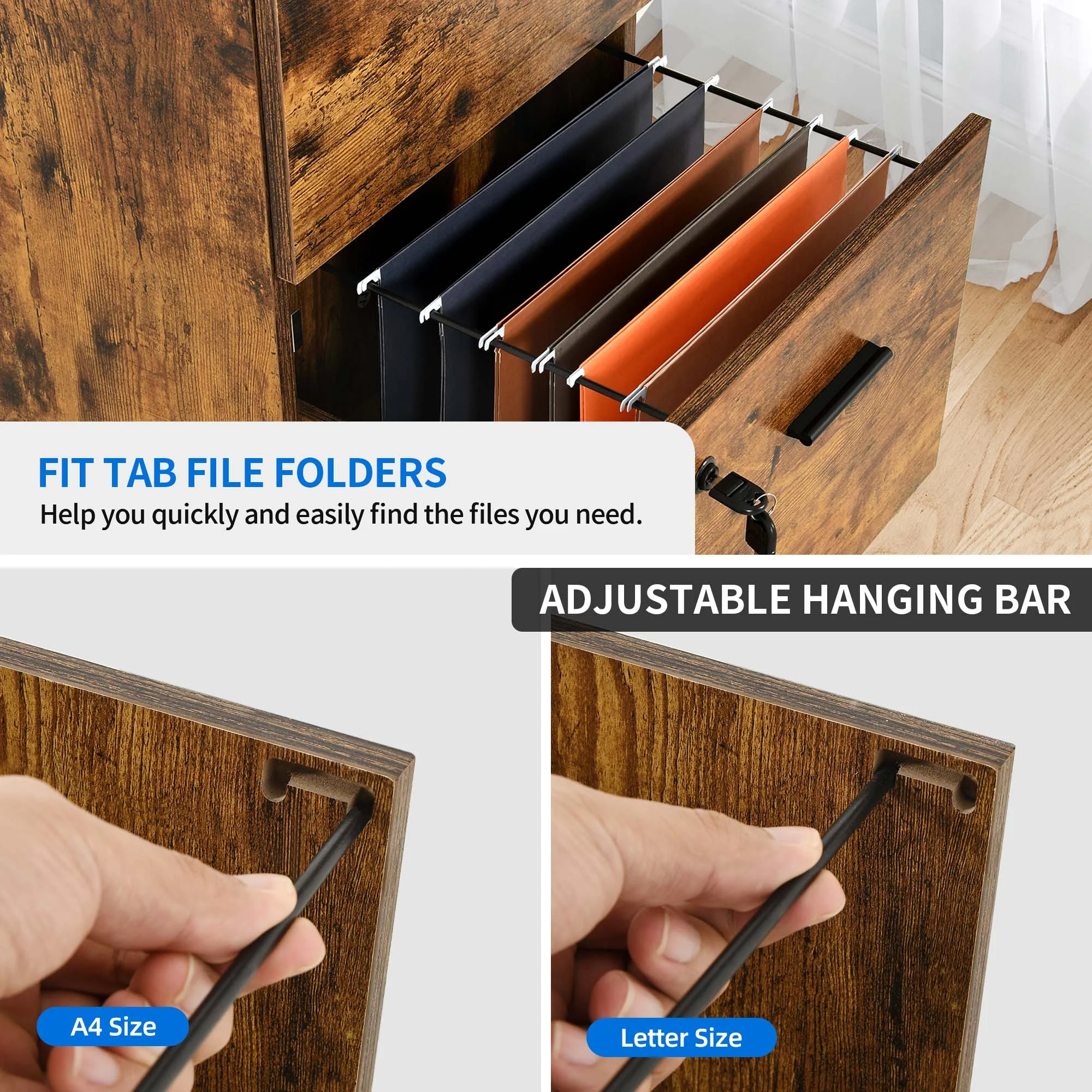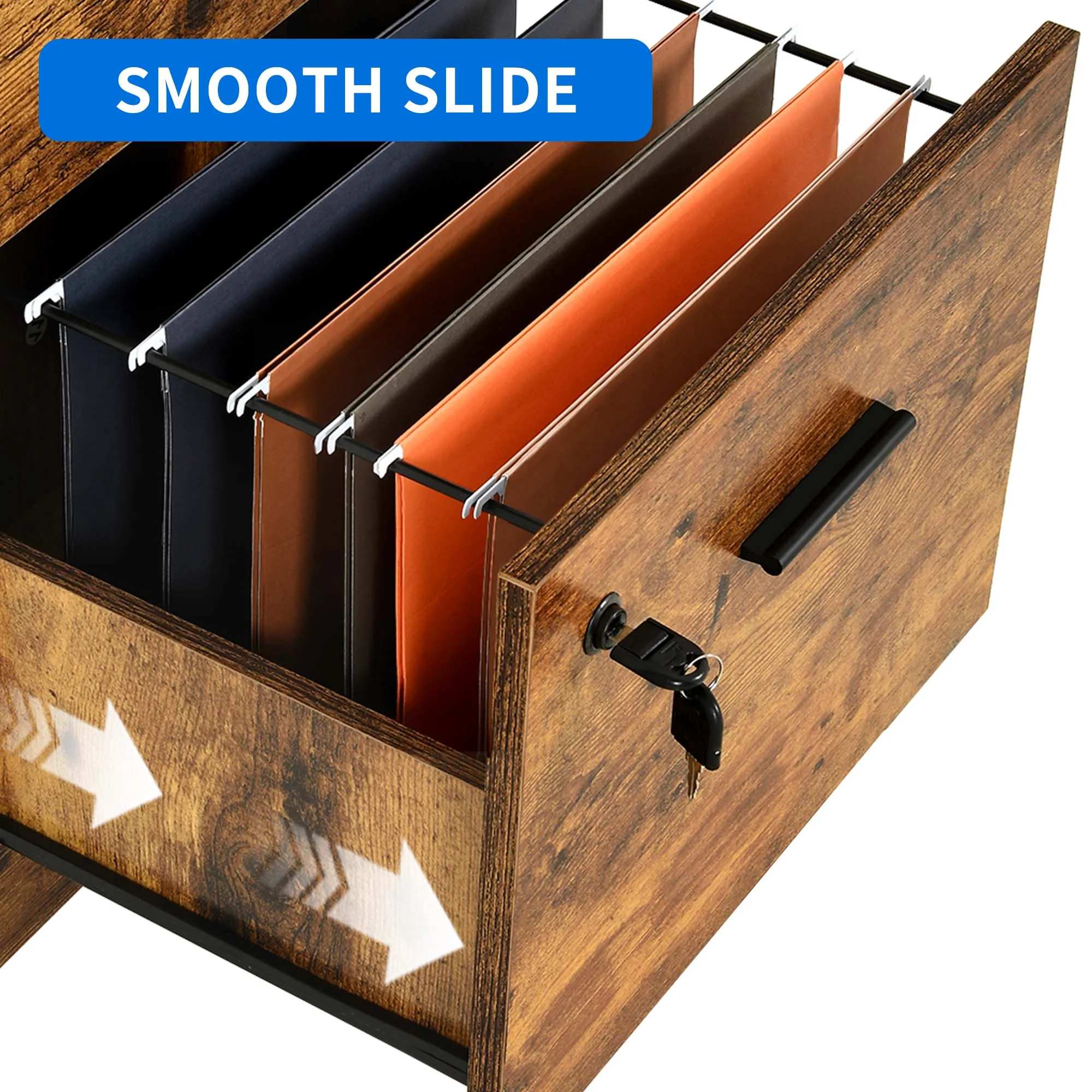 Smile Mart Rolling Wooden File Cabinet with 2 Drawers and Shelf, Black/Rustic Brown