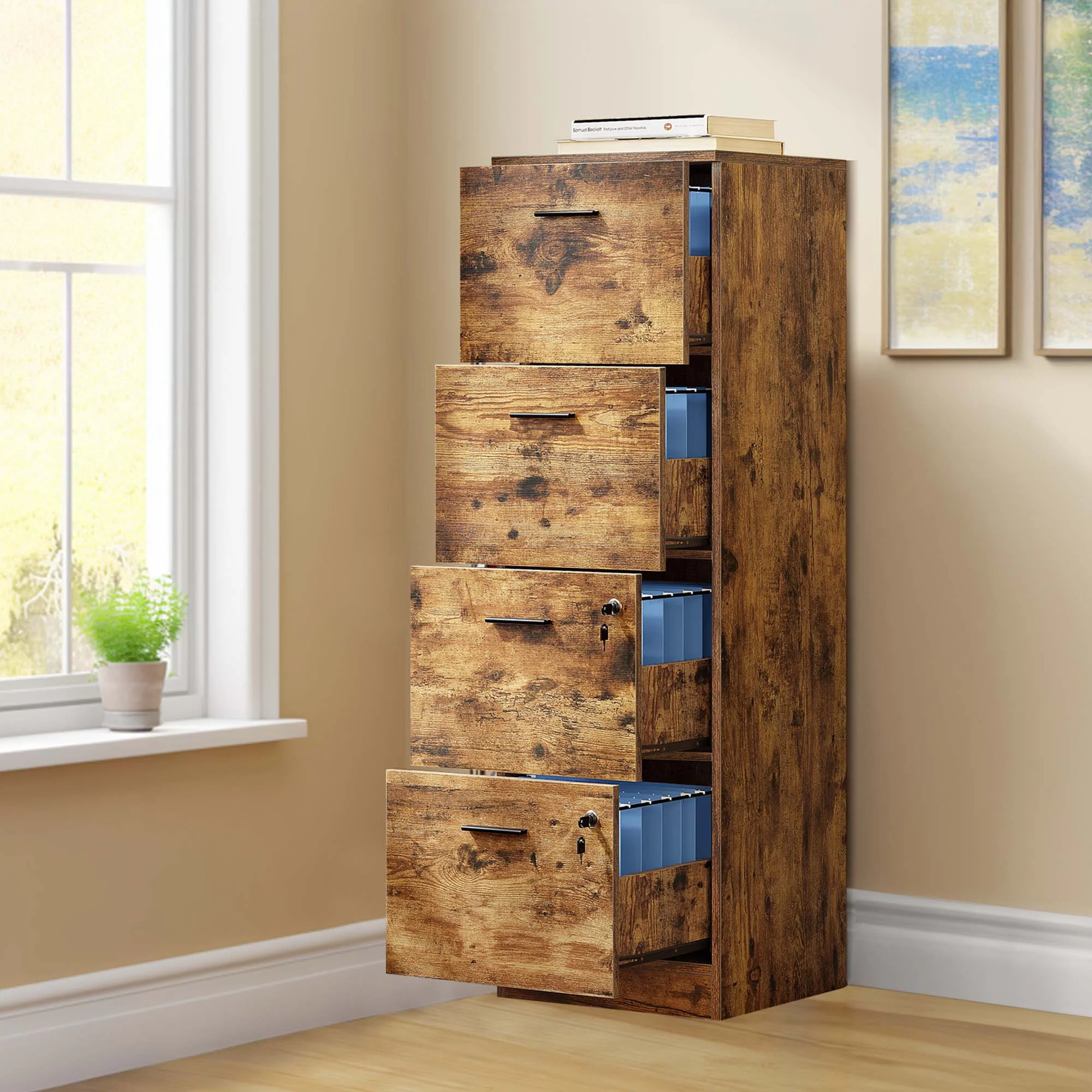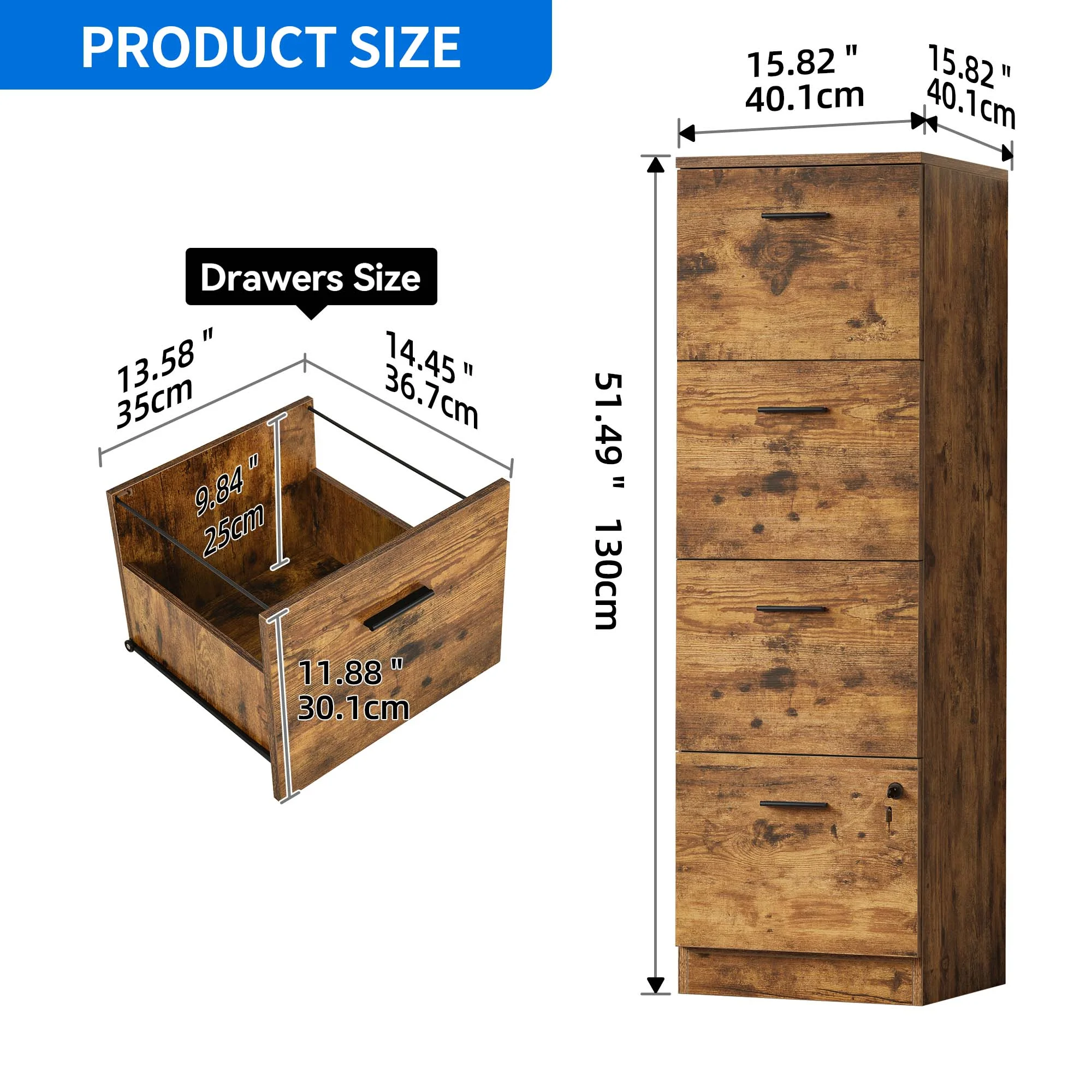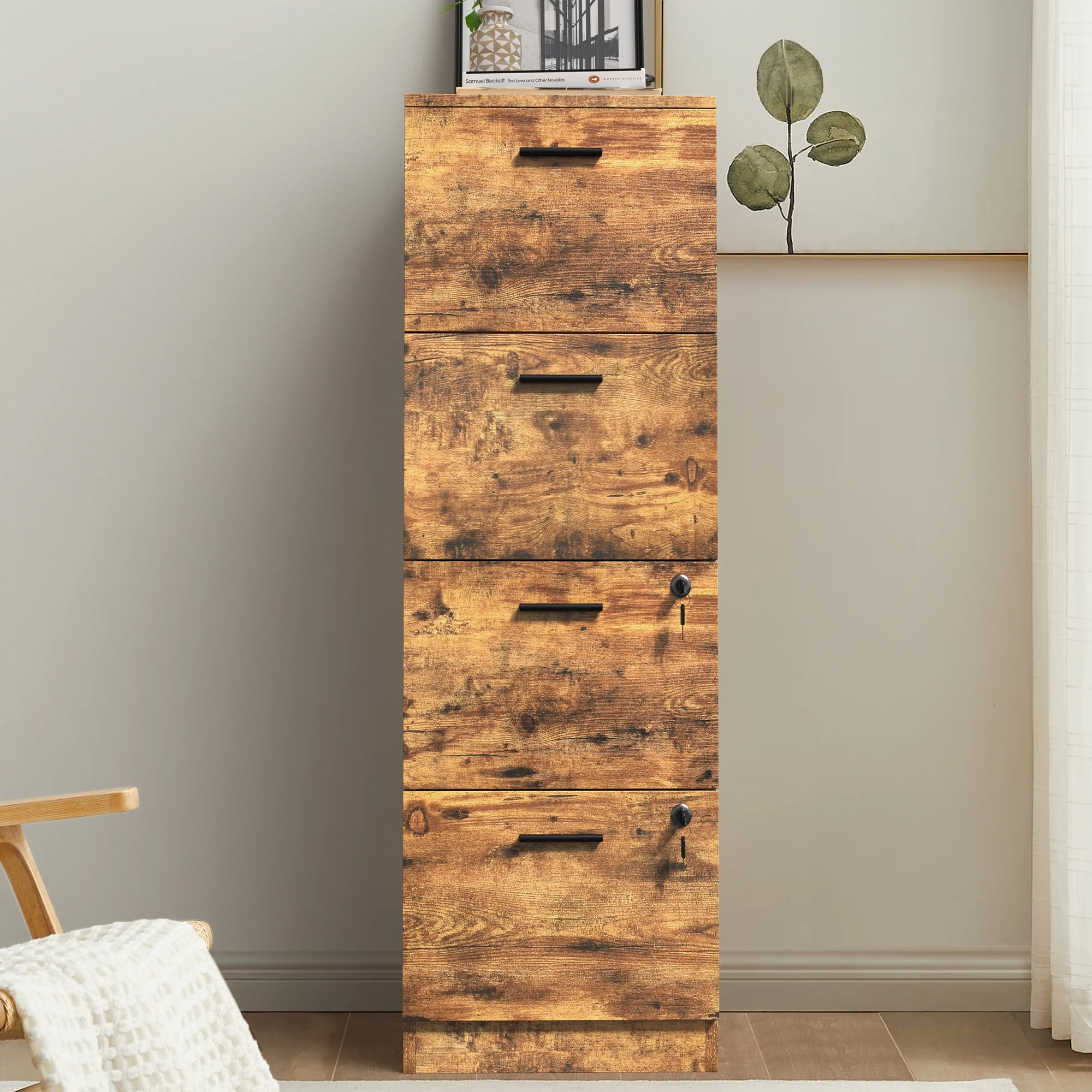 Smile Mart Rolling Wooden File Cabinet with 2 Drawers and Shelf, Black/Rustic Brown
