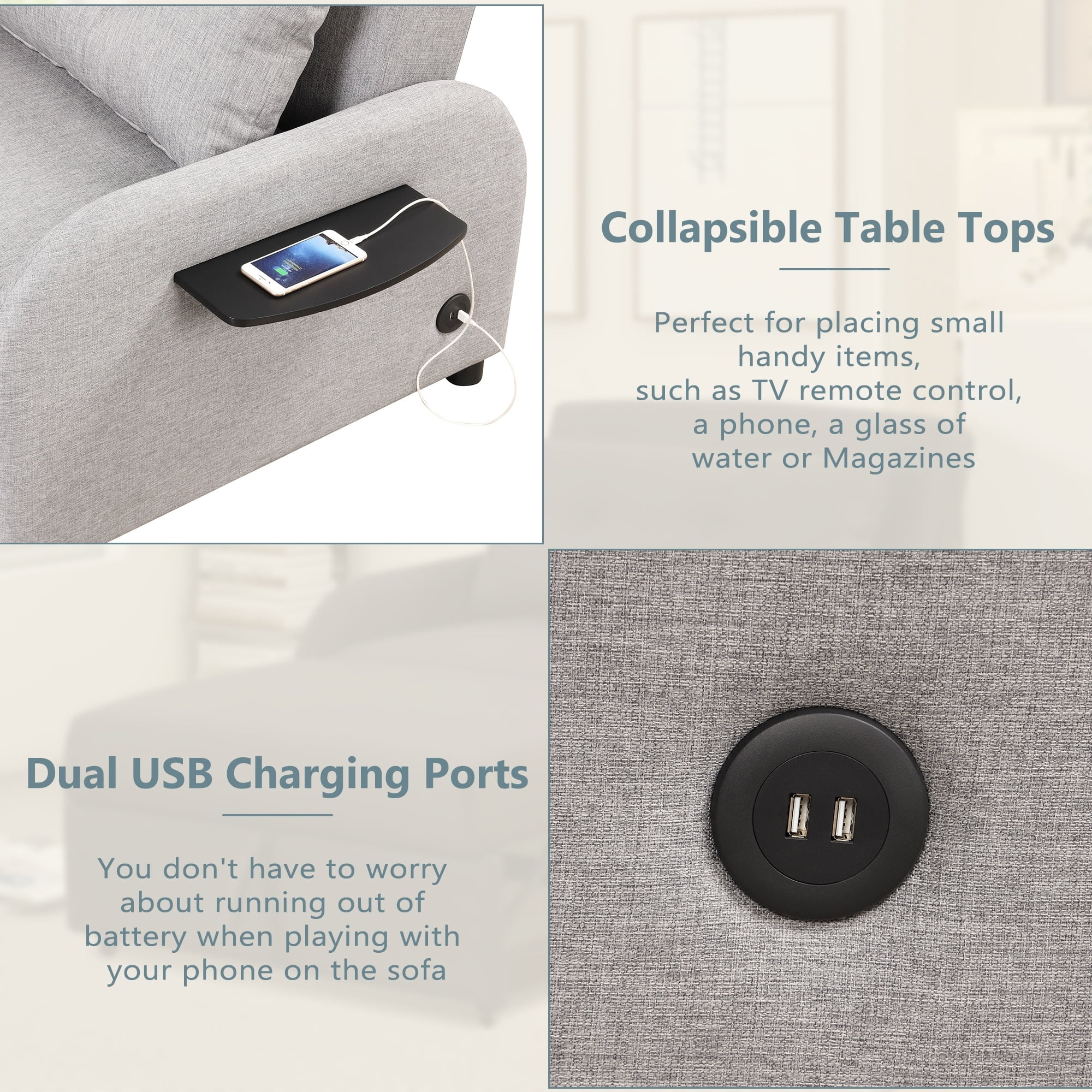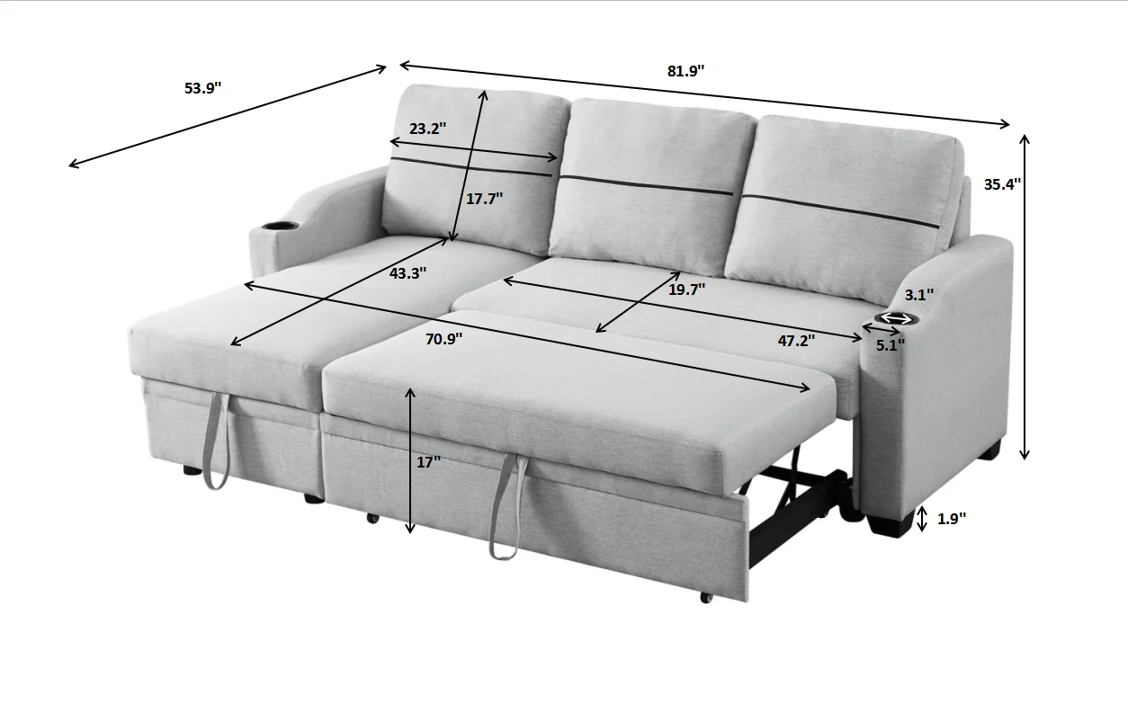 Modern Pull Out Sleeper Sofa Bed with 2 Wing Table and USB Charge Sofa
