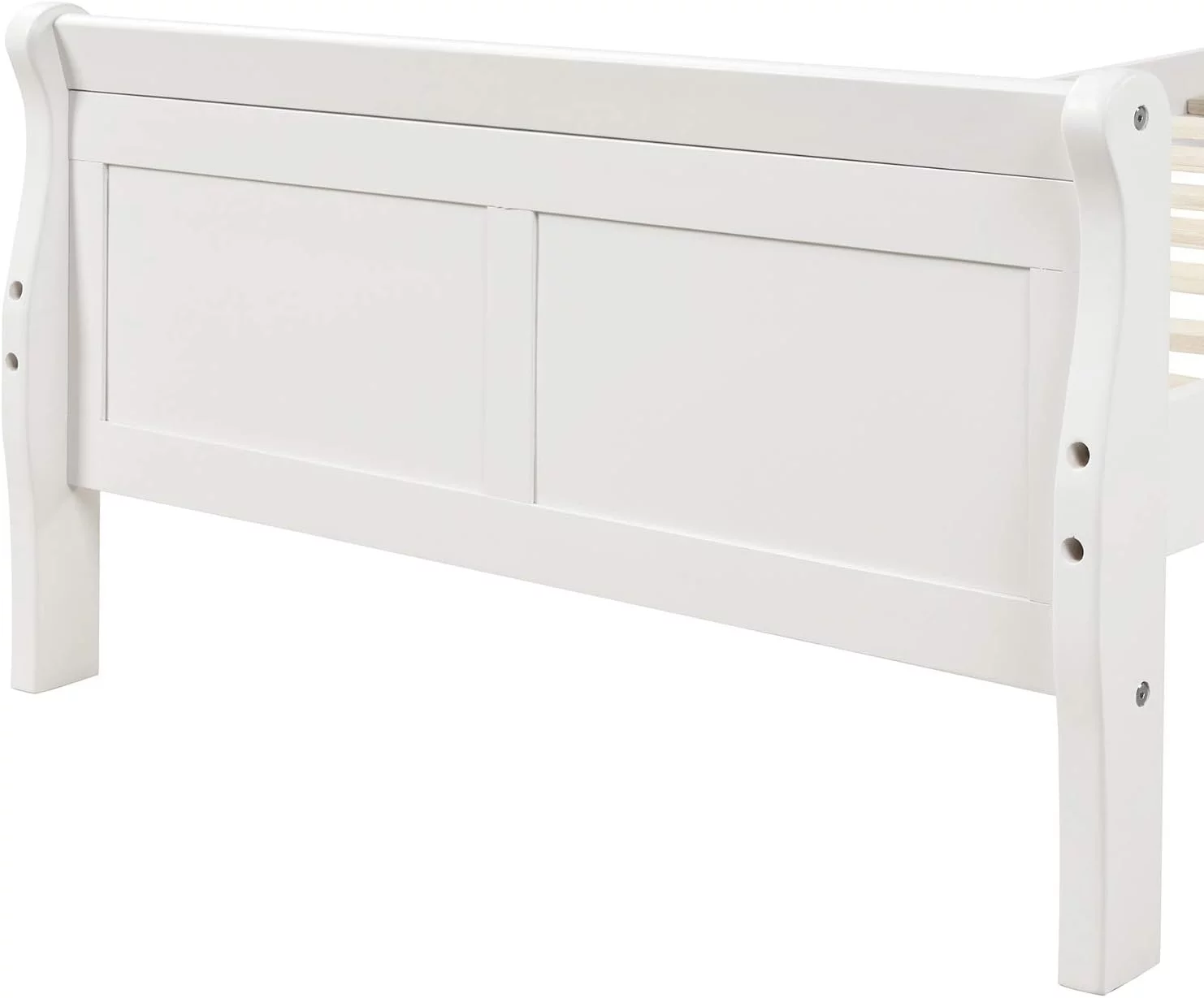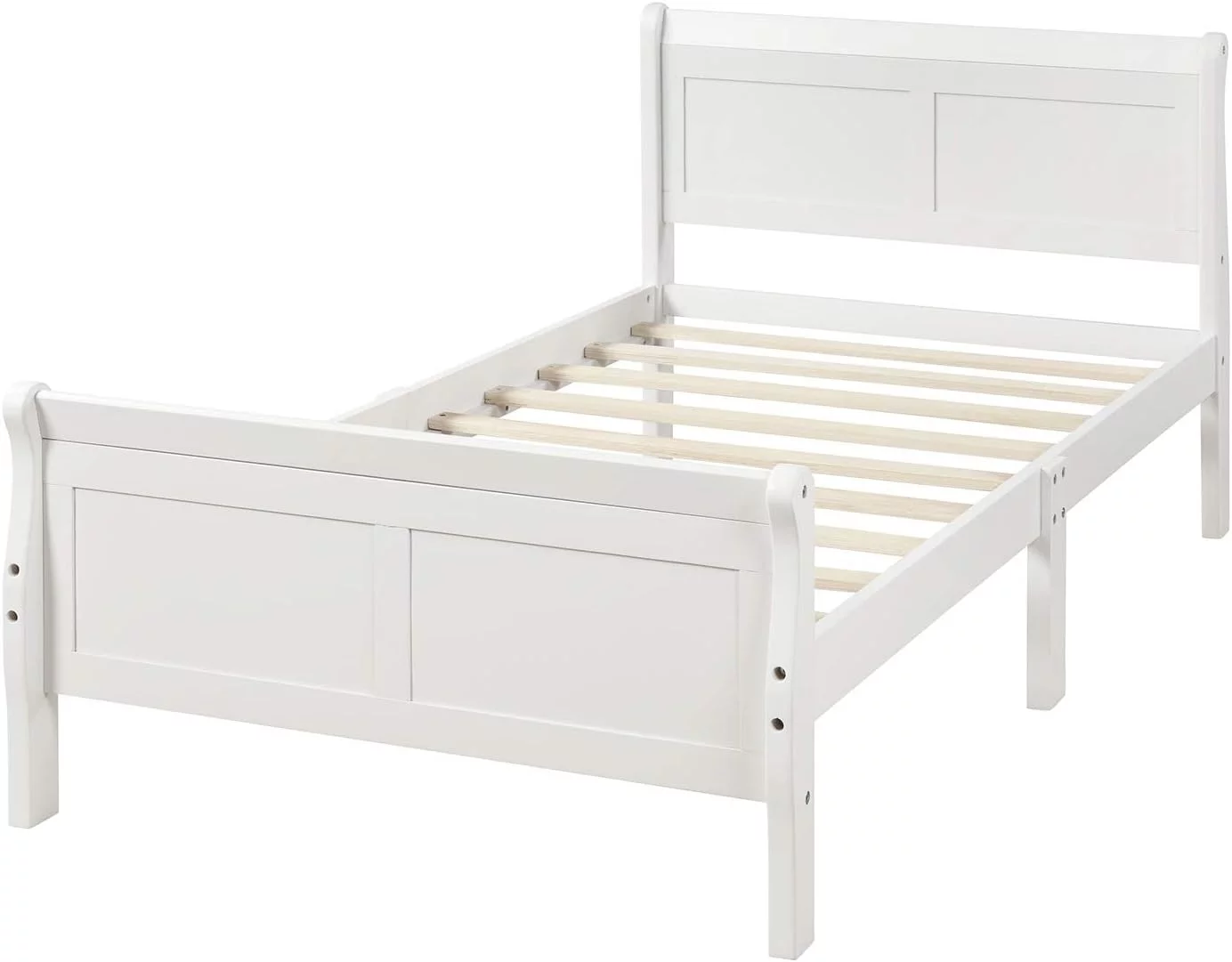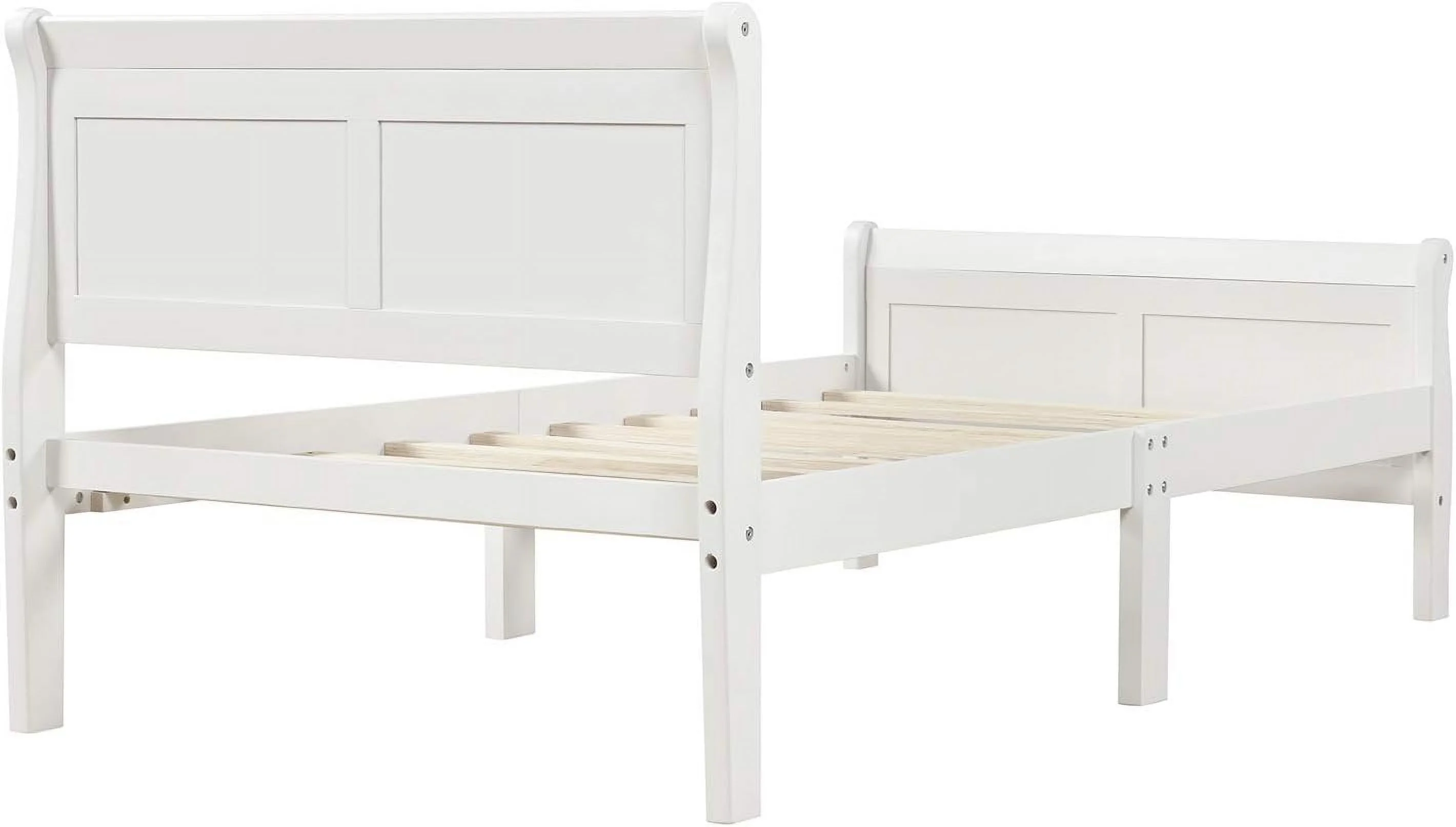 Wood Size Sleigh Bed Platform With Heaboard And Footboard, Mattress Foundation With Slats Support, White