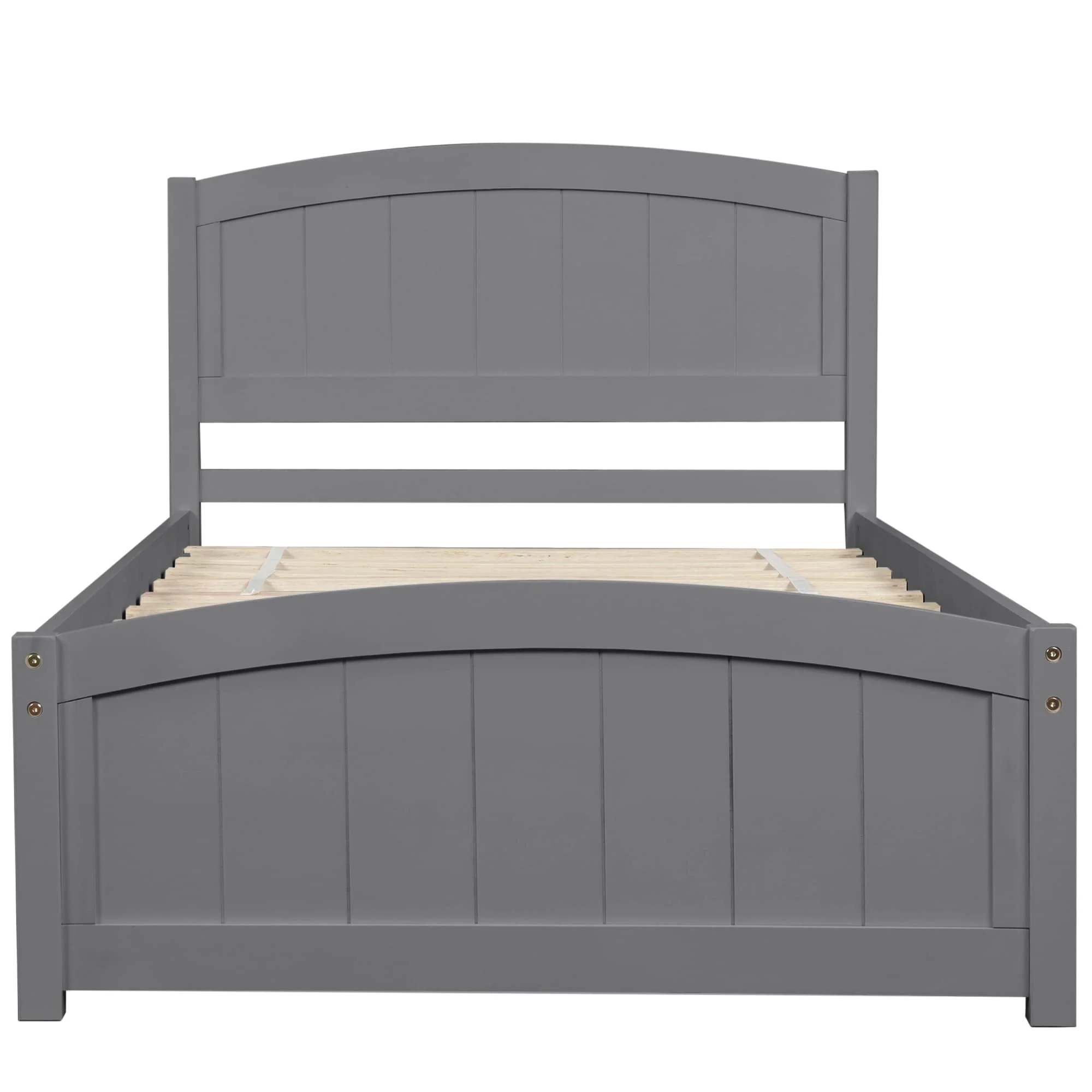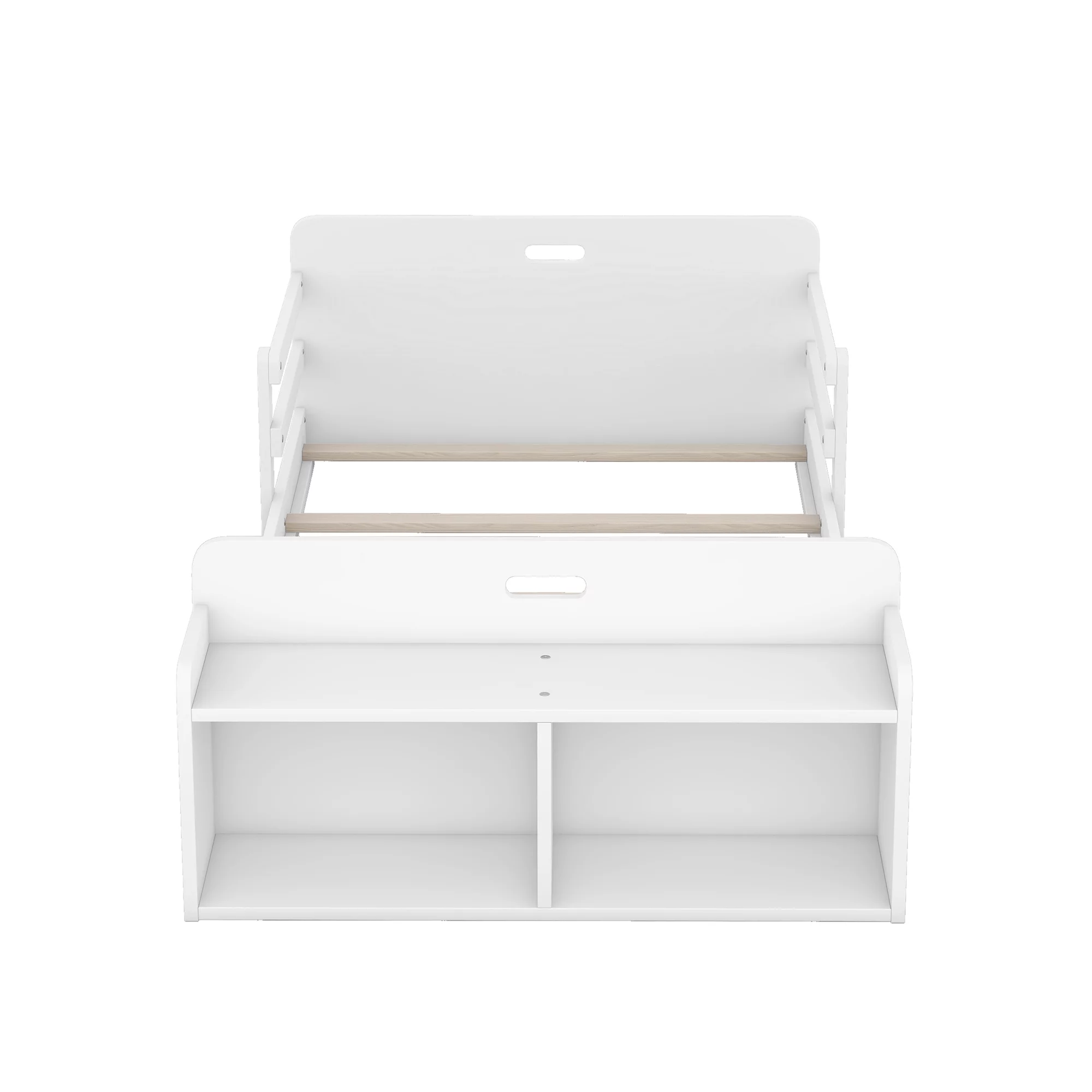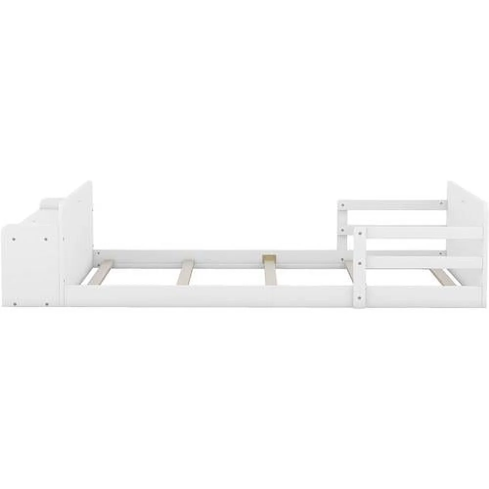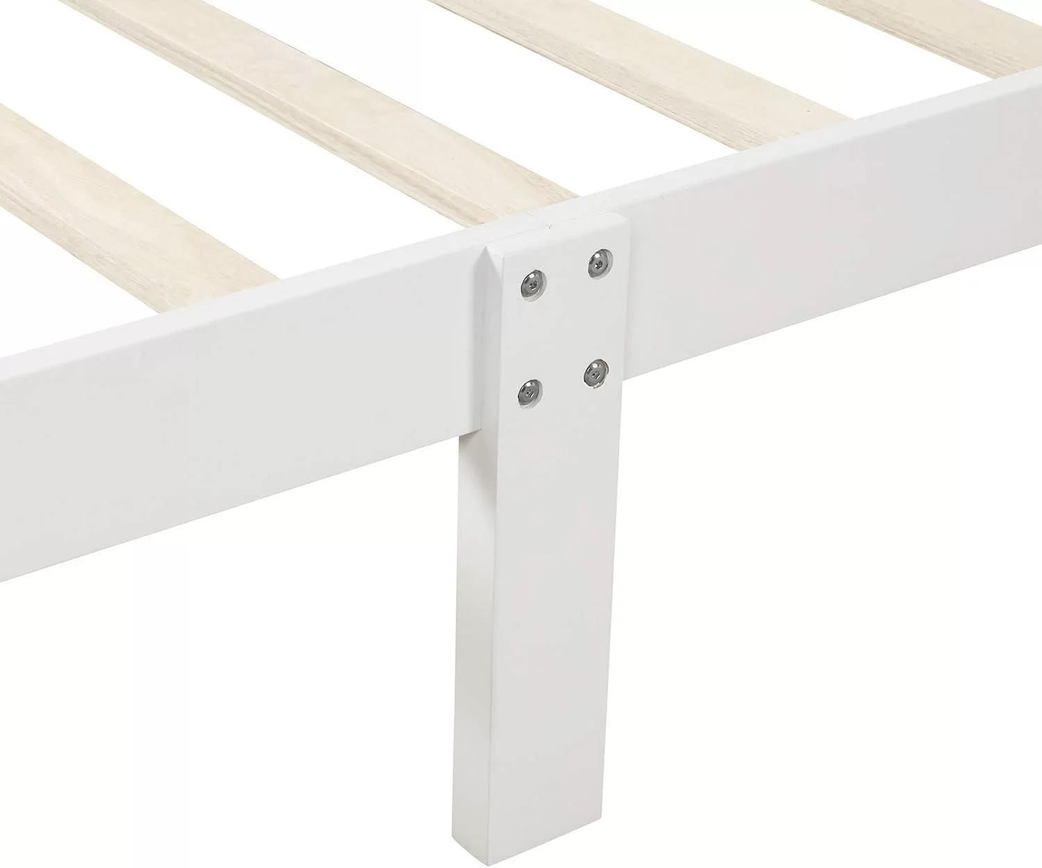 Wood Size Sleigh Bed Platform With Heaboard And Footboard, Mattress Foundation With Slats Support, White
