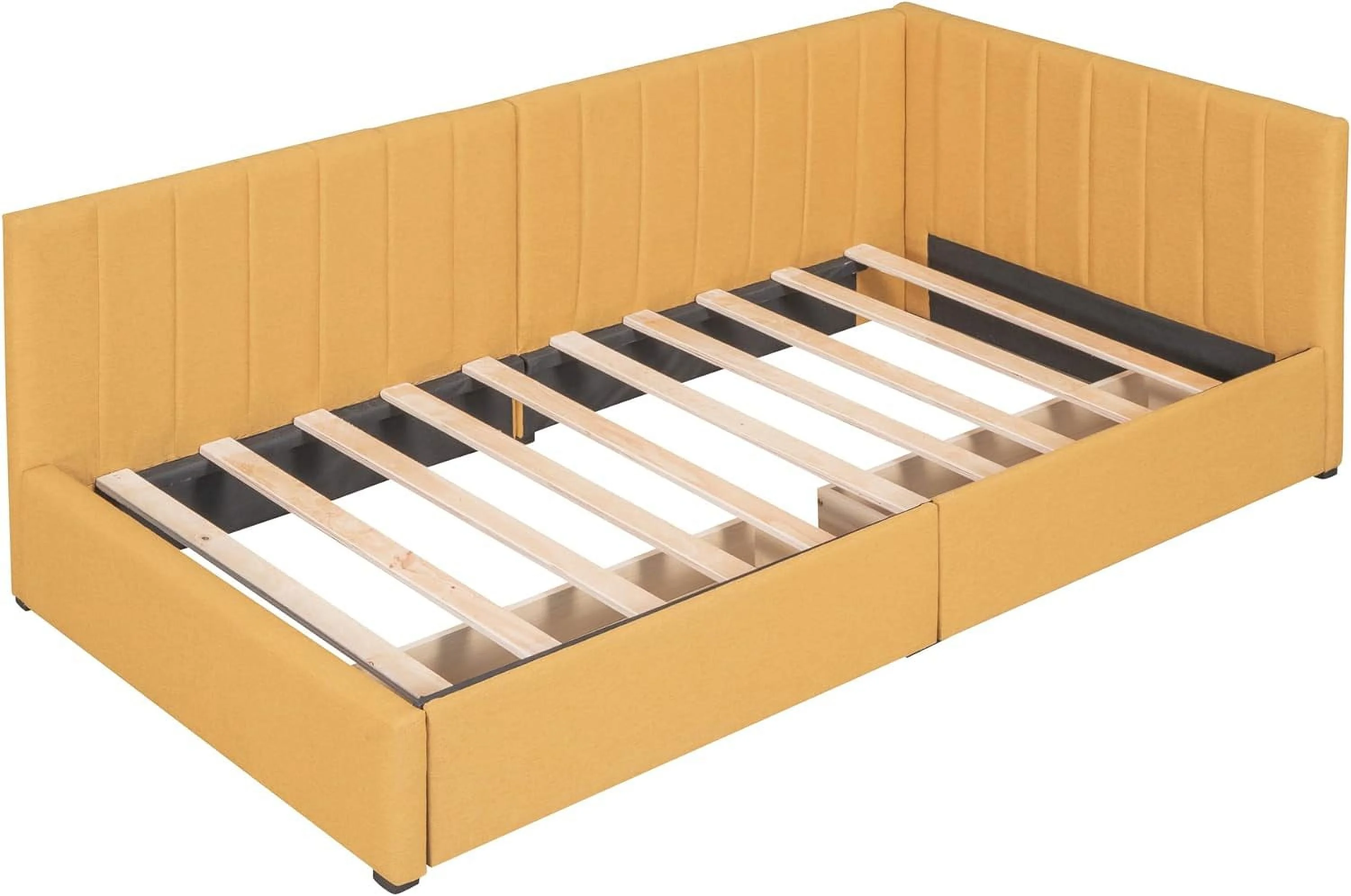 Upholsered Daybed Wih 2 Sorage Drawers, Size Daybed Wih Wood Slas, Lie Fabric Sofa Bed Frame For Livig Room Bedroom (, Yellow)