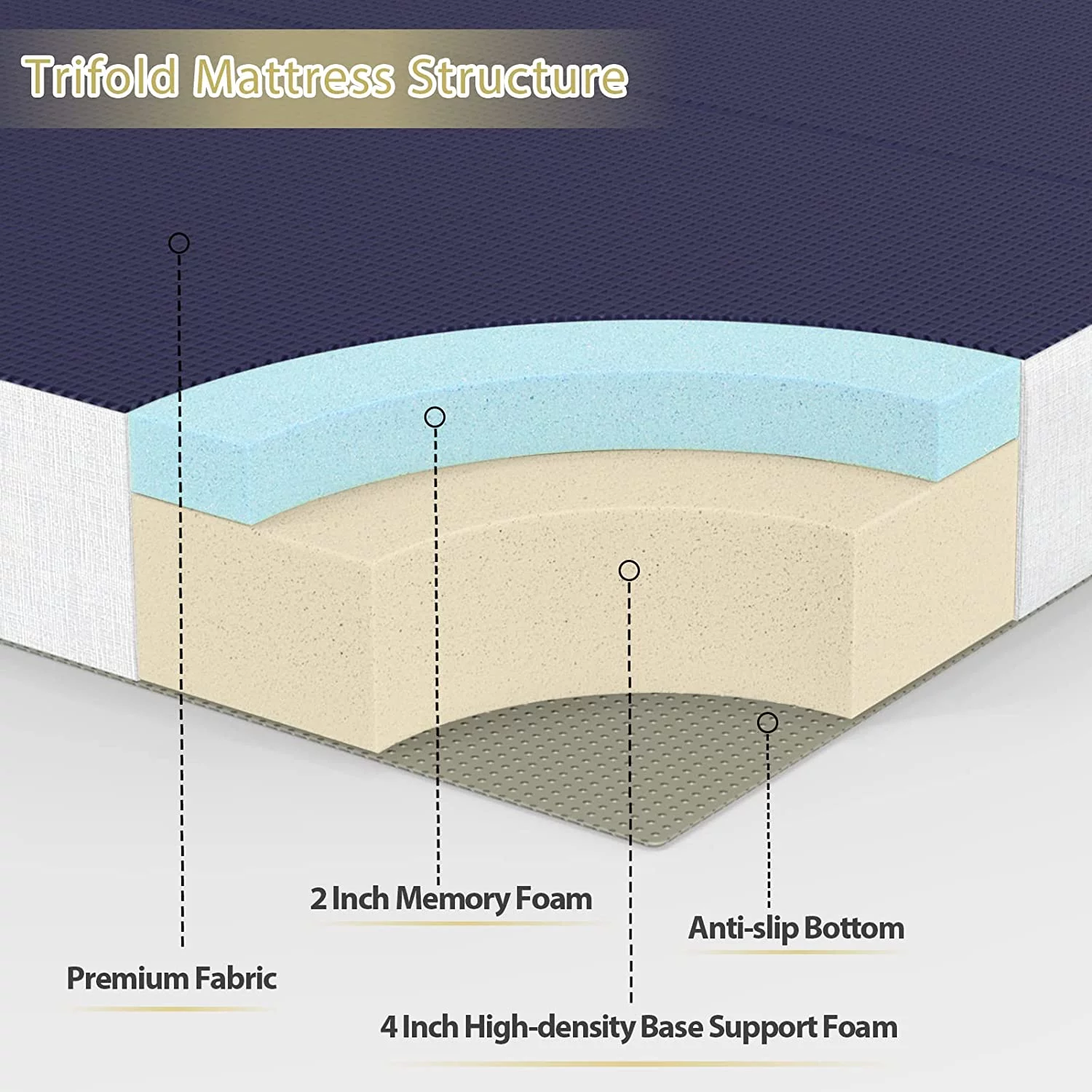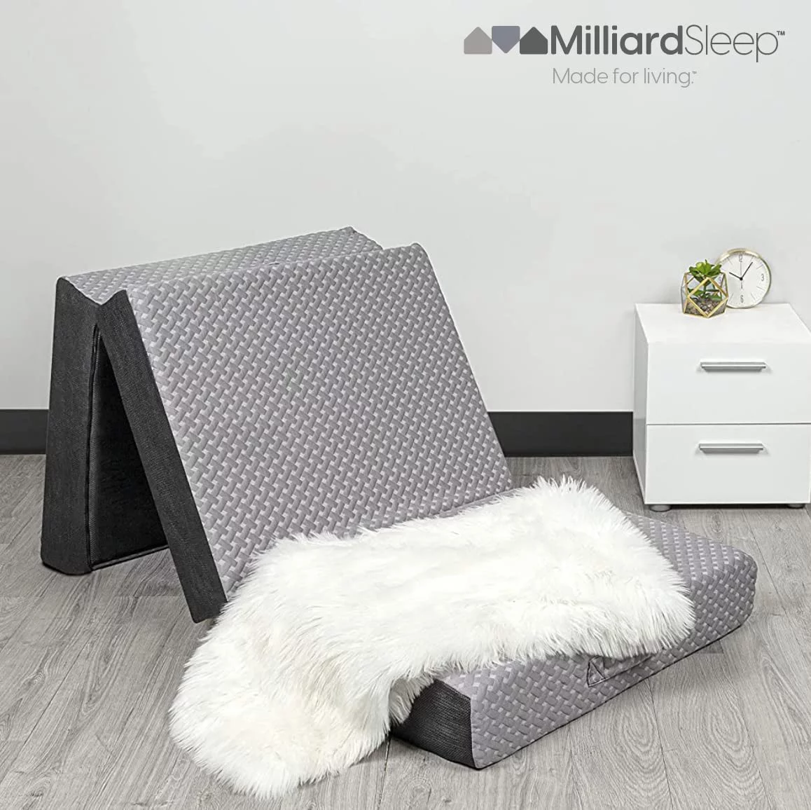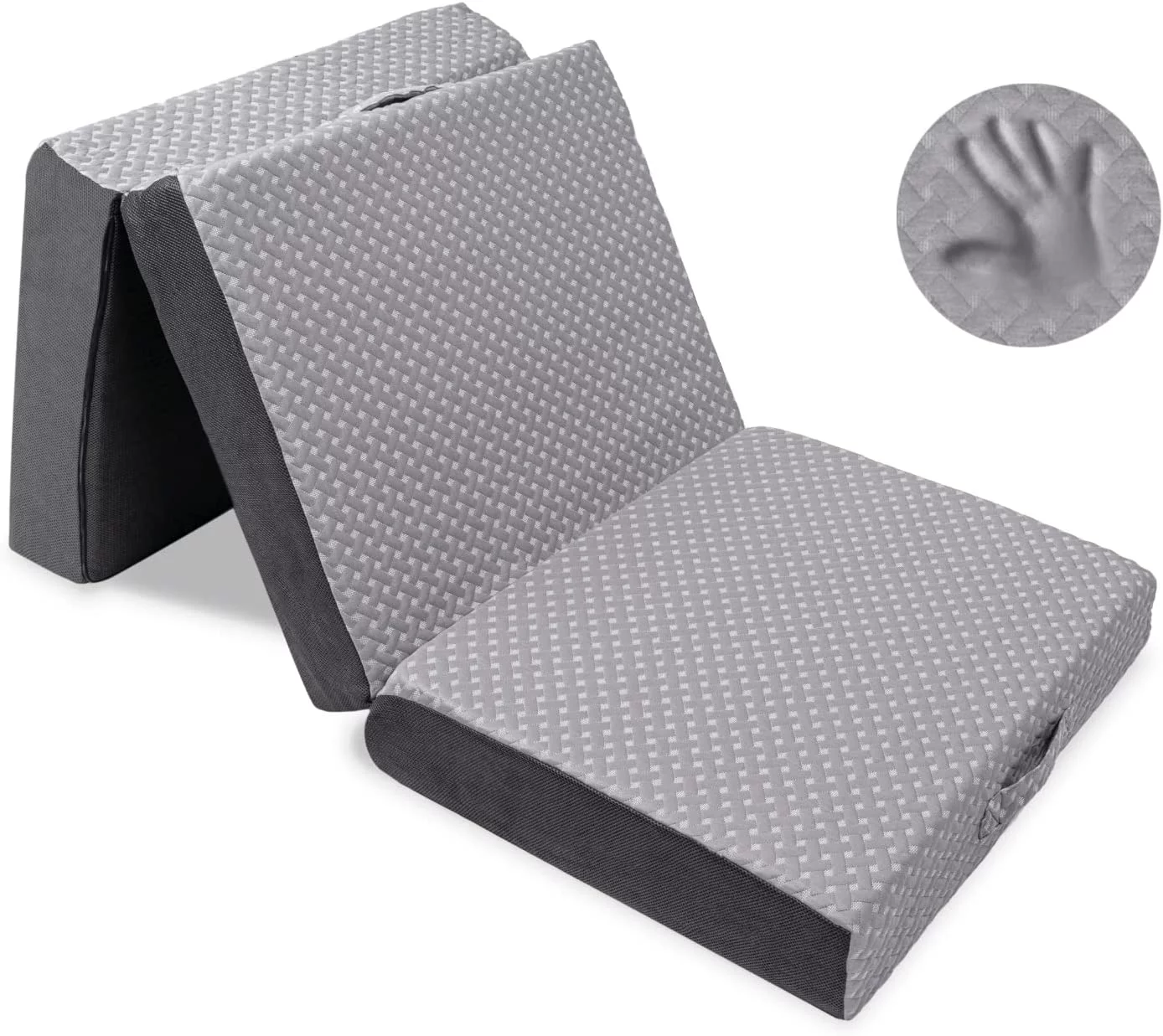 Foldable Memory Foam Mattress with Washable Cover, Cot - Medium Firm, Grey (75"x31"x6")