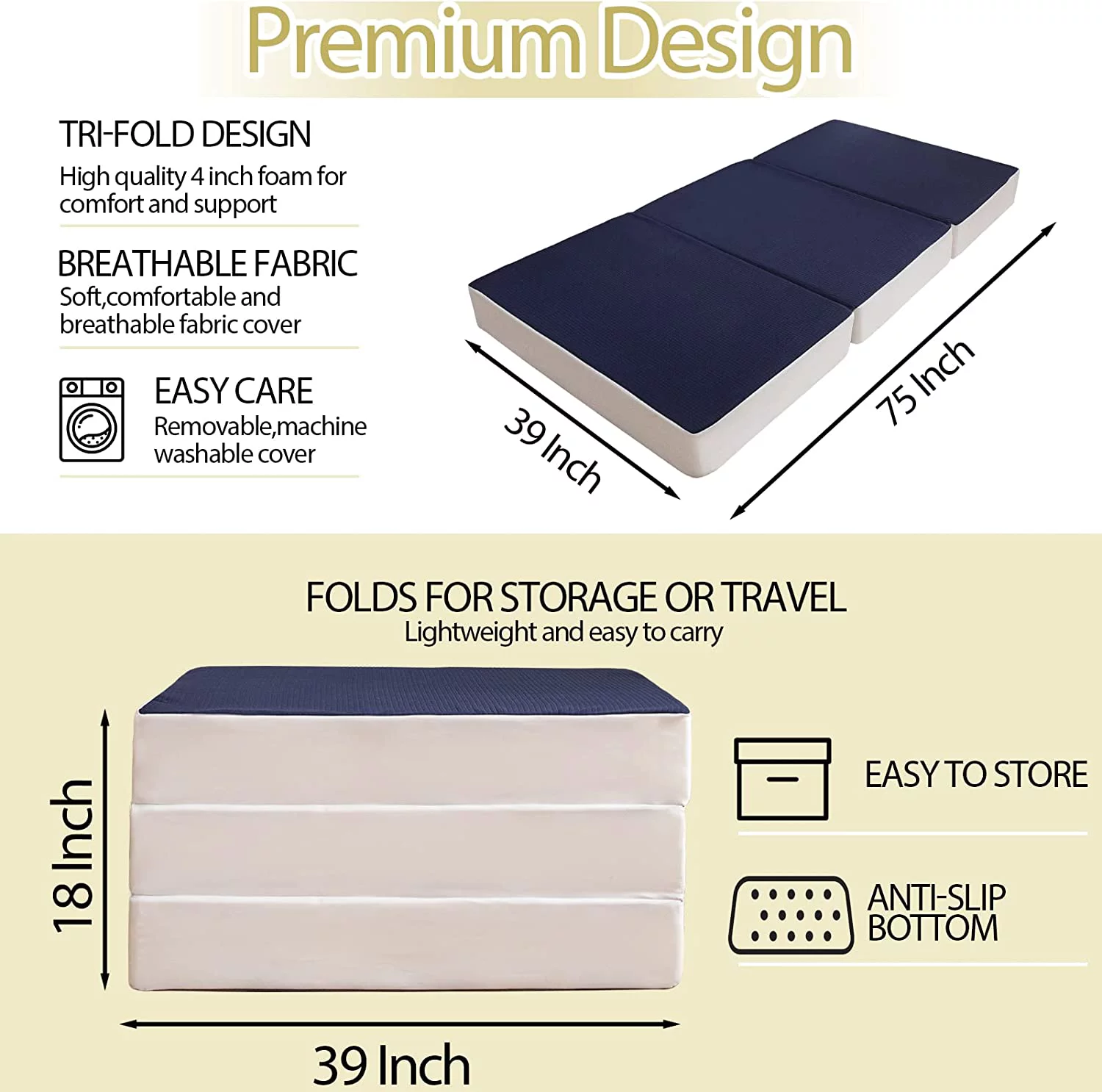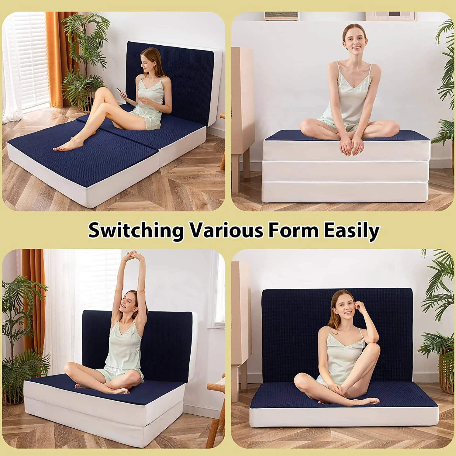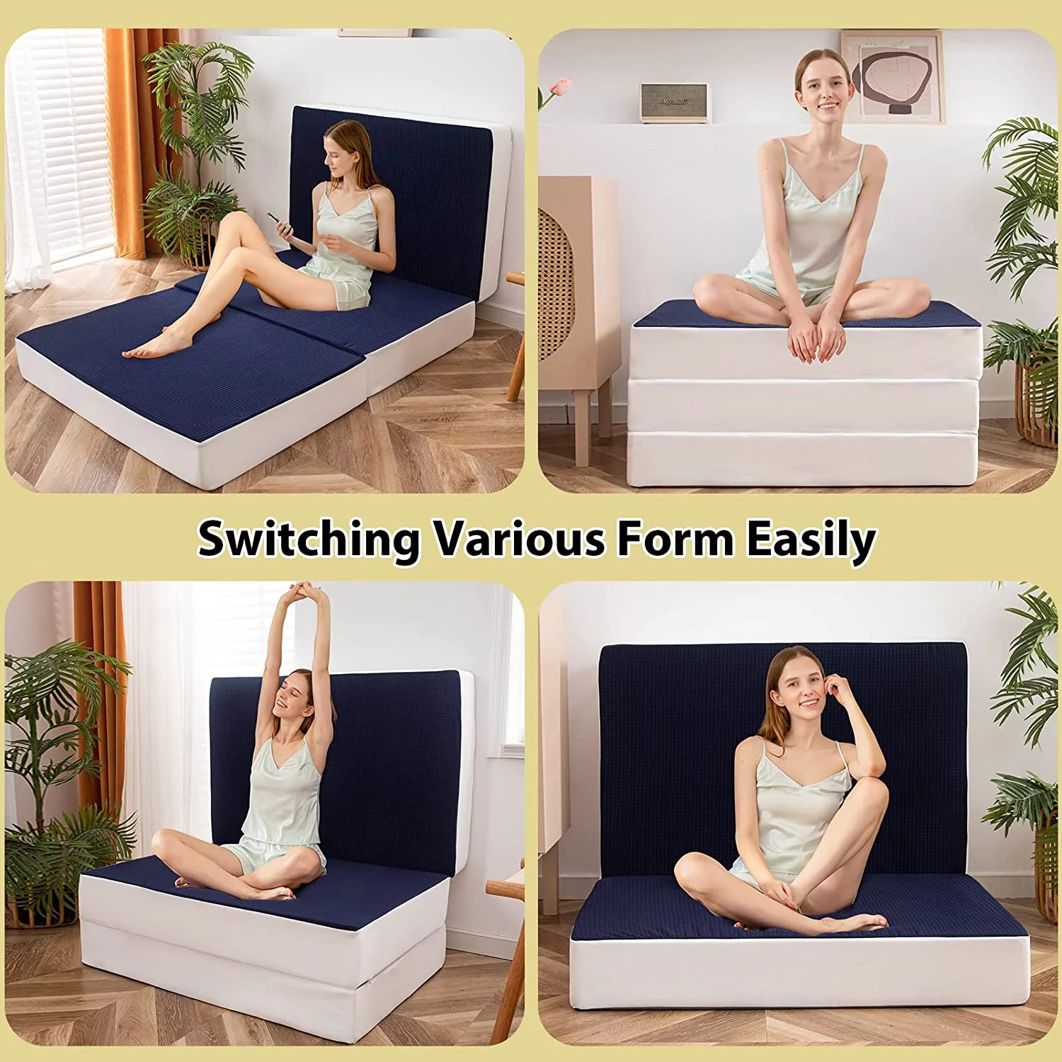 GEROBOOM D&D Futon Folding Foam Mattress Chair Lounger Studio Guest Sofa Bed Twin XL 80 x 39 x 6 in Thick (Navy Blue)