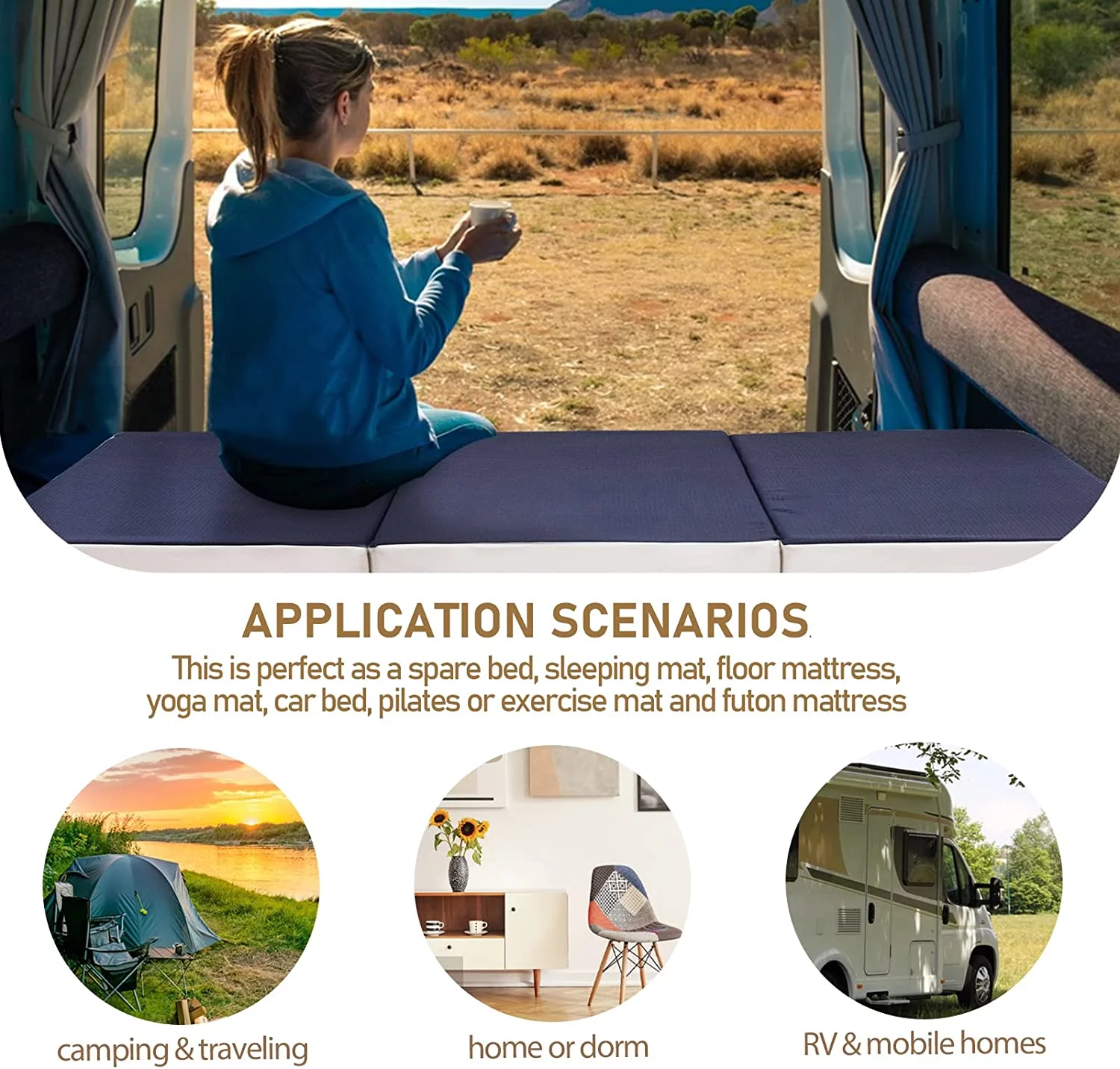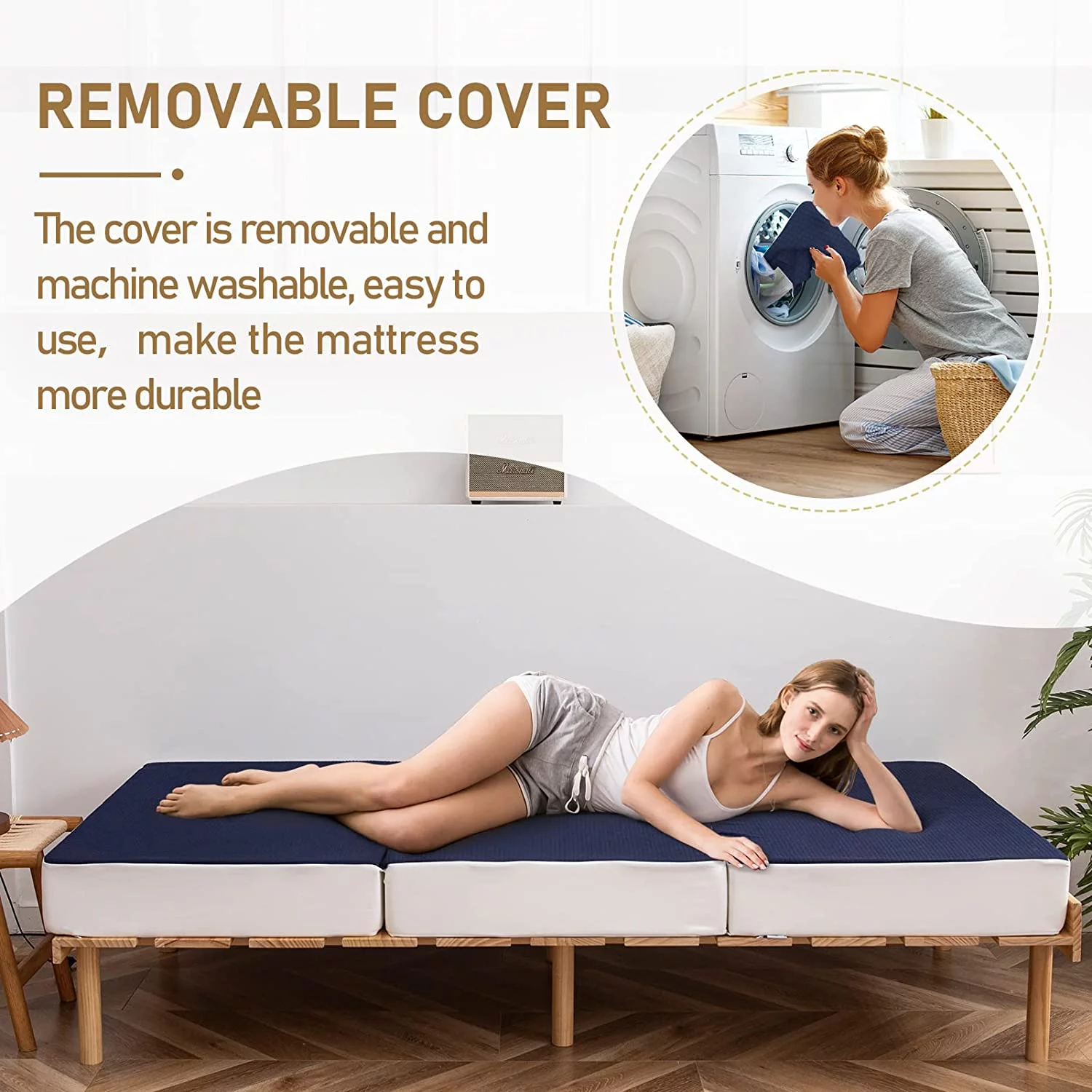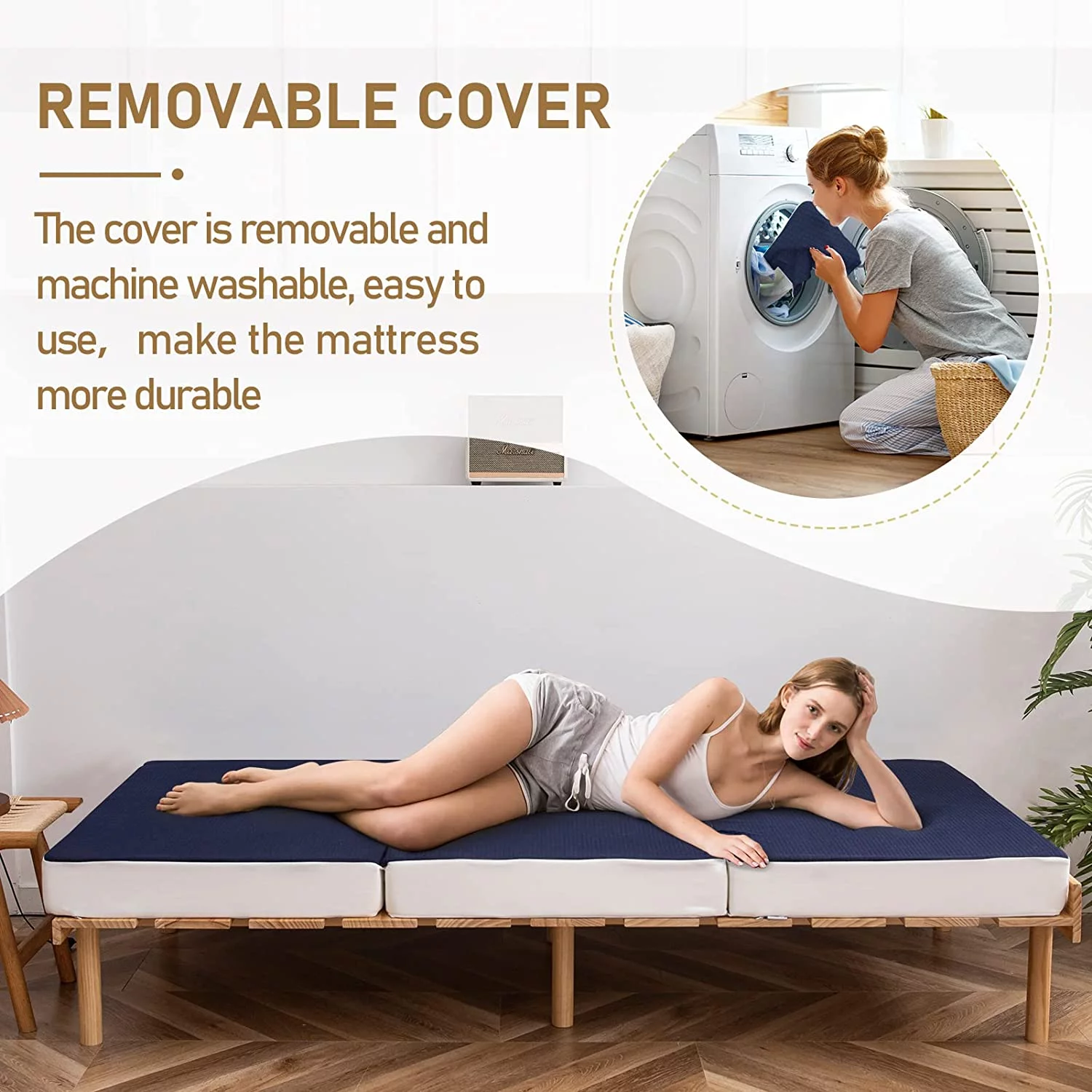 GEROBOOM D&D Futon Folding Foam Mattress Chair Lounger Studio Guest Sofa Bed Twin XL 80 x 39 x 6 in Thick (Navy Blue)