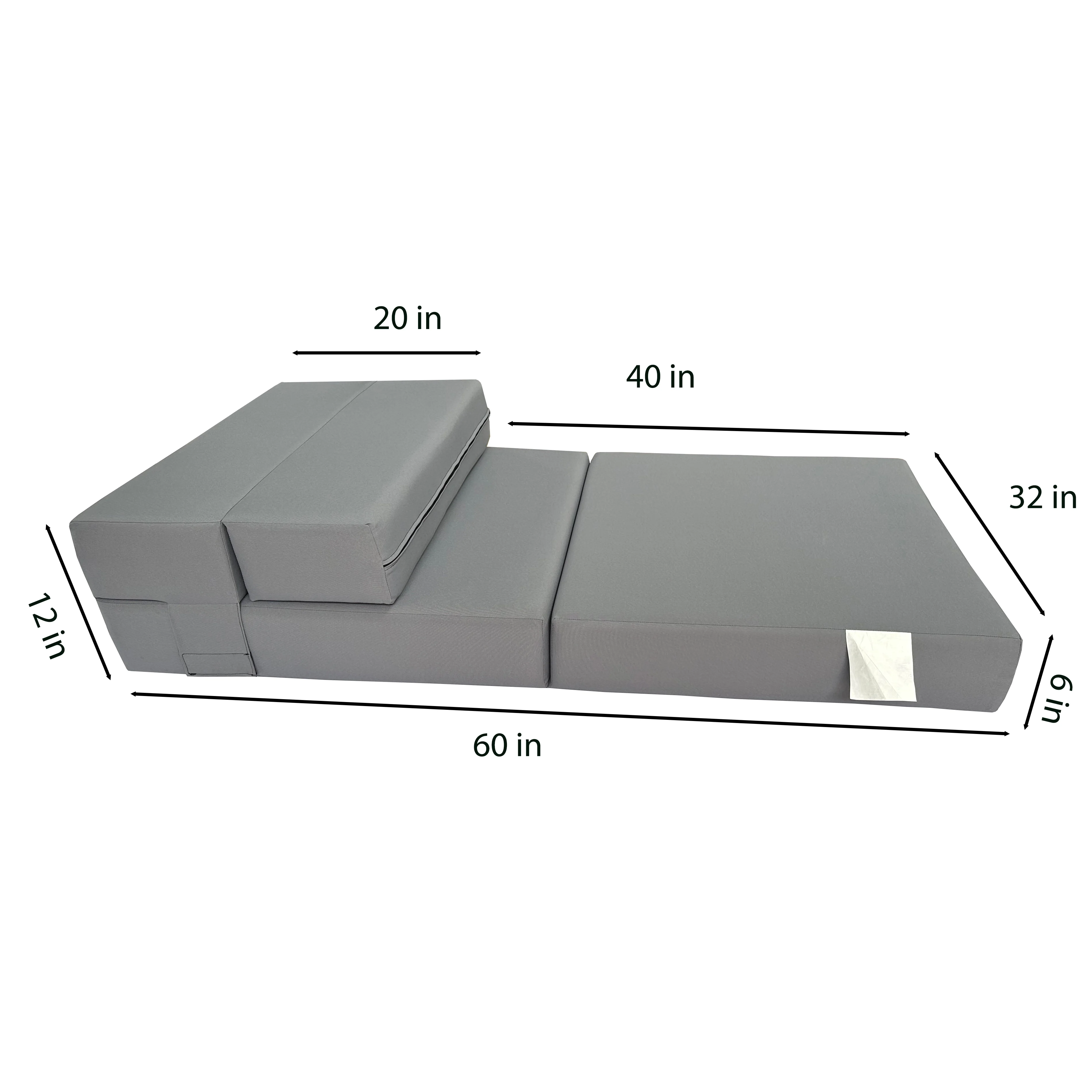 Lounger Folding Foam Mattresses, Portable Convertible Sofa Beds, Sleeper Flip Chairs, Gray 80 x 32 x 6