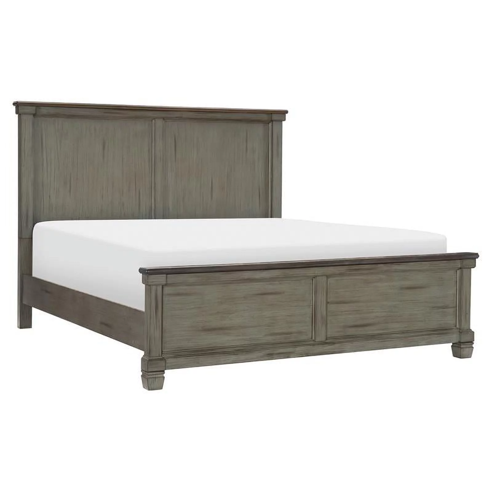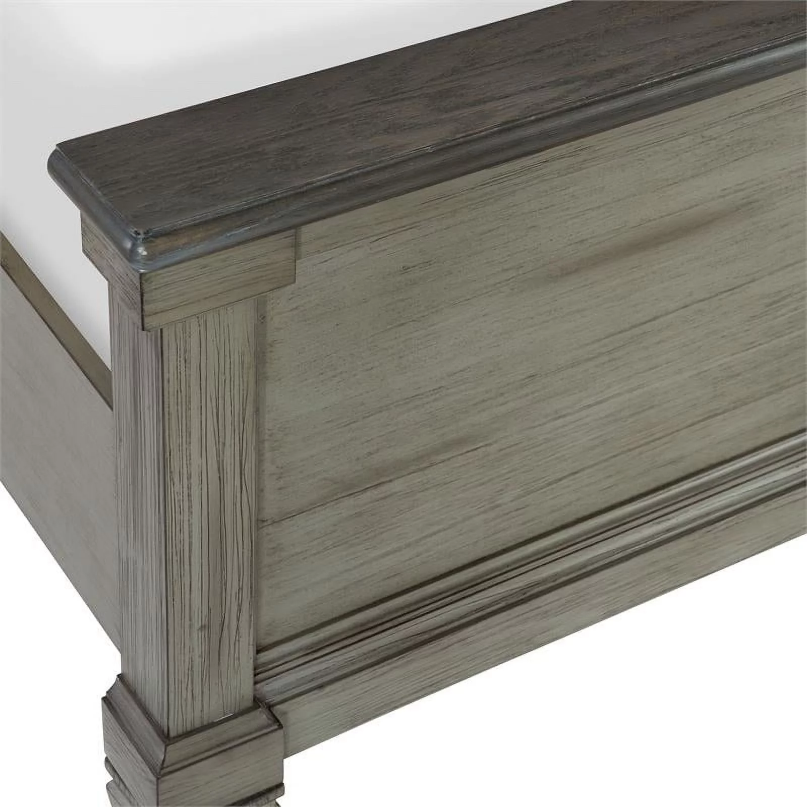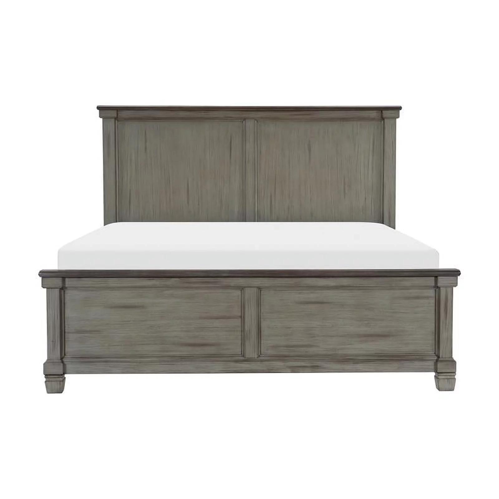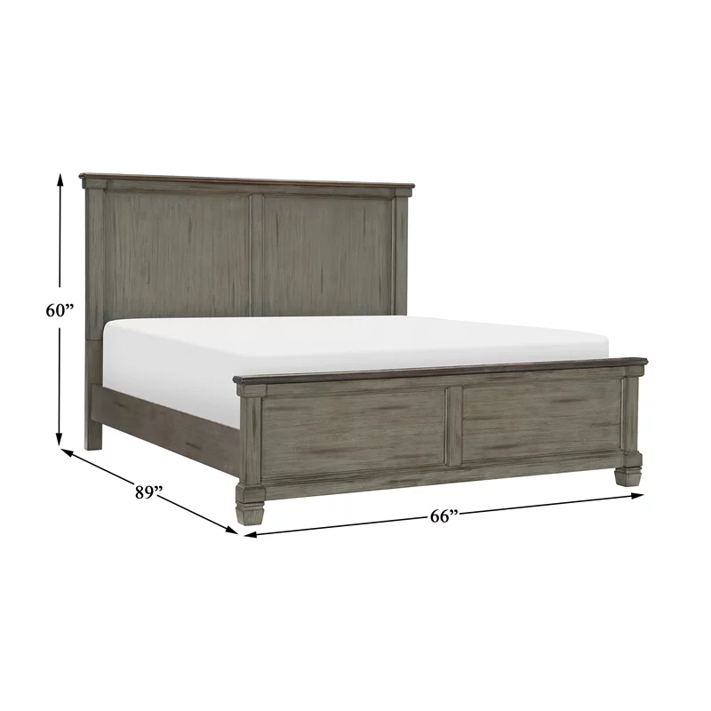 Pemberly Row Transitional Asian Wood Queen Bed in Coffee and Antique Gray