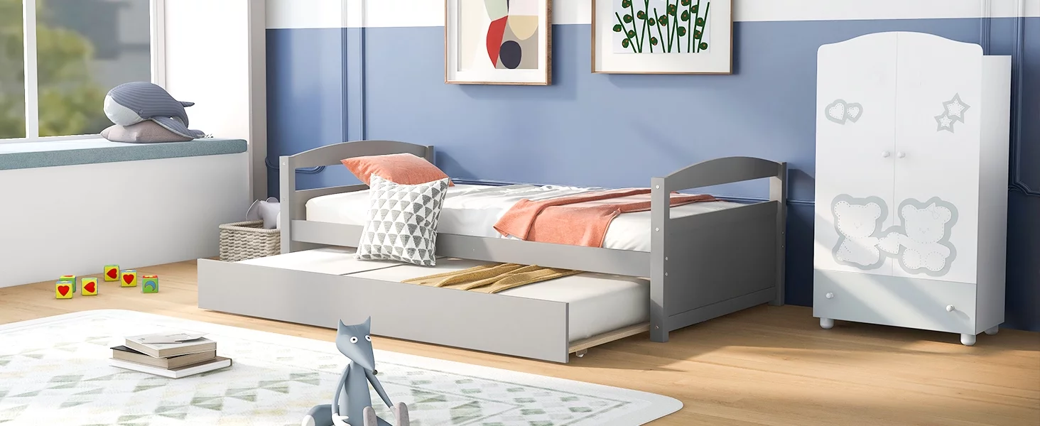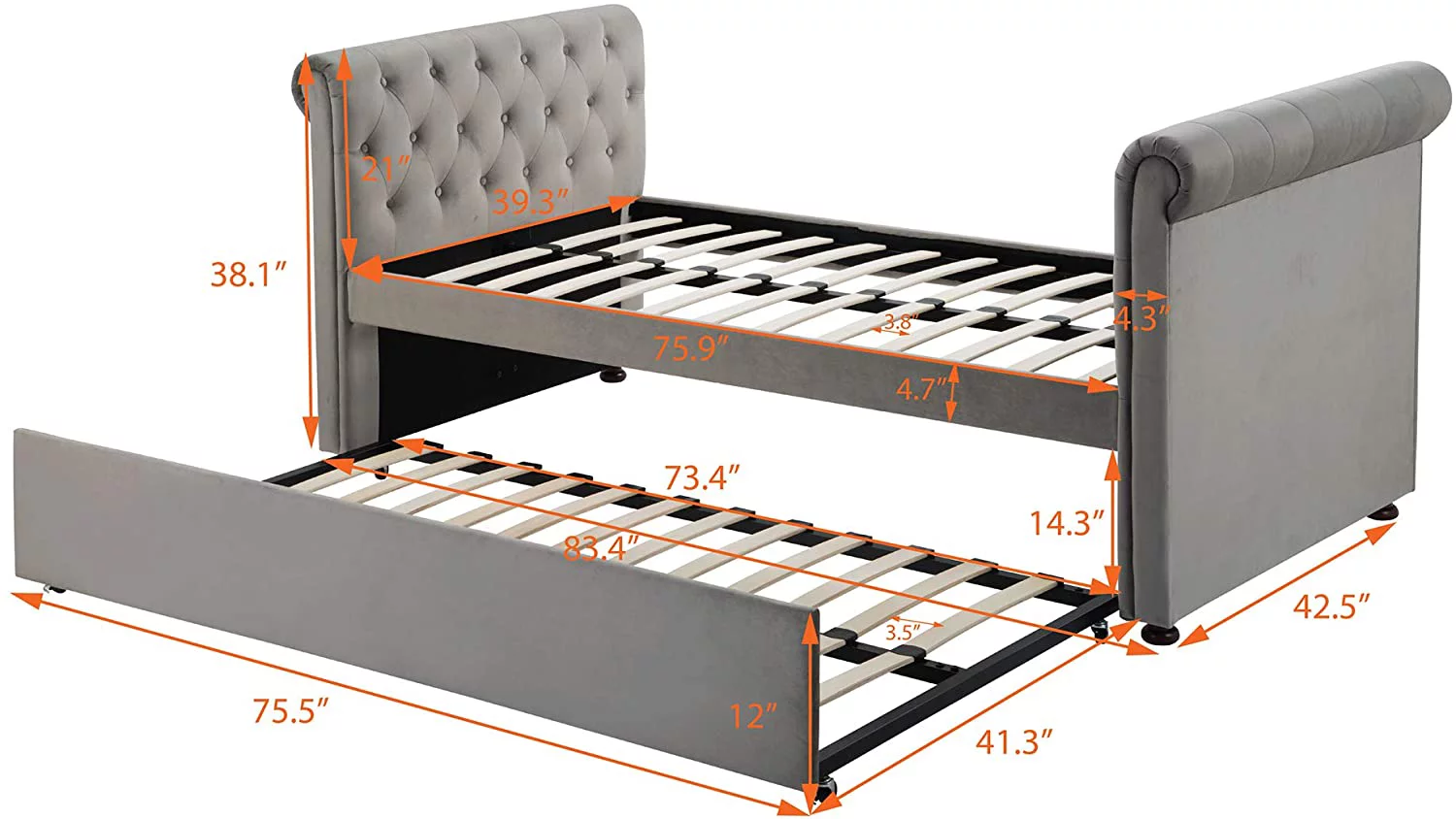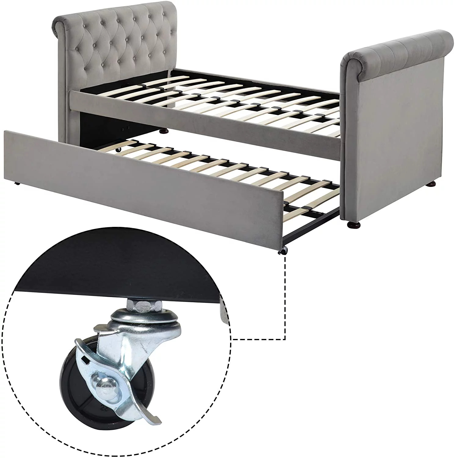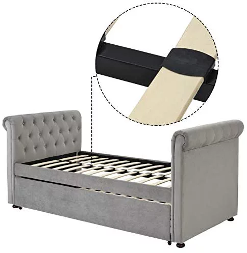 CHURANTY Upholstered Bed Wood Twin Size Bed with Trundle , No Box Spring Needed
