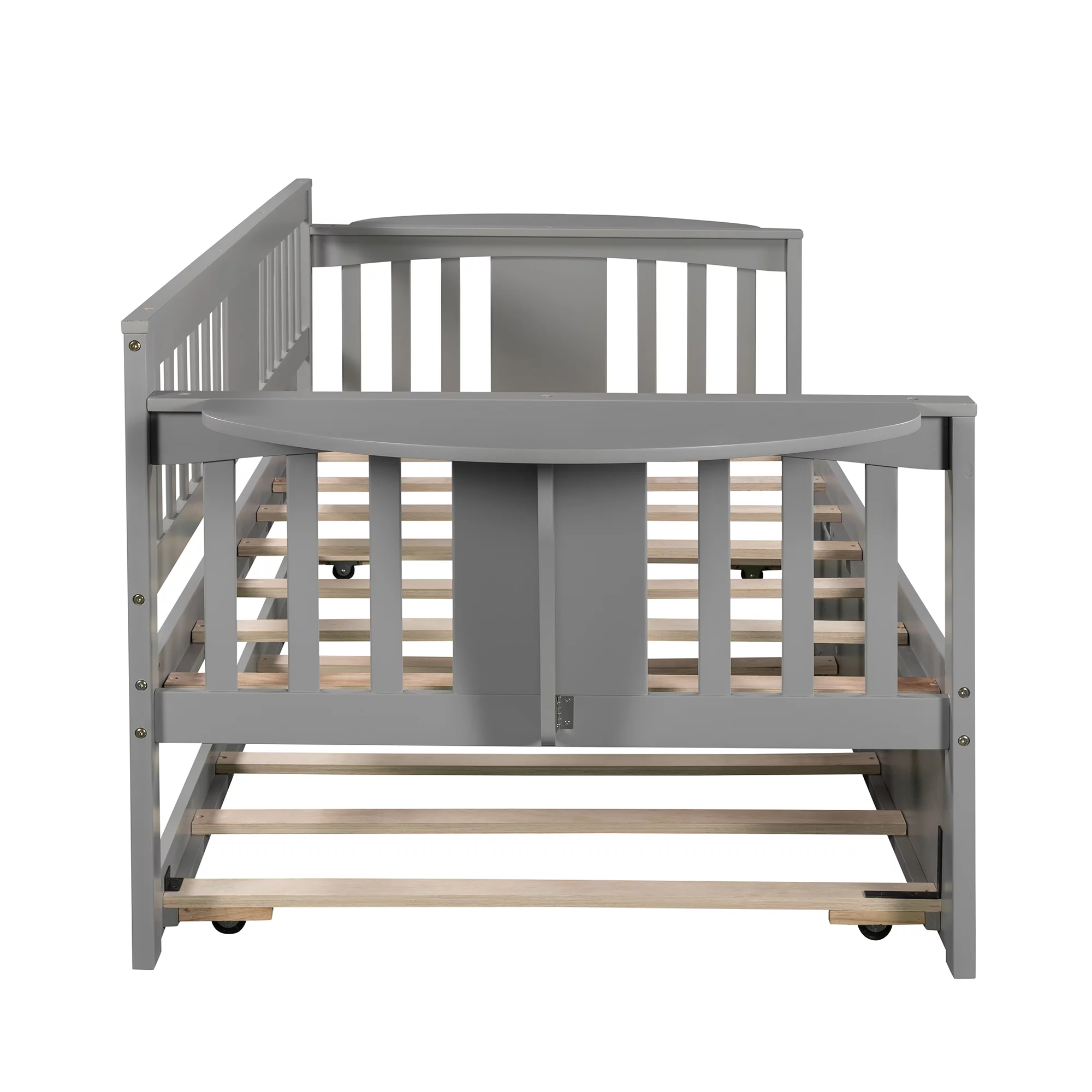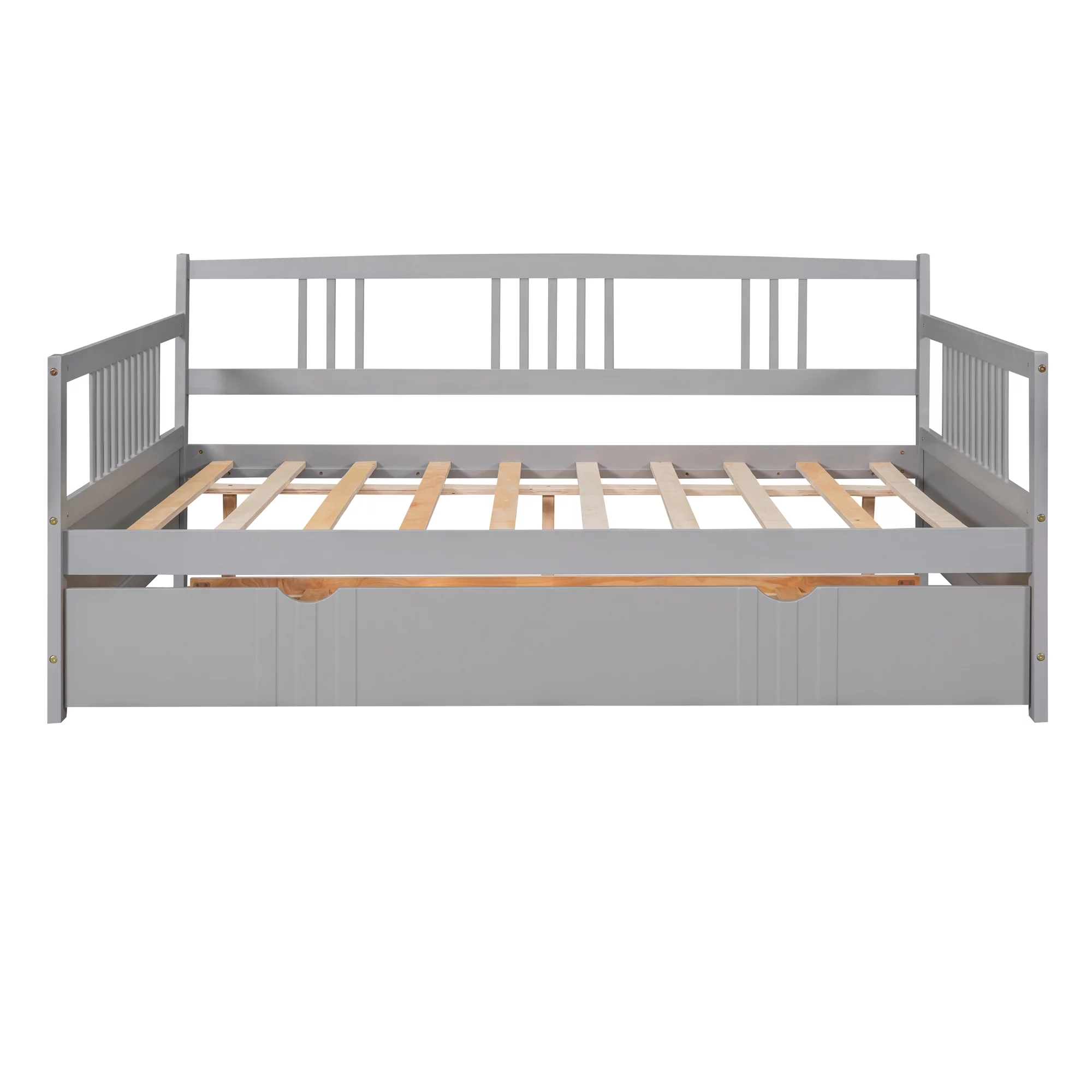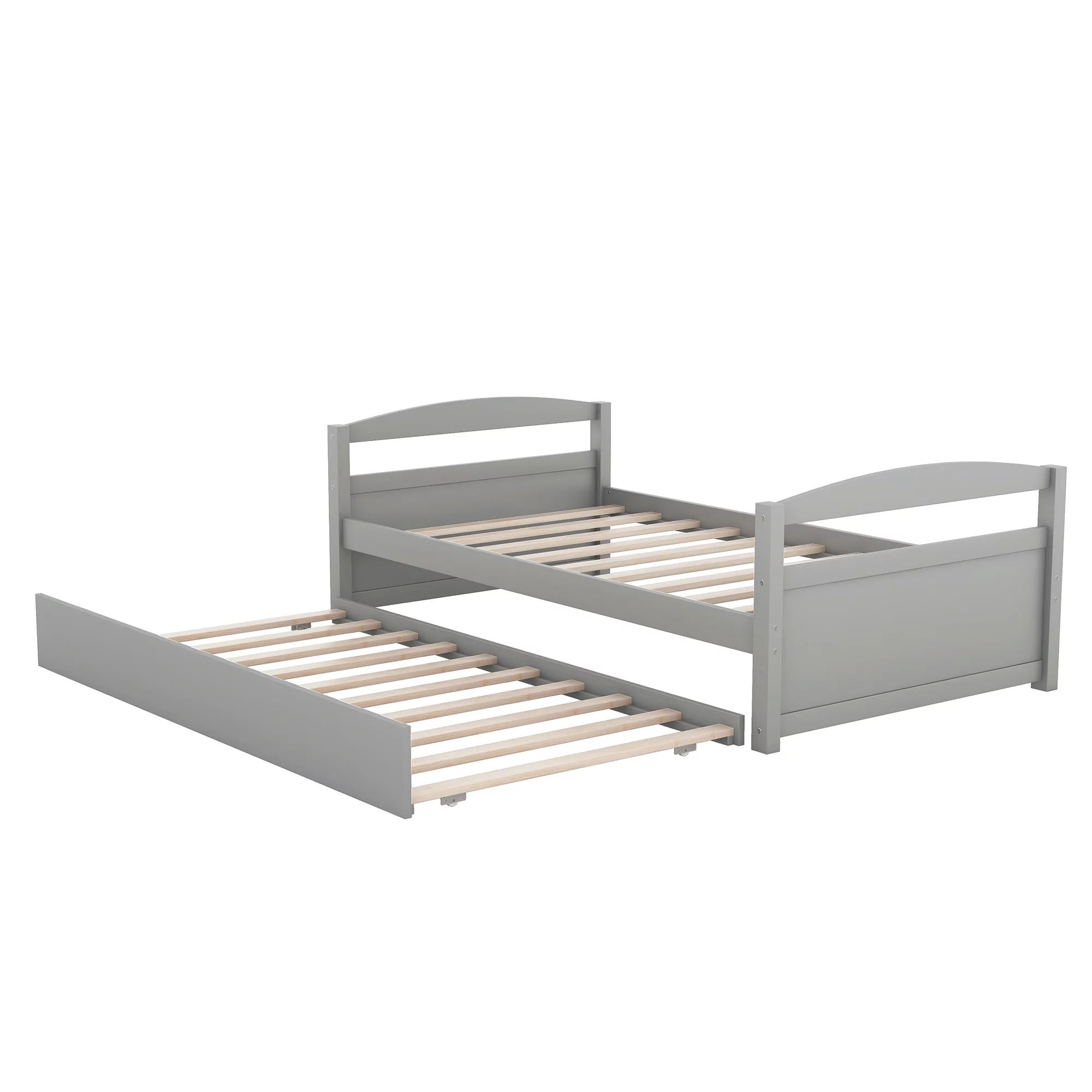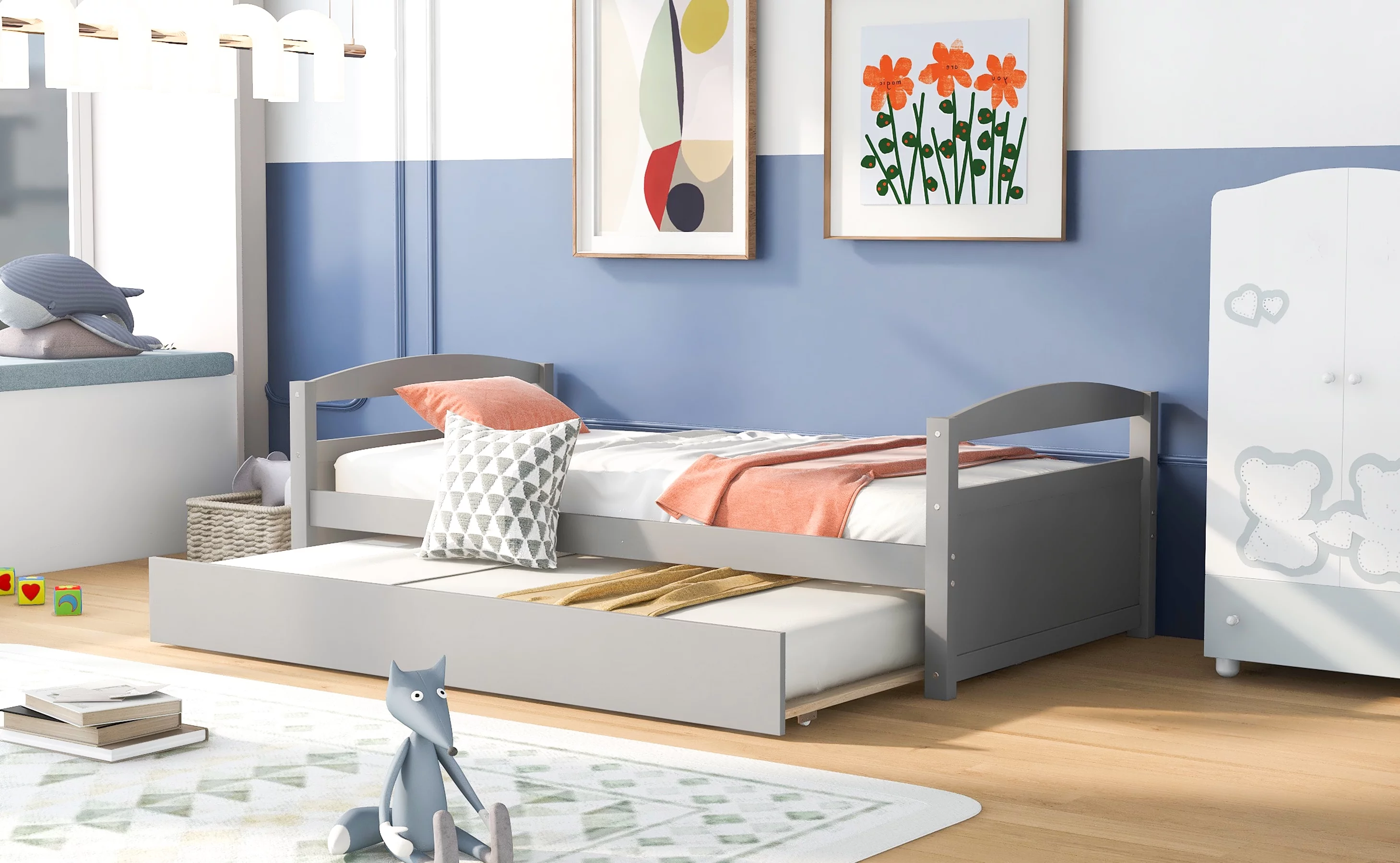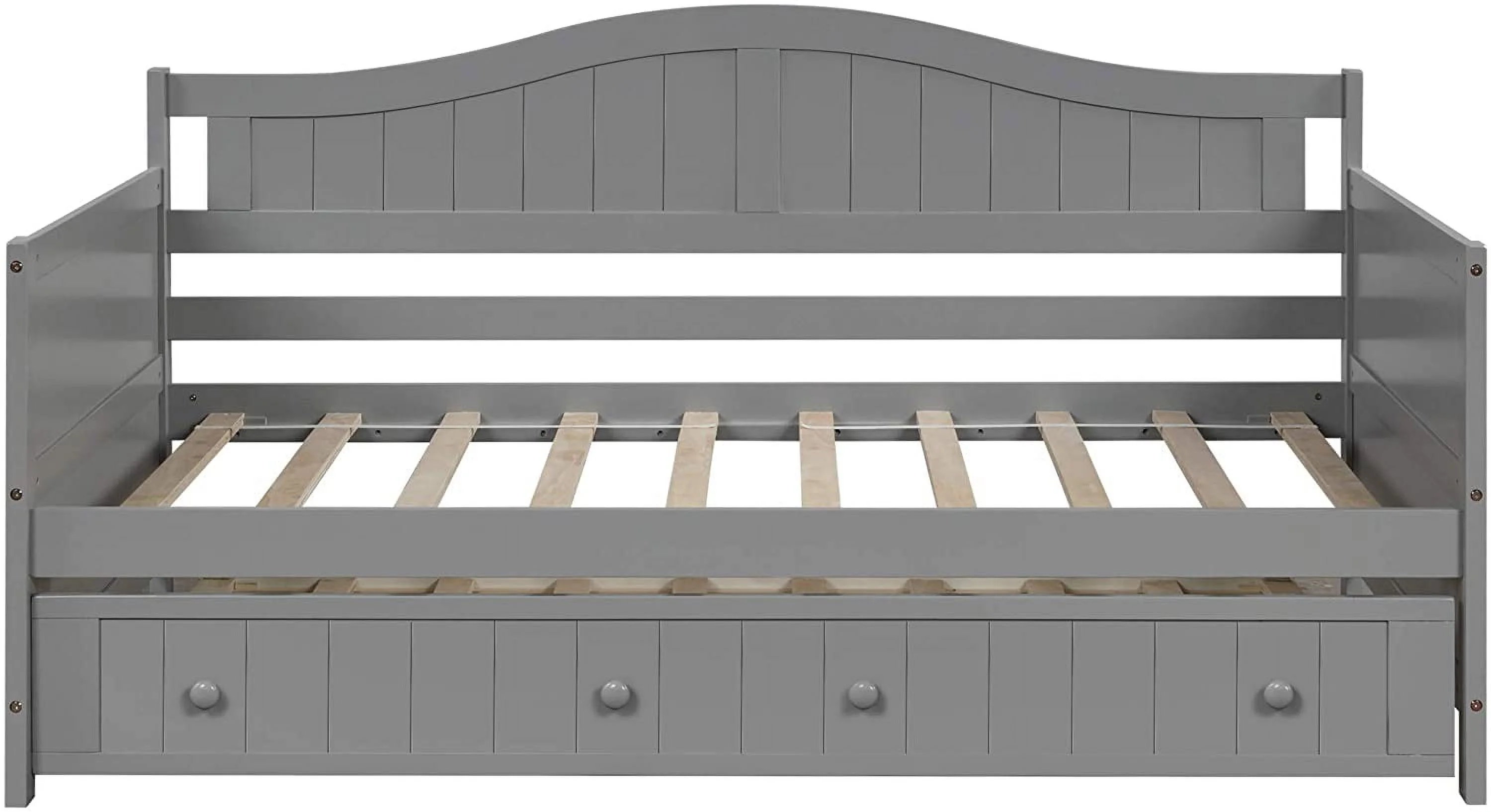 CoSoTower Twin Wooden Daybed With Trundle Bed, Sofa Bed For Bedroom Living Room, Gray