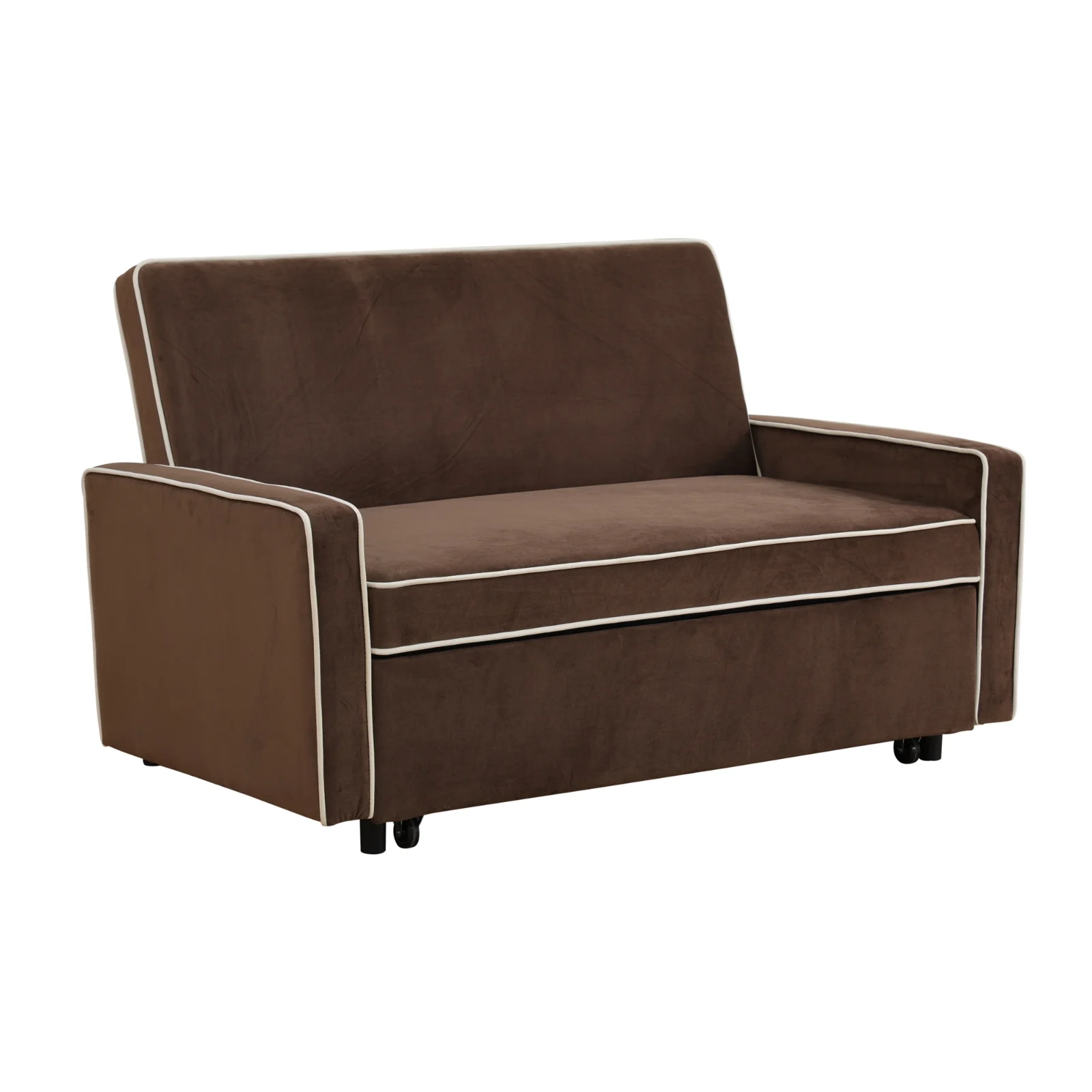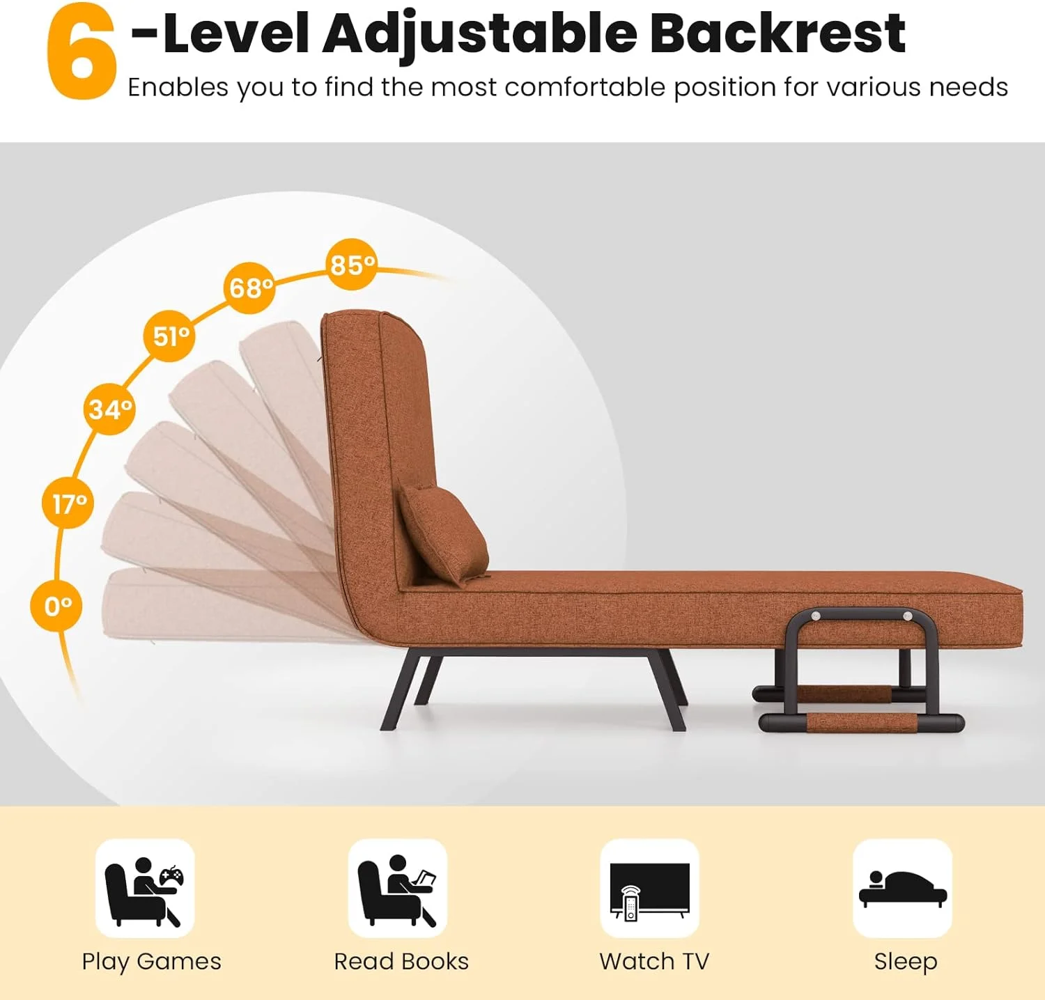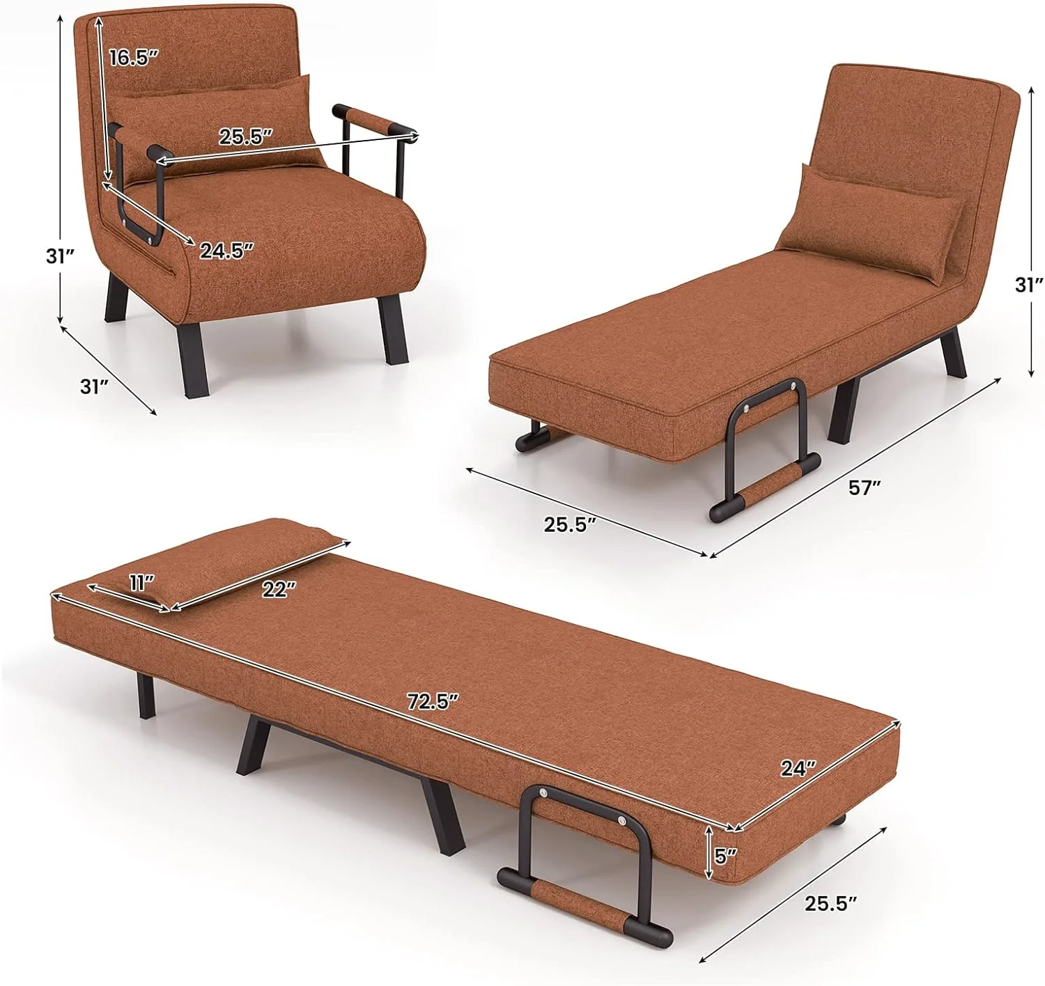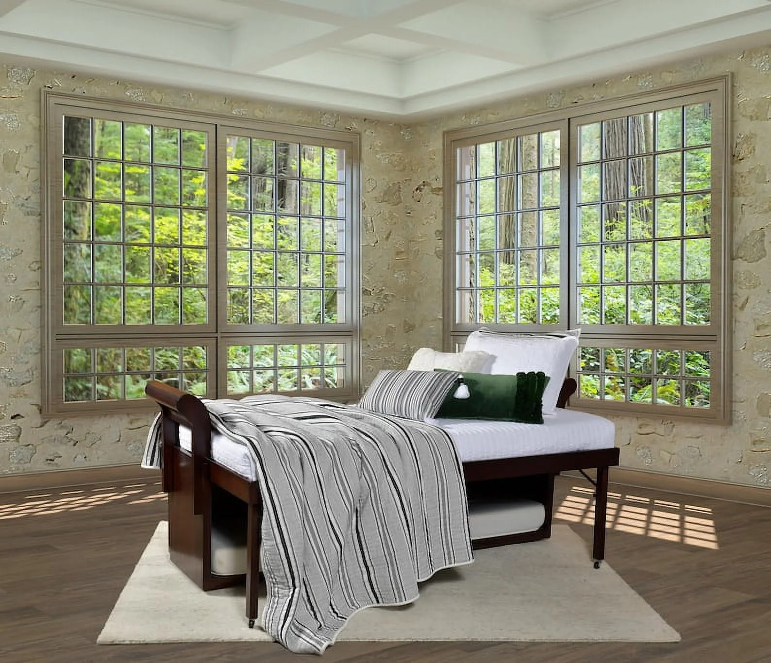 Convertible Bed 4 in 1 Solid Wood Twin/Full Size Bed, Chaise Lounge, Bench in Cherry Brown with Mattress